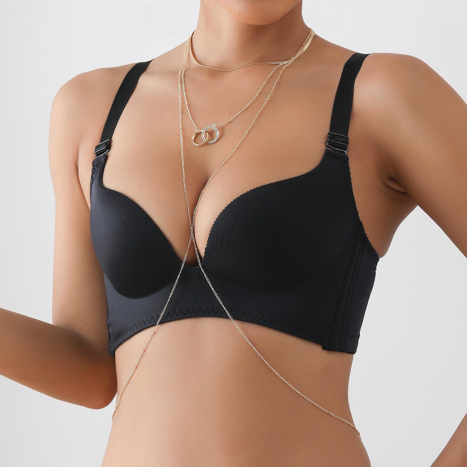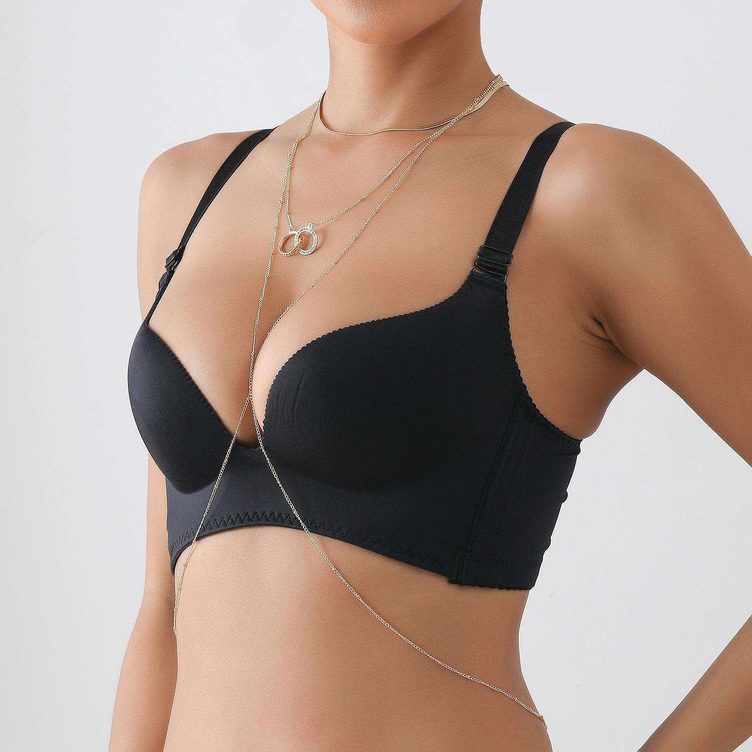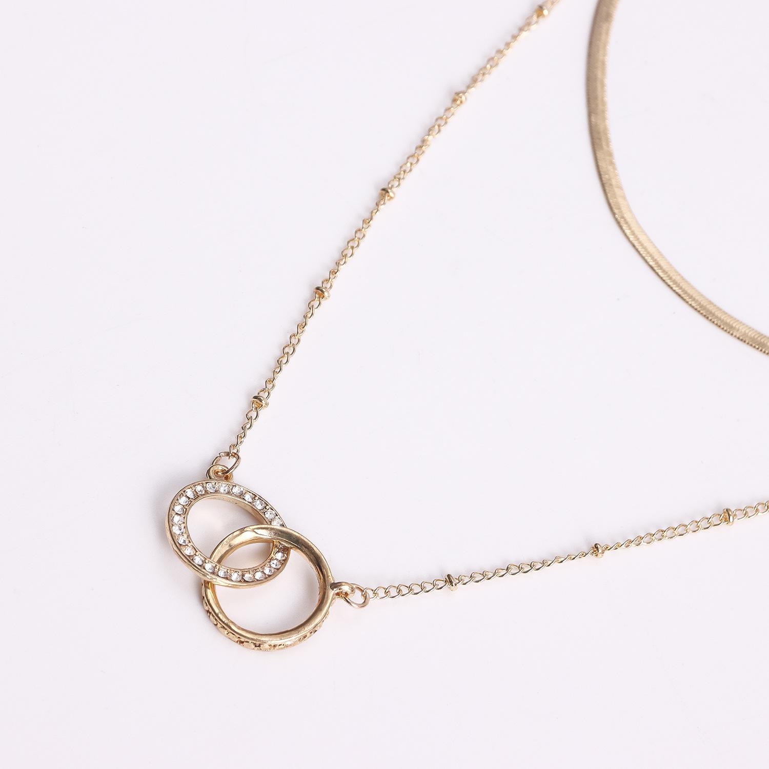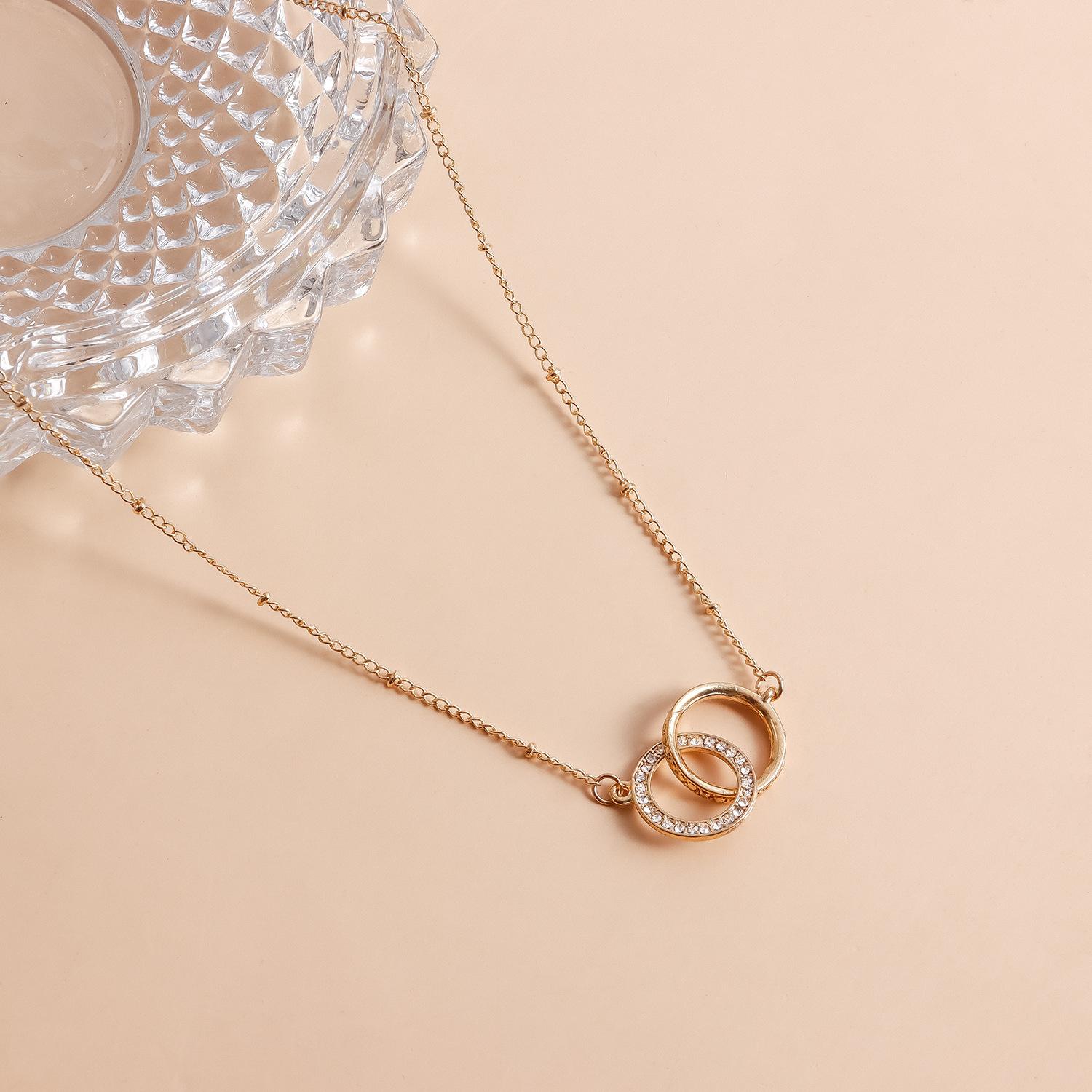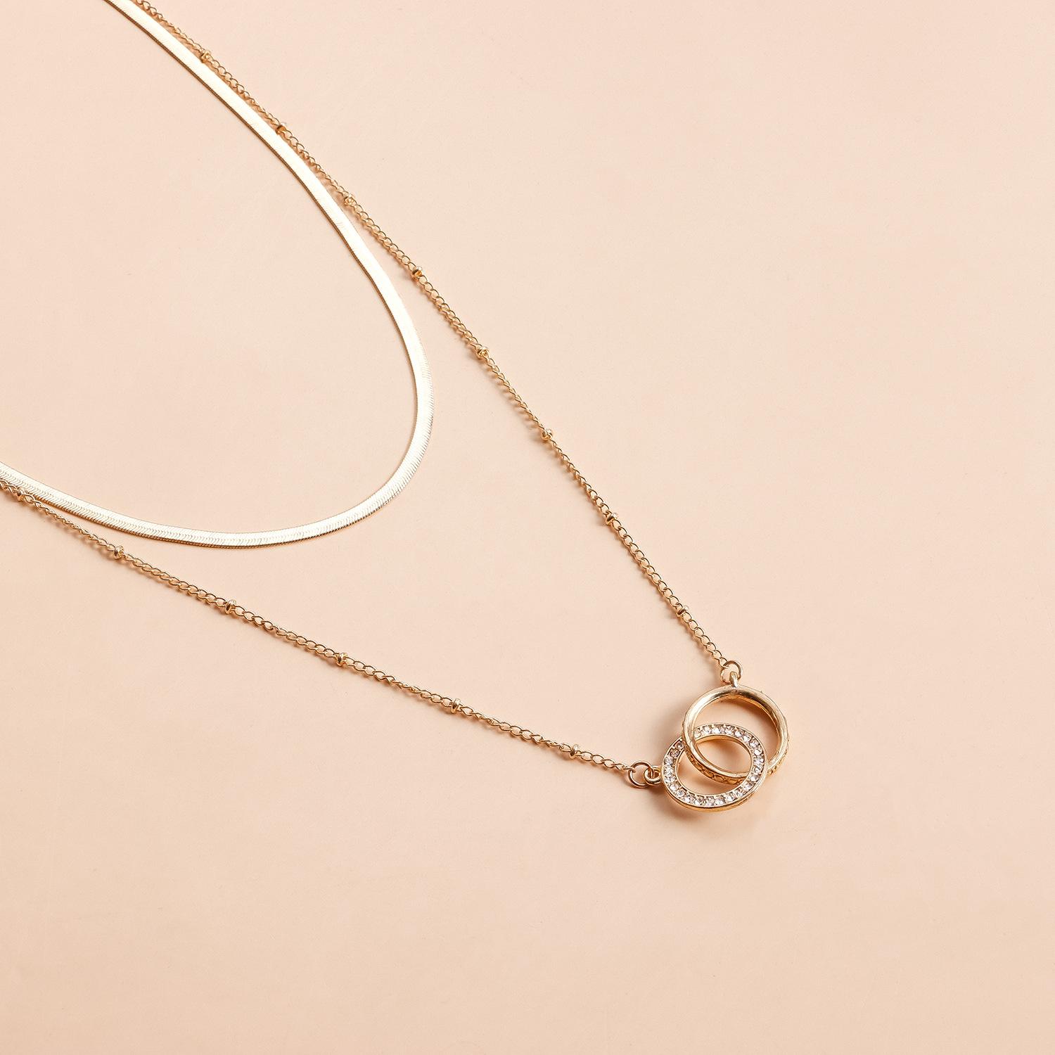 Collar de playa sexy y sencillo con estilo festivo transfronterizo europeo y americano, cadena para el pecho con doble círculo de diamantes, cadena colgante para el cuello y el cuerpo para mujer.