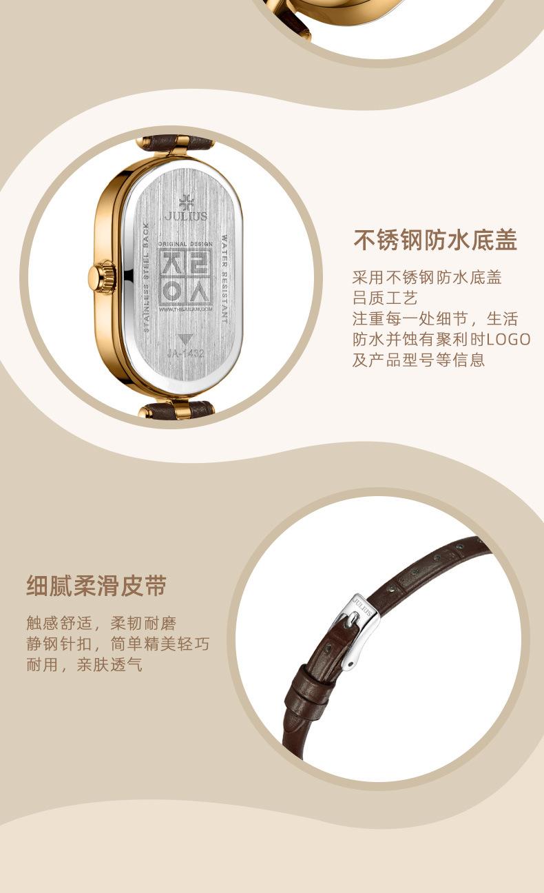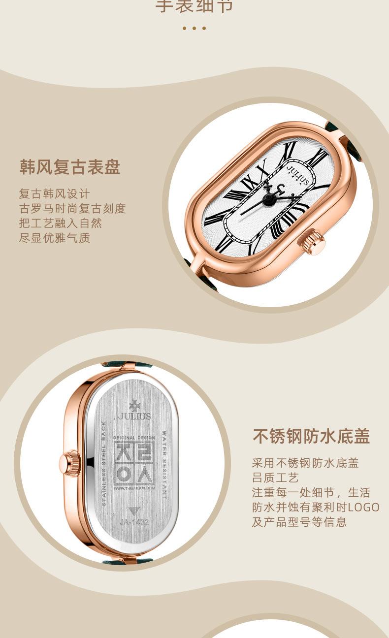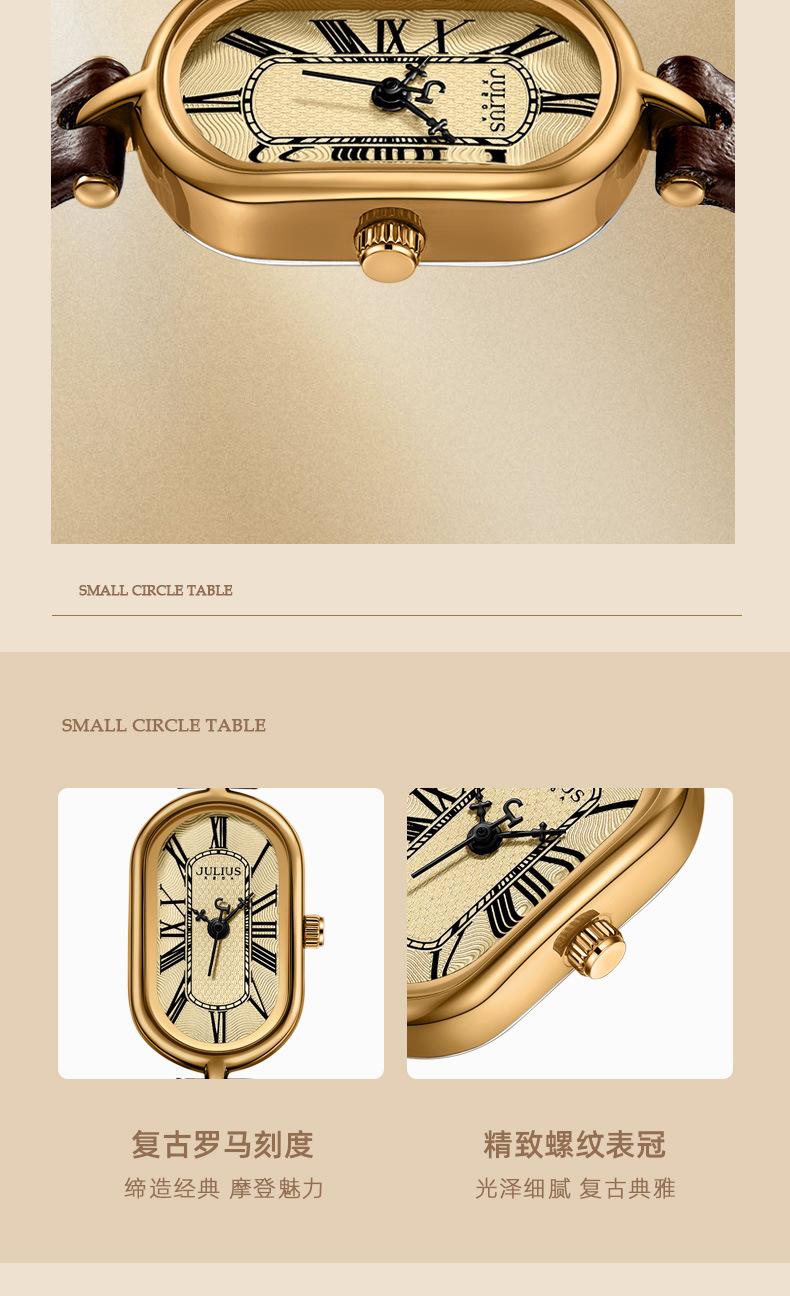 El significado de la marca JULIUS es alegre, único, amoroso, ideal, inusual y brillante. Es un reloj único que te enamorará a primera vista (Just You Will Love, un reloj único y especial). JULIUS toma este nombre y cuenta con siete series principales: Serie Clásica, Serie Emocionante, Serie Brazalete, Serie Exploración, Serie Pareja, Serie Hombre y Serie Edición Limitada.