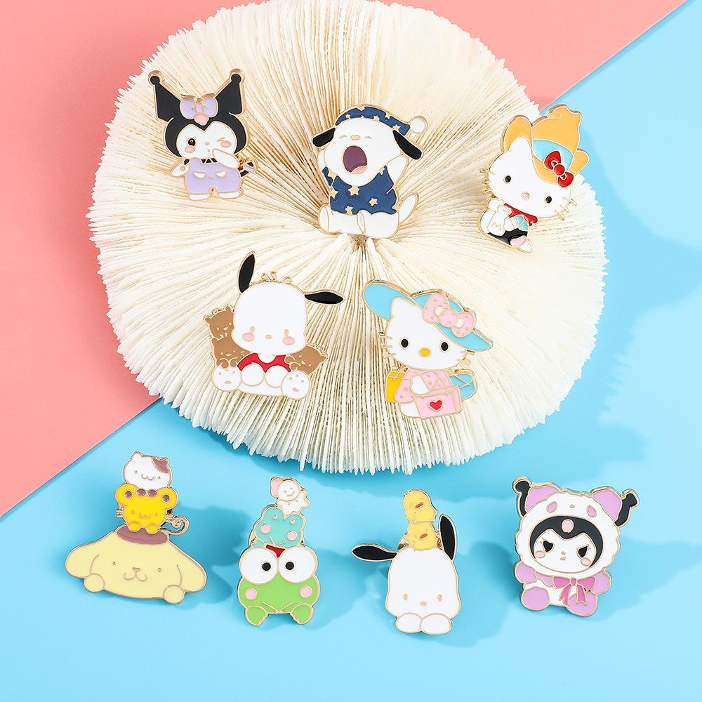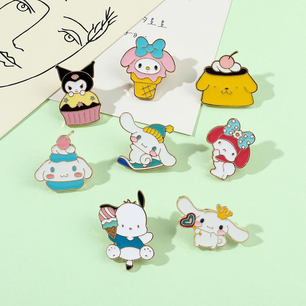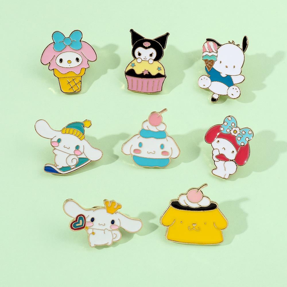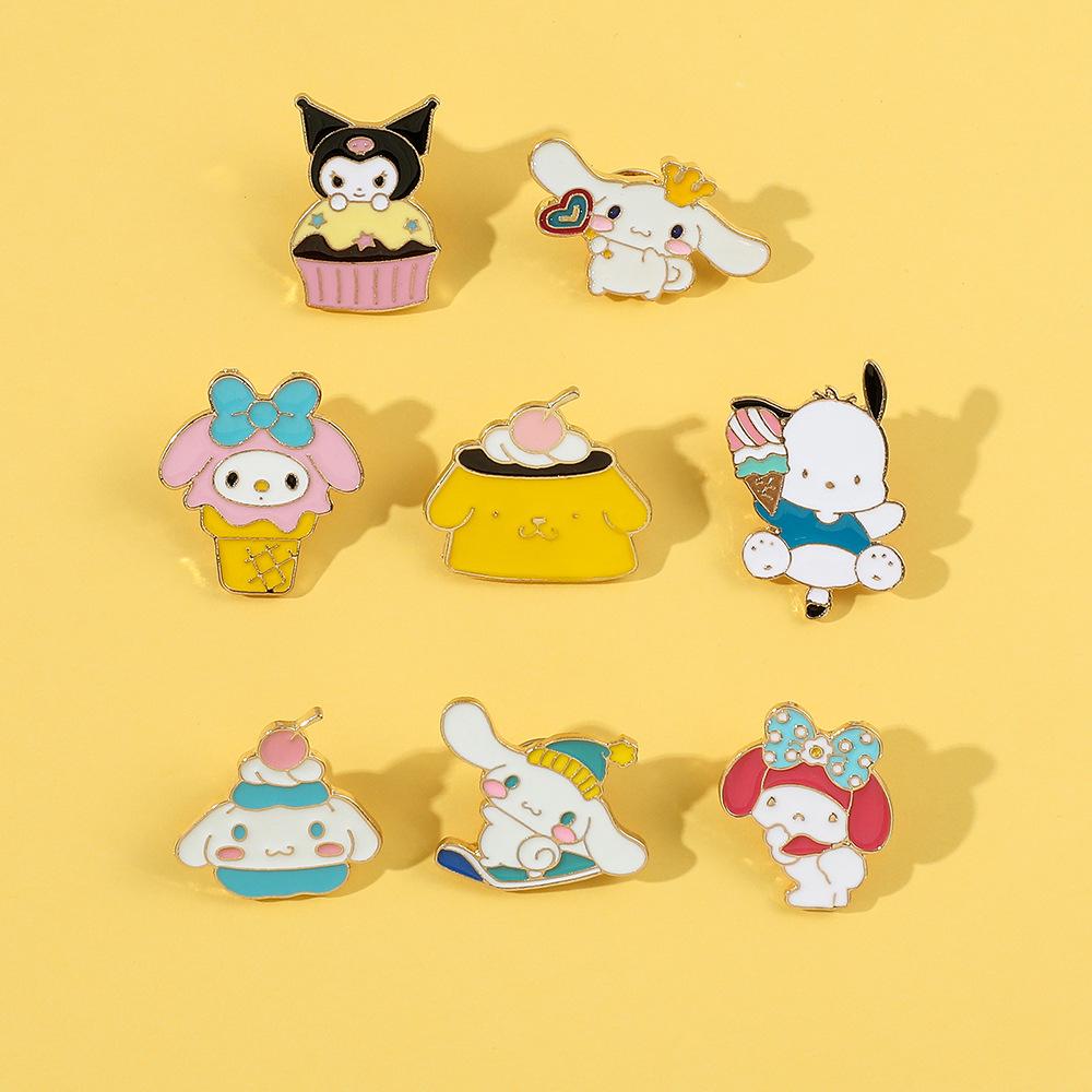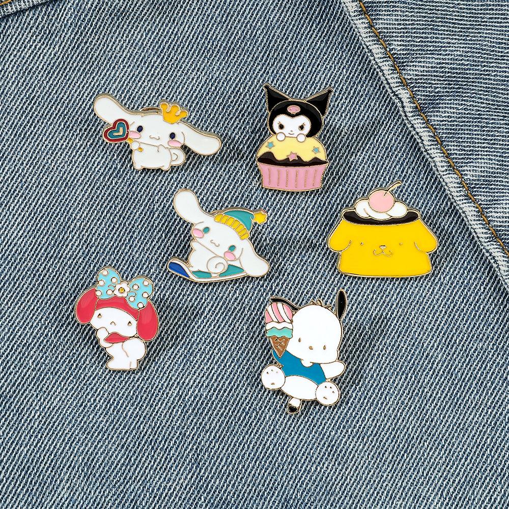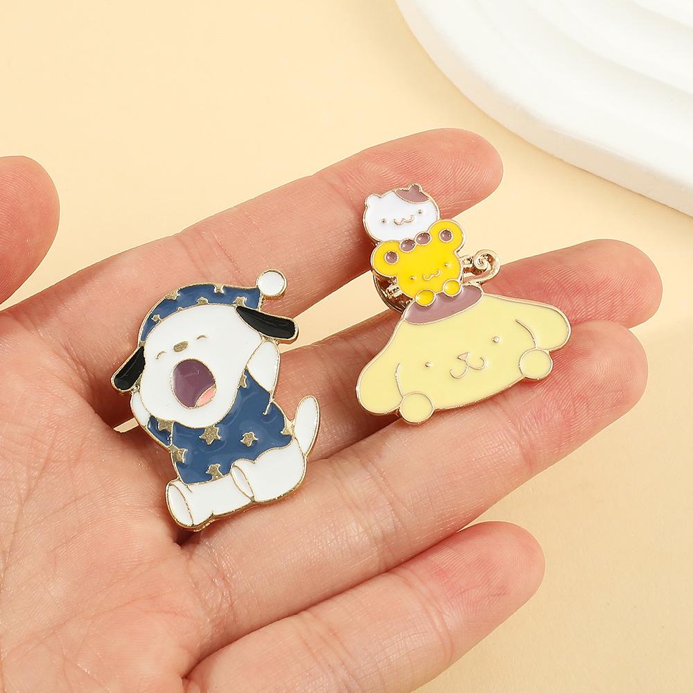 Cientos de broches de Sanrio con dibujos animados, lindos perros Pudding Kulomi, insignias de perro Parchal, bolsos para hombres y mujeres, ropa a juego.