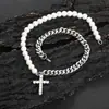 Hip-Hop Europeo y Americano Cadena Cubana de Acero Inoxidable de 8mm Collar de Perlas Mixtas Collar con Colgante de Cruz de Combinación Simple