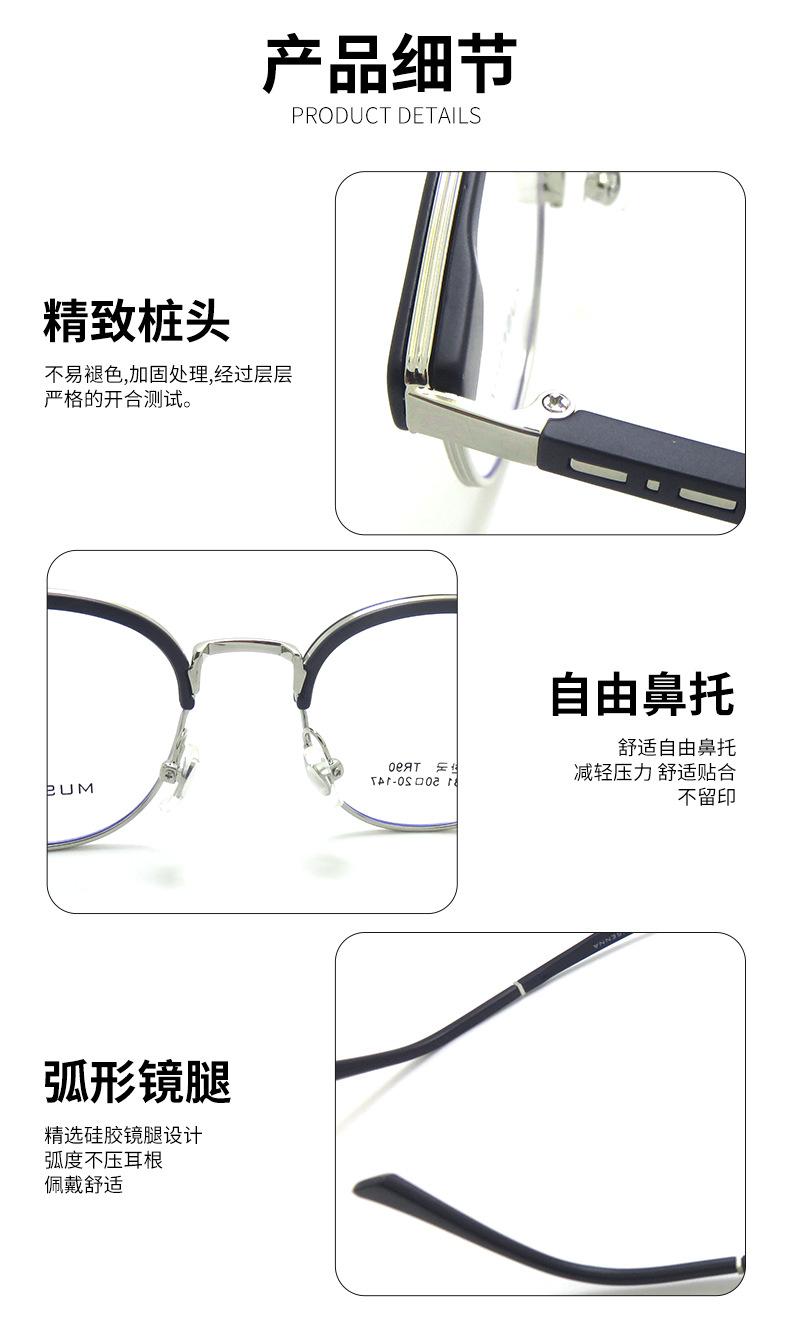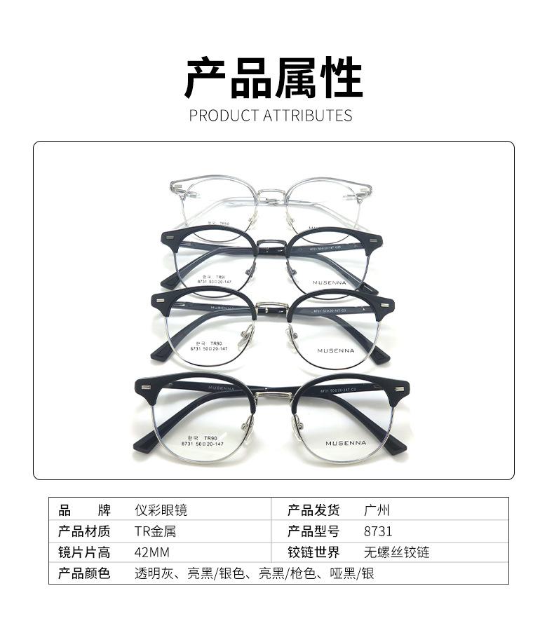 8731 gris moderno retro montura de cejas business casual montura de gafas para miopía ultraligera cómoda montura de gafas