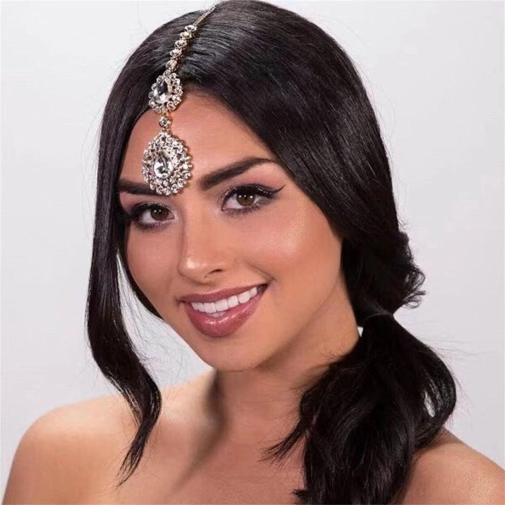 Amazon Más Vendido Multicolor Gota de Agua Colgante Cadena para la Cabeza para Mujer Personalizado Combinación con Todo Pedrería Cadena para la Frente Joyería Accesorios para el Cabello