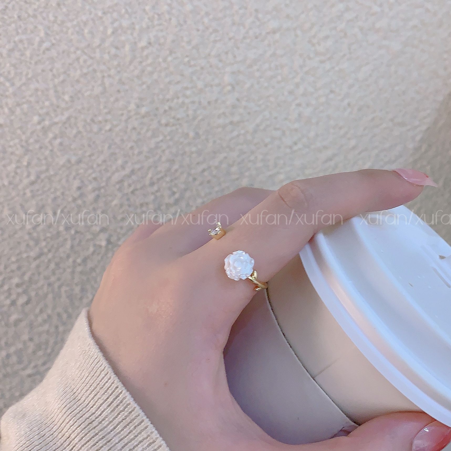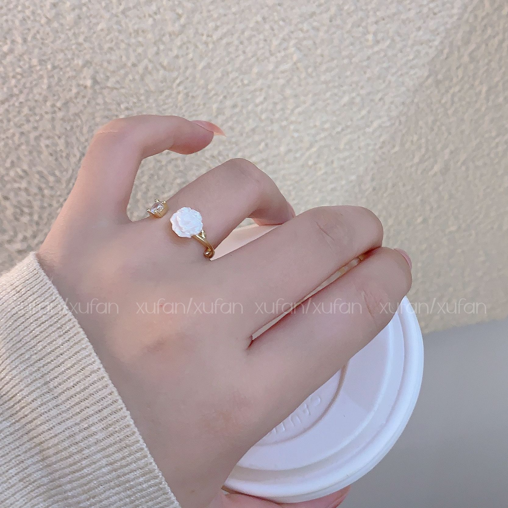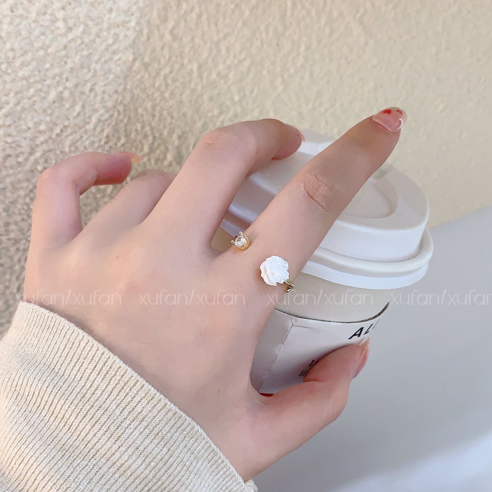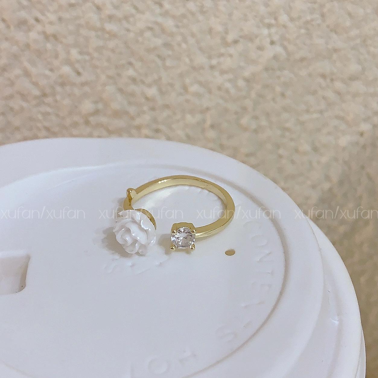 Nuevo anillo de camelia blanca para mujer, diseño de nicho, moderno, personalizado, ligero, de lujo, ajustable, para el dedo índice.