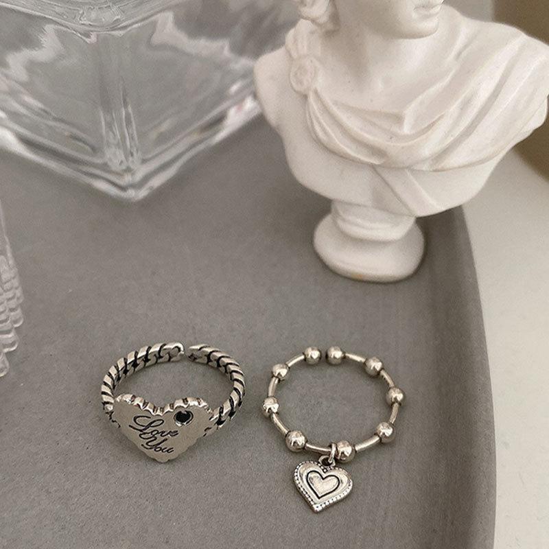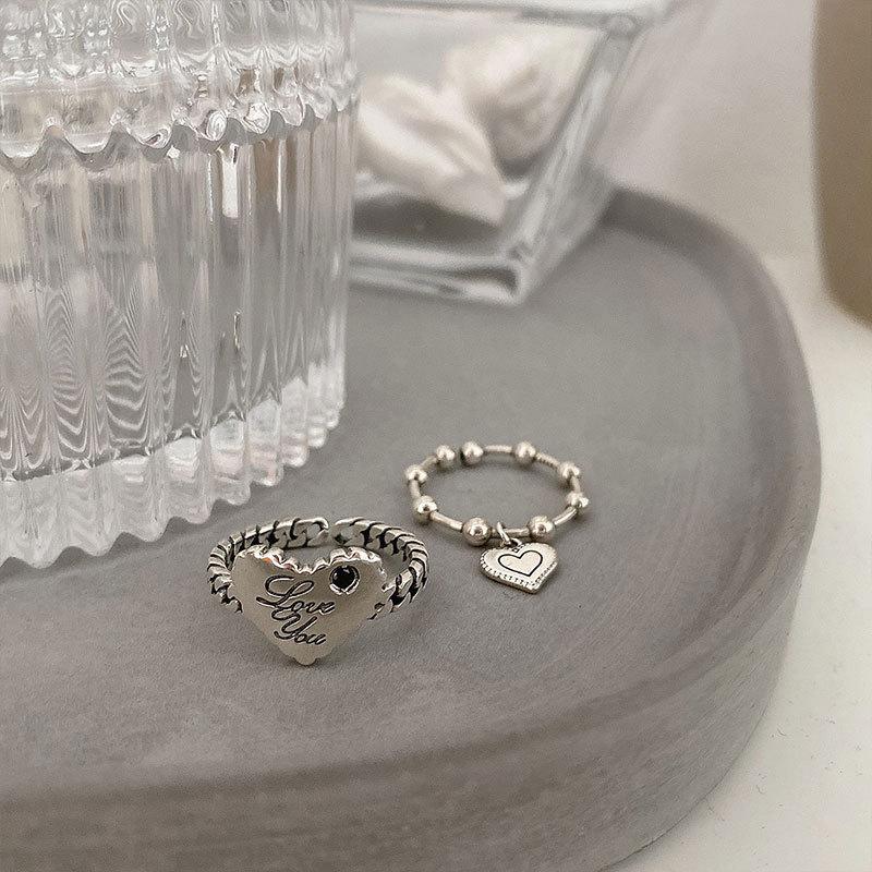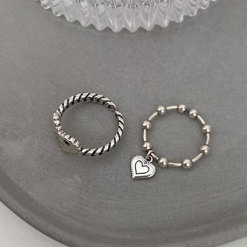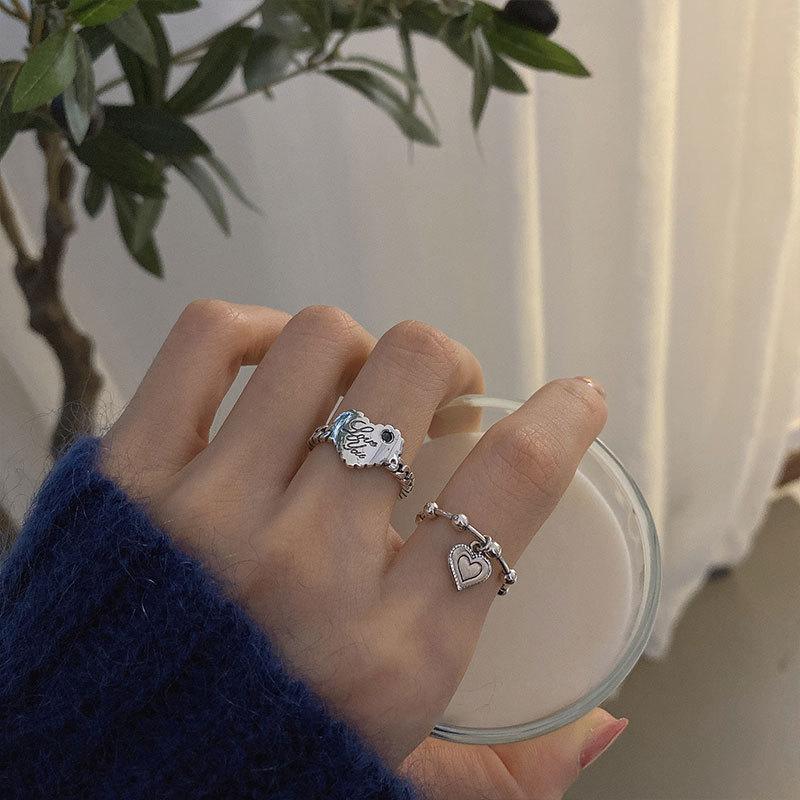 Anillo de Corazón Coreano S925 Plateado para Mujer, Anillo Retro Personalizado con Colgante de Corazón de Durazno, Anillo de Tendencia Simple Estilo Frío para Dedo Índice