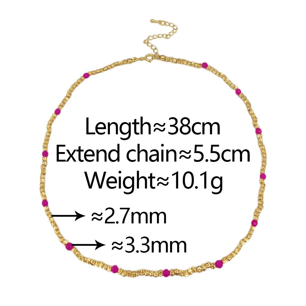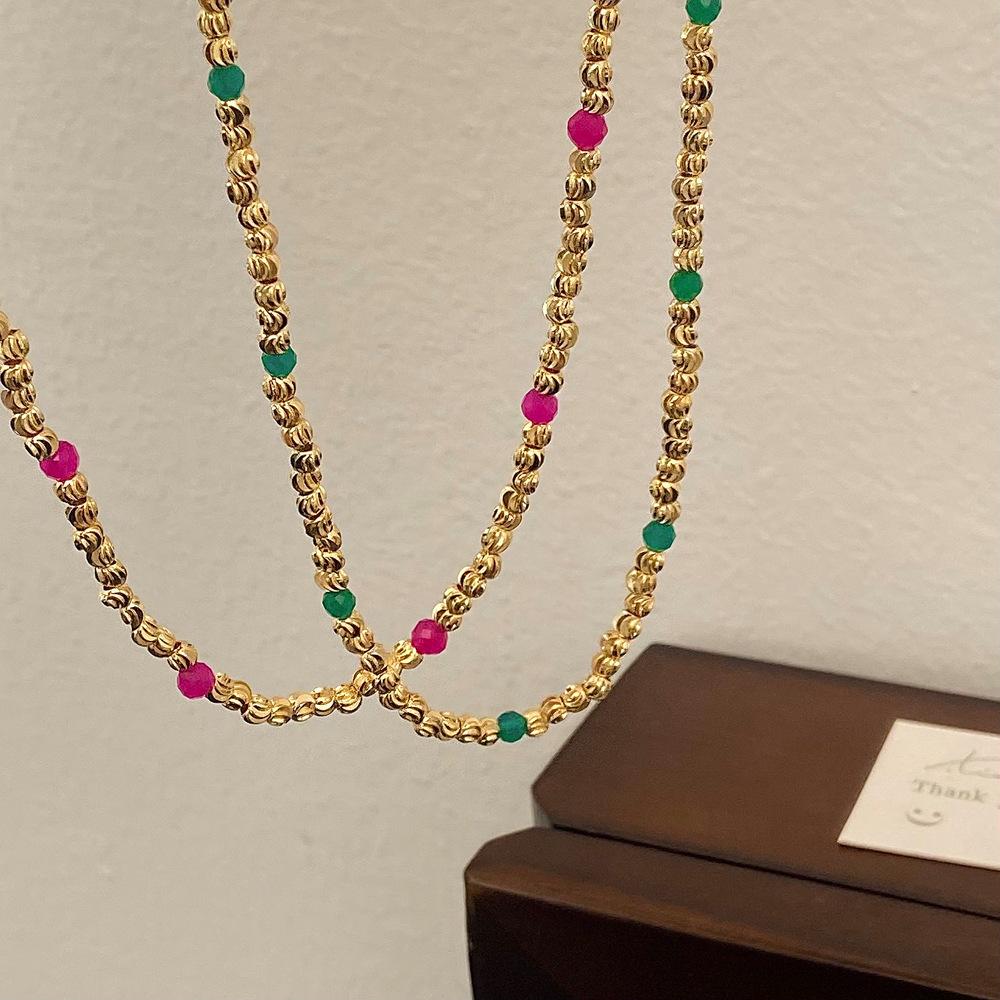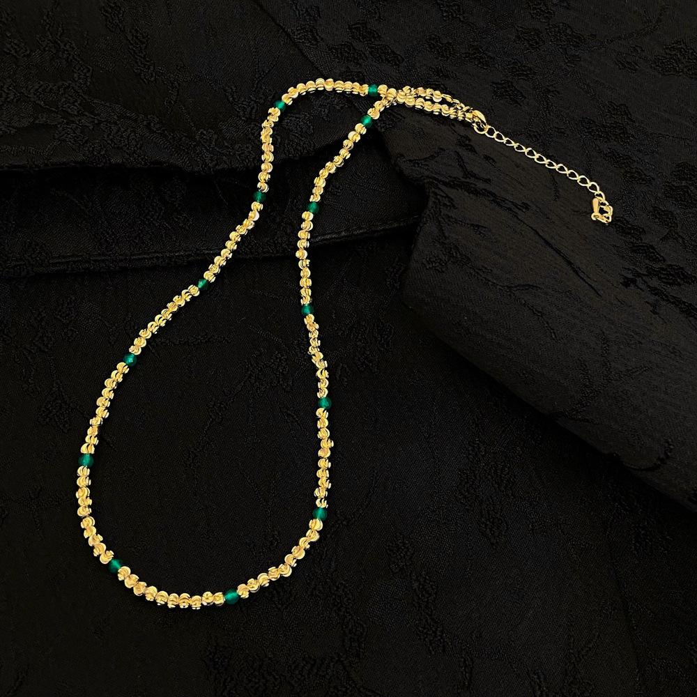 Pitaya color natural stone gold bead necklace, Green Natural Stone Gold Beads Necklace