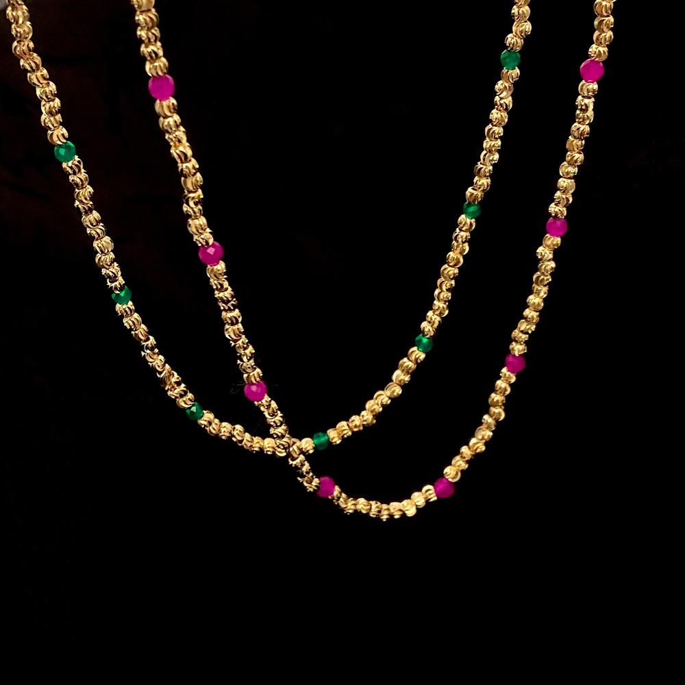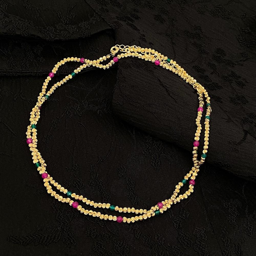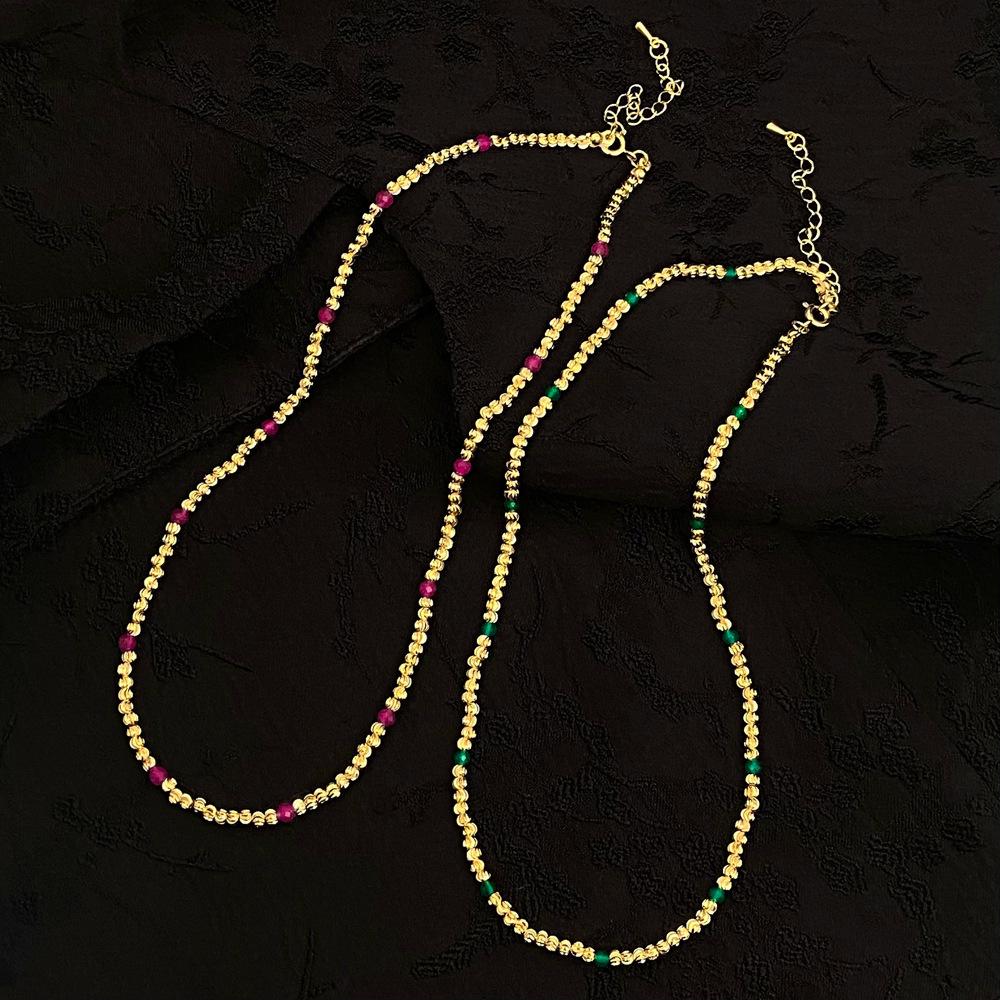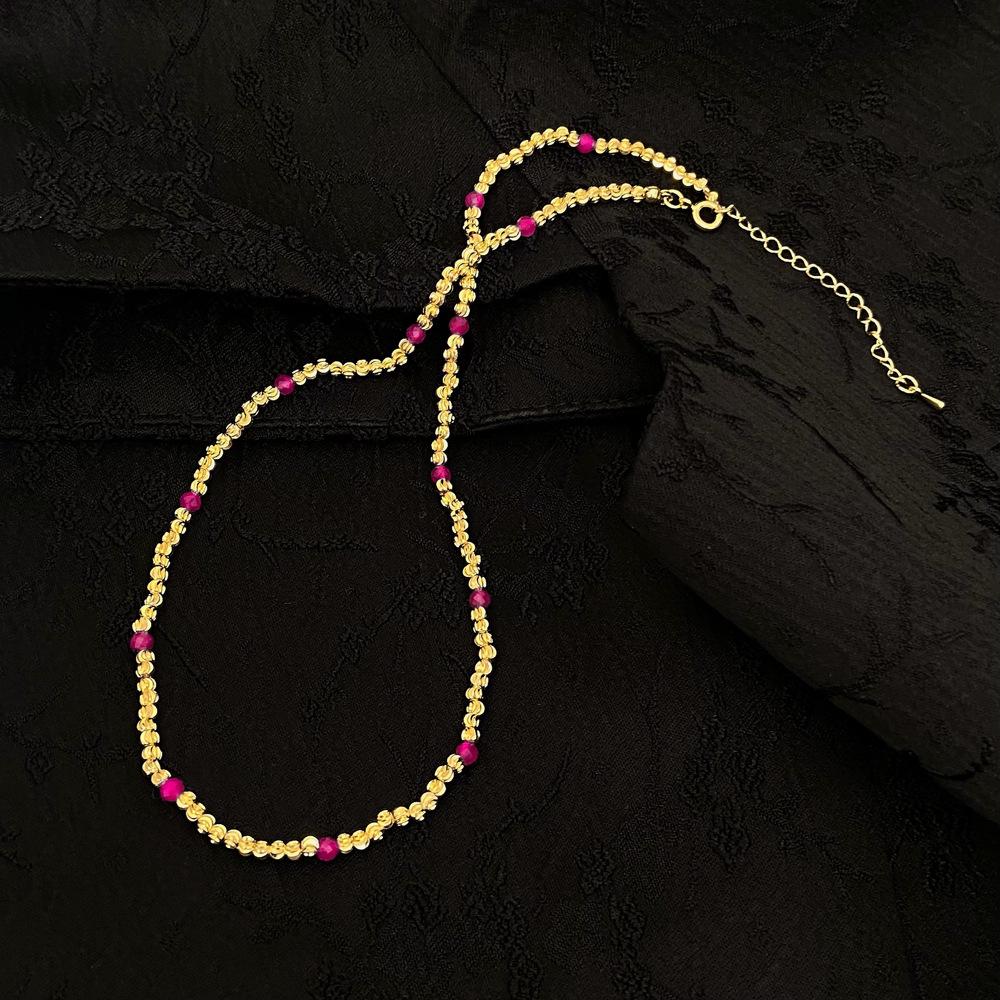 Pitaya color natural stone gold bead necklace, Green Natural Stone Gold Beads Necklace