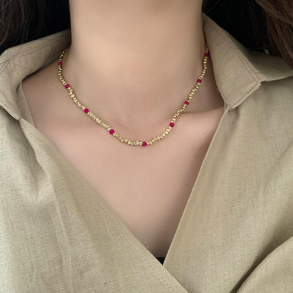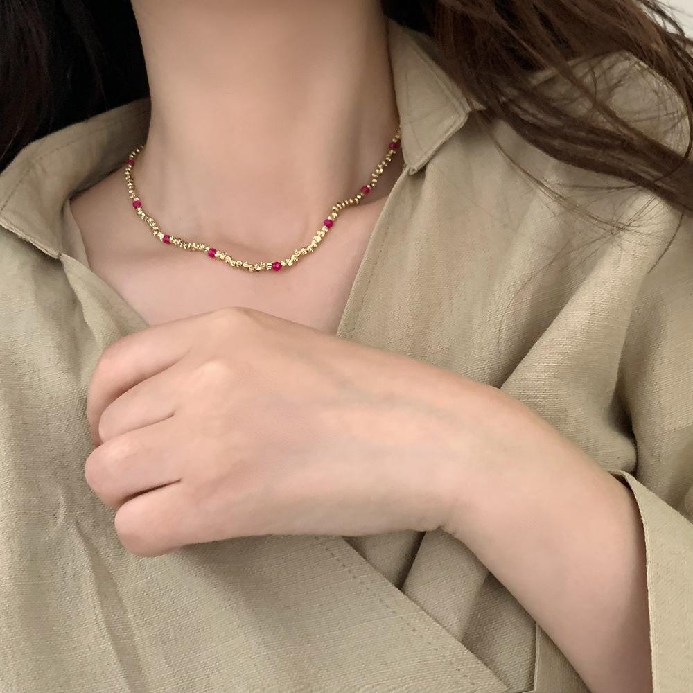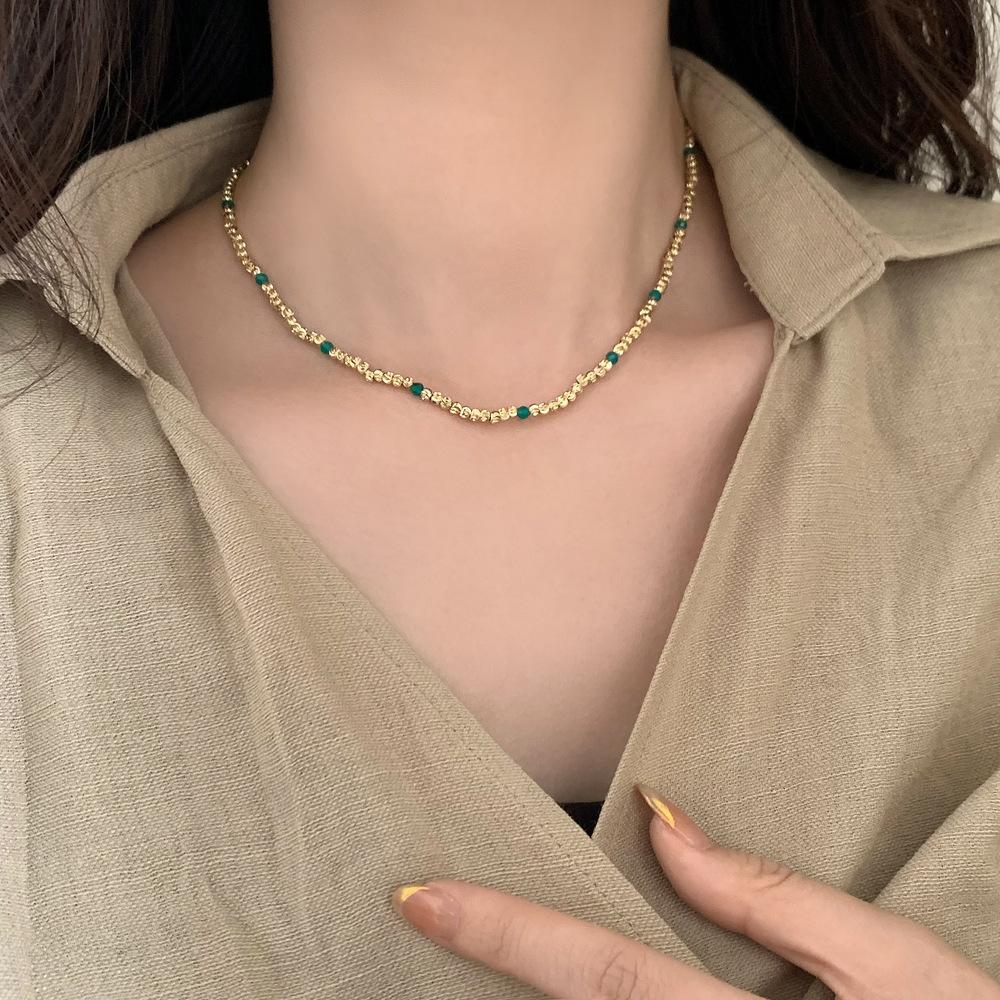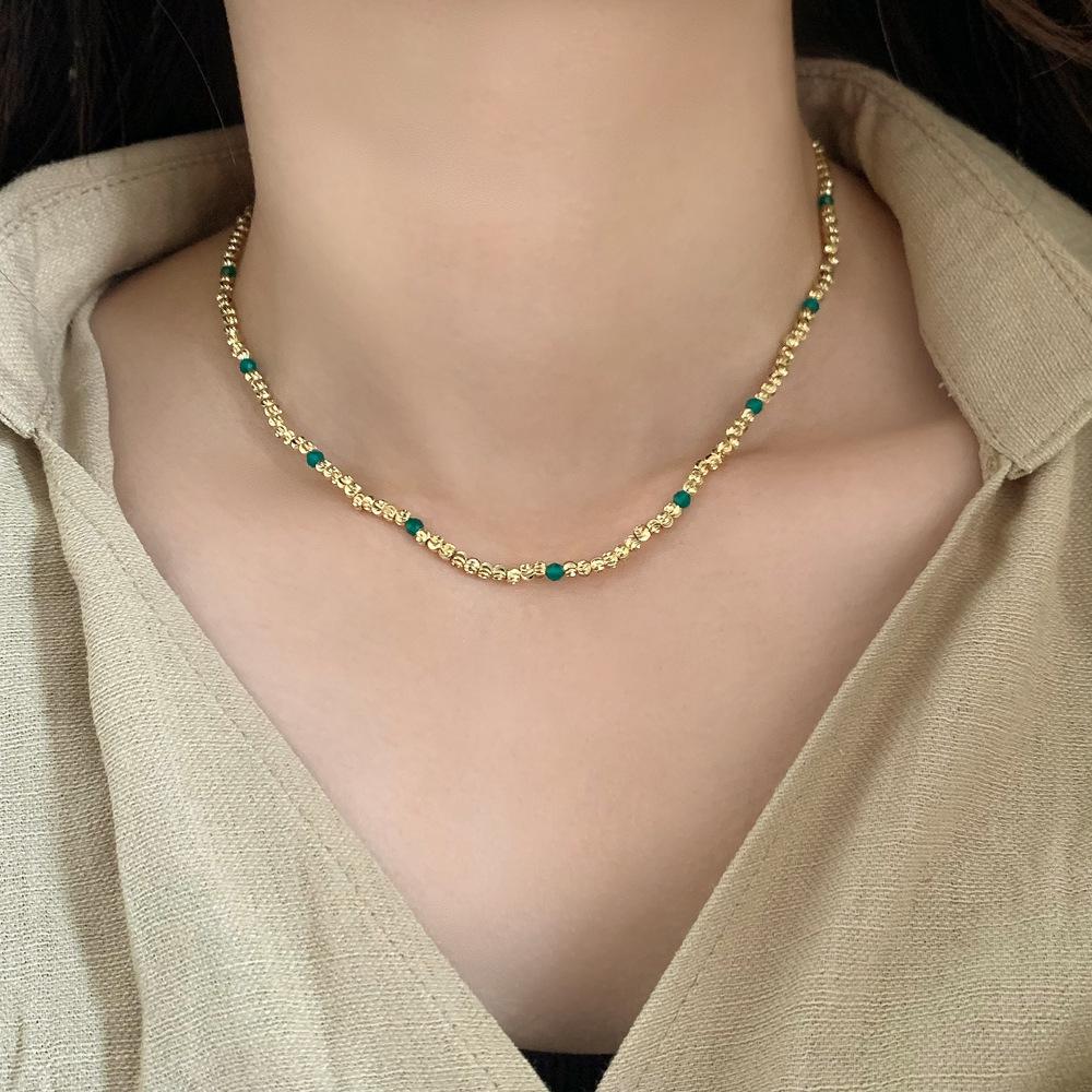 Collar Dorado Electrochapado de Nuevo Estilo Europeo y Americano de Venta Caliente Versátil Choker de Piedra Natural de Alta Gama Cadena para Clavícula Estilo Celebridad de Internet Ins para Mujer