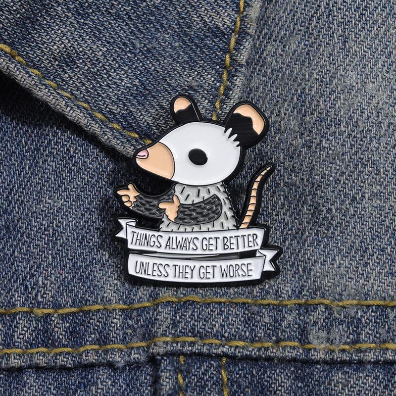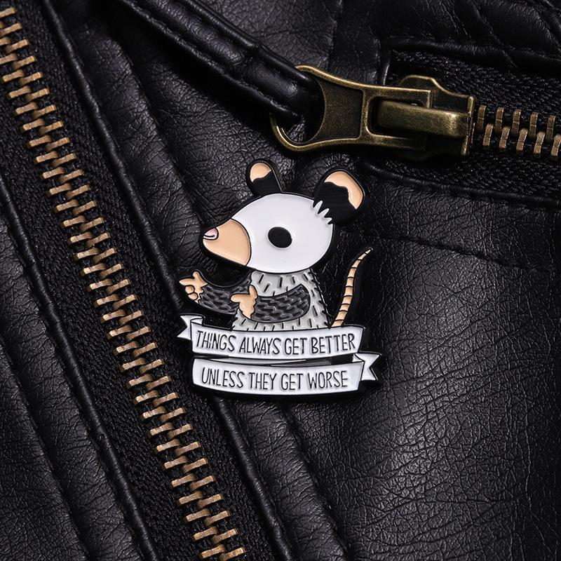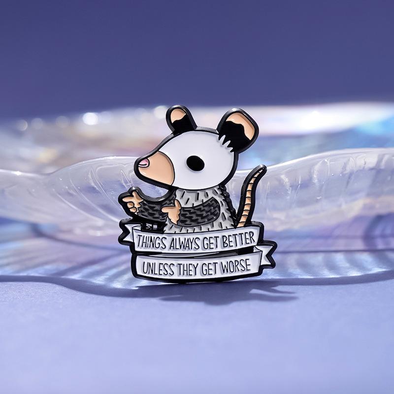 Broche transfronterizo nuevo y divertido de animal de dibujos animados de ratoncito con letras inglesas creativas y personalidad que combina con todo, hebilla decorativa