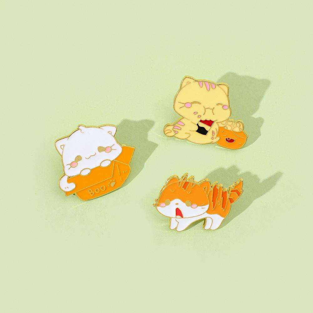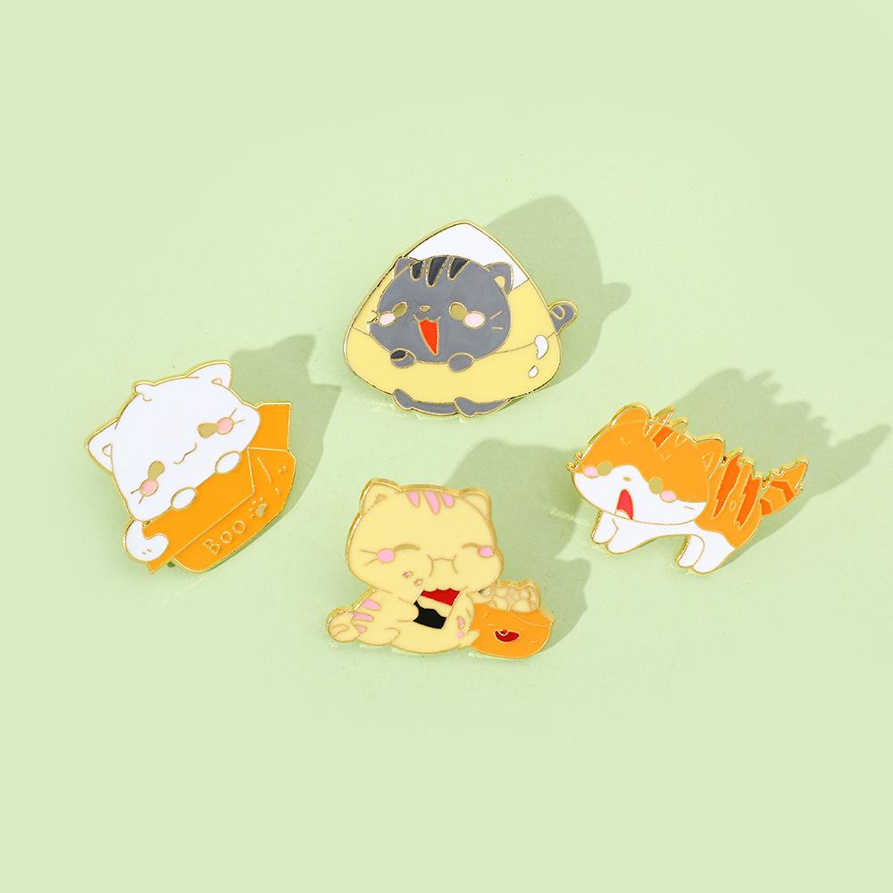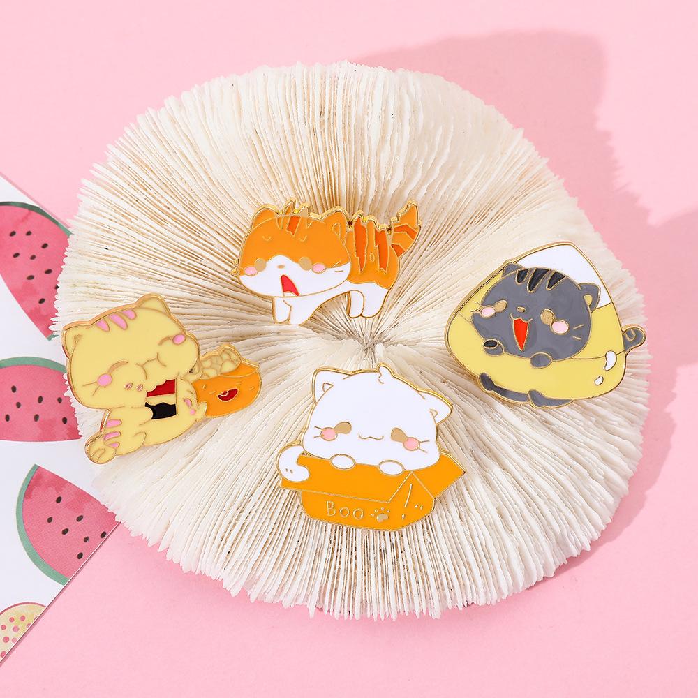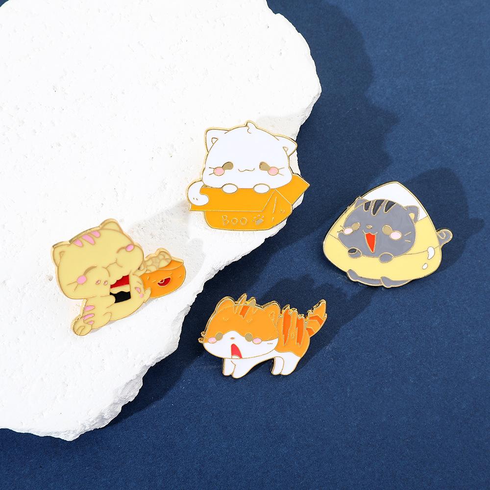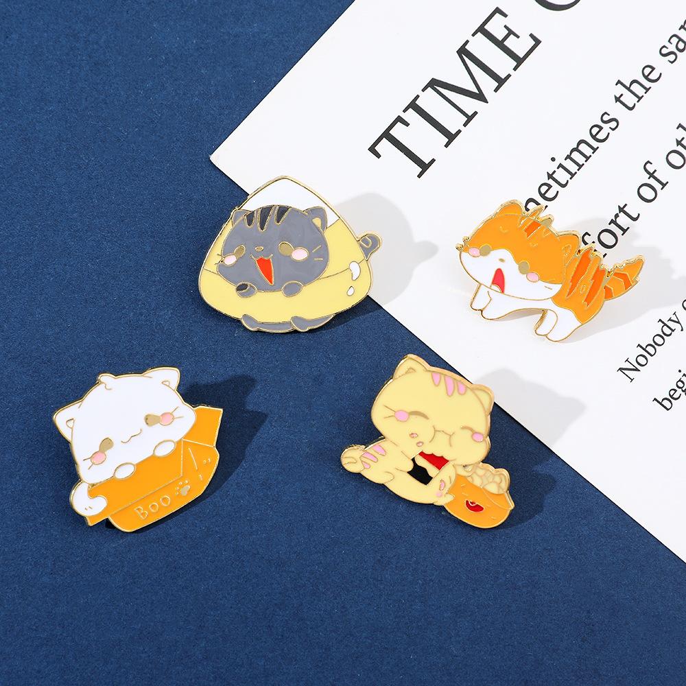 Broche de gato lindo de dibujos animados gatito gato en cartón comiendo asustado insignia de metal accesorios pin