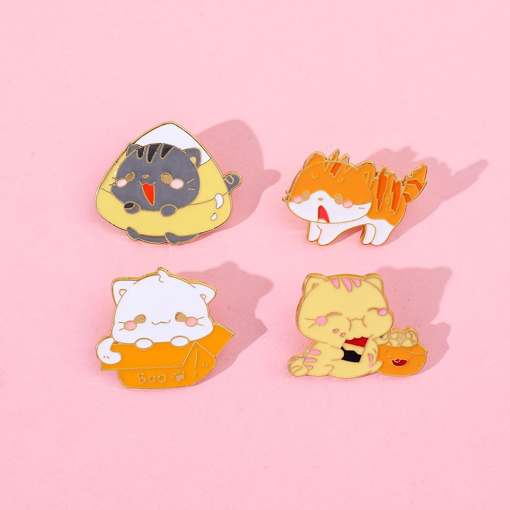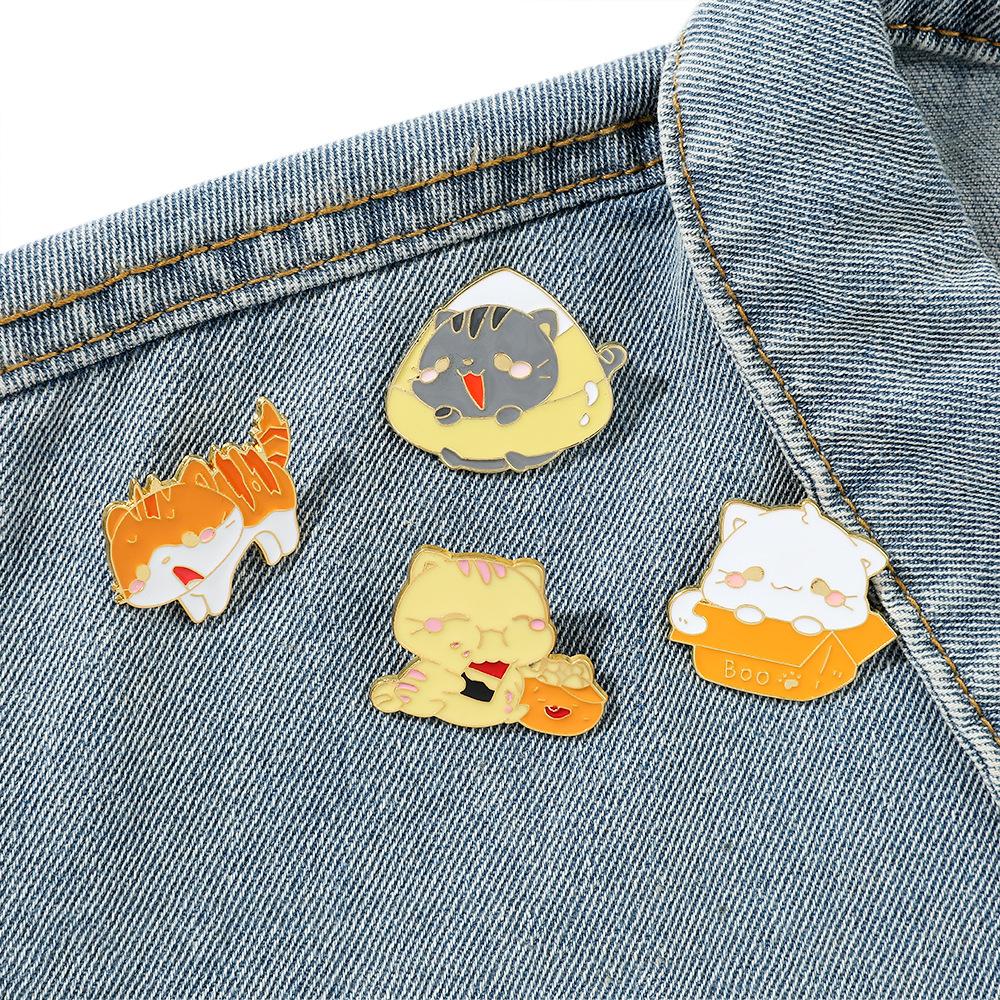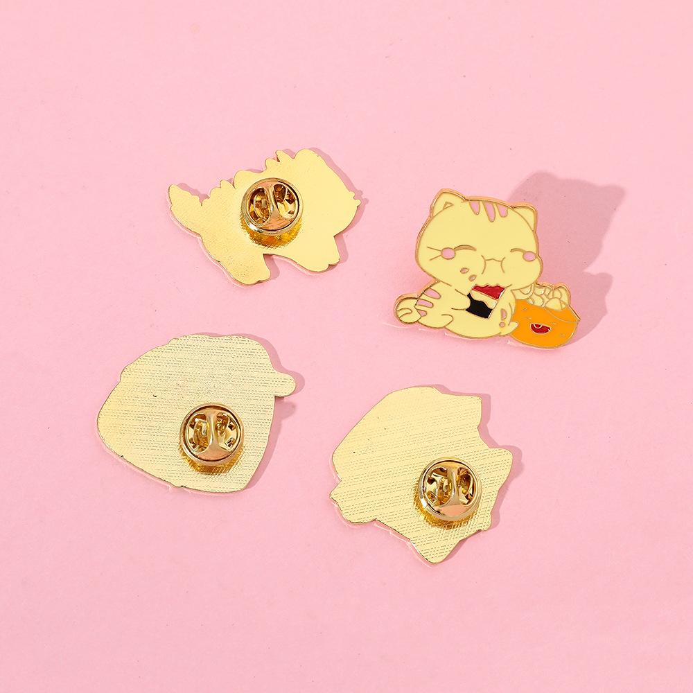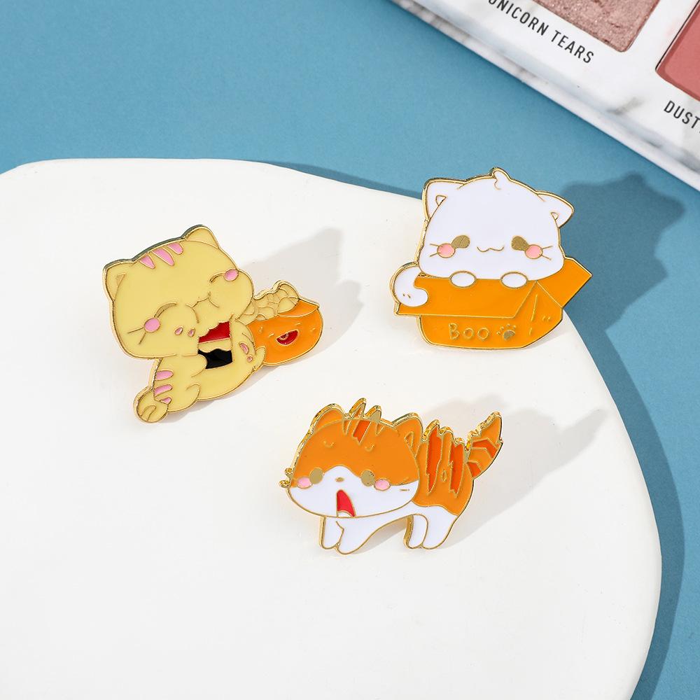 Broche de gato lindo de dibujos animados gatito gato en cartón comiendo asustado insignia de metal accesorios pin