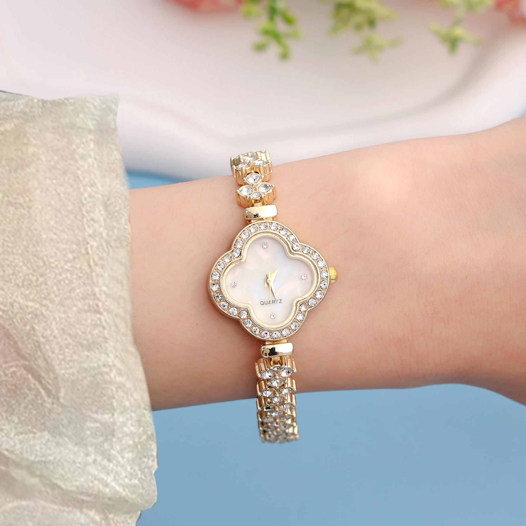 Reloj de cuarzo con correa de acero decorativa de moda Clover transfronterizo Fabricante de relojes de diamantes para mujer Comercio exterior venta al por mayor caliente