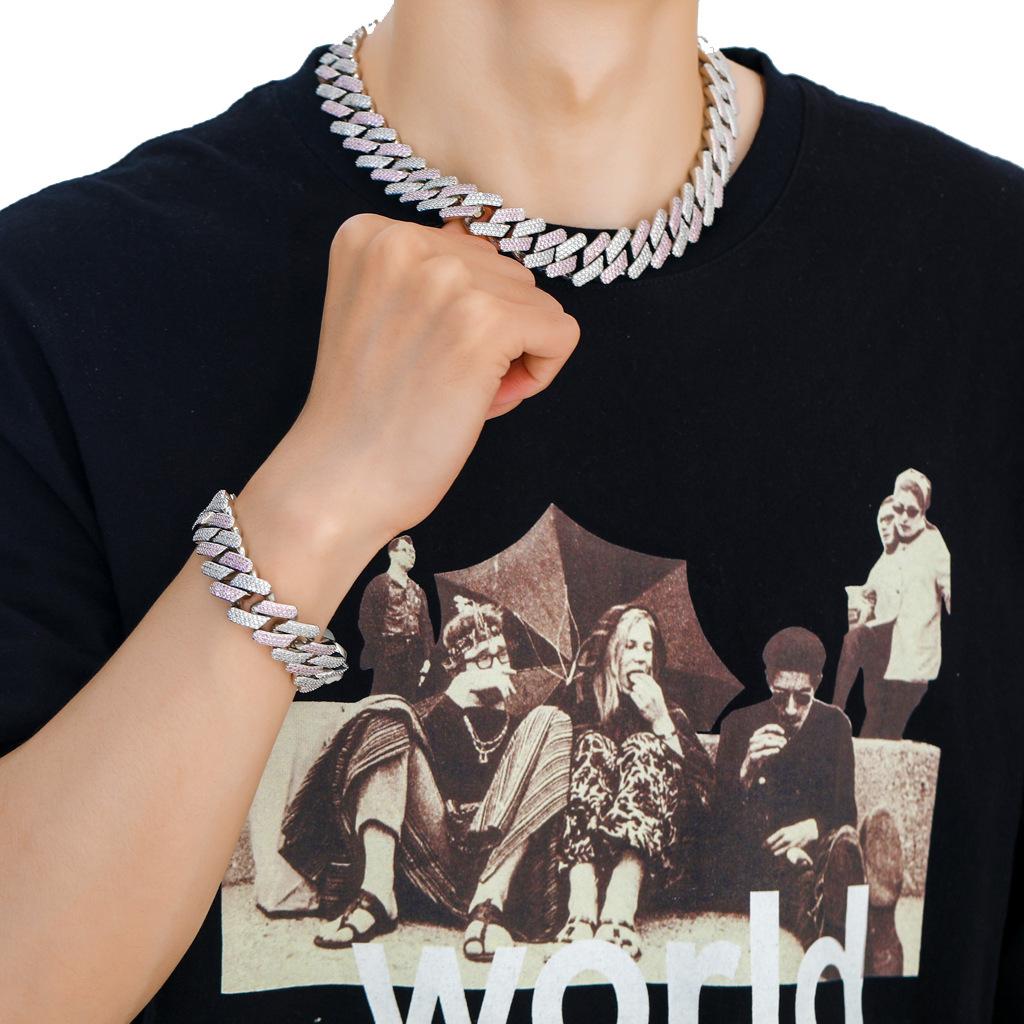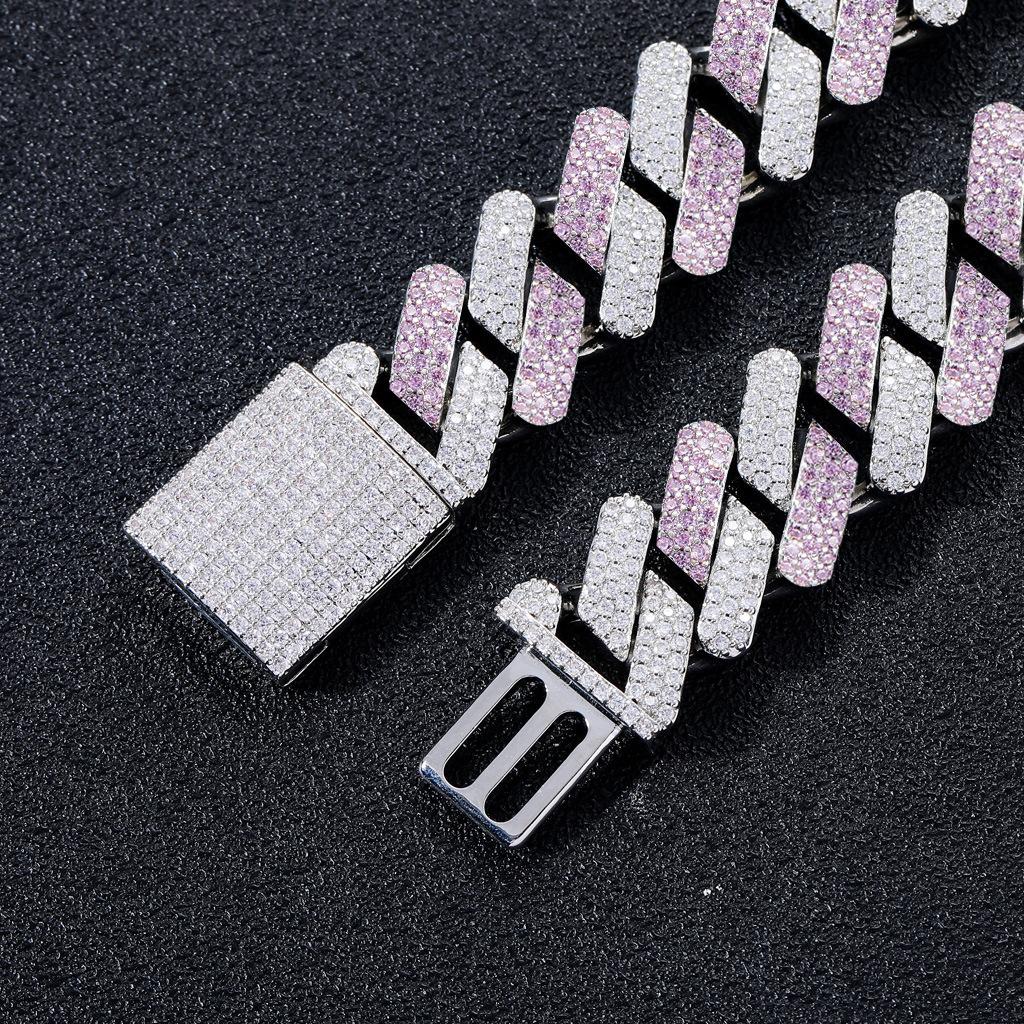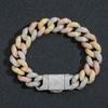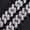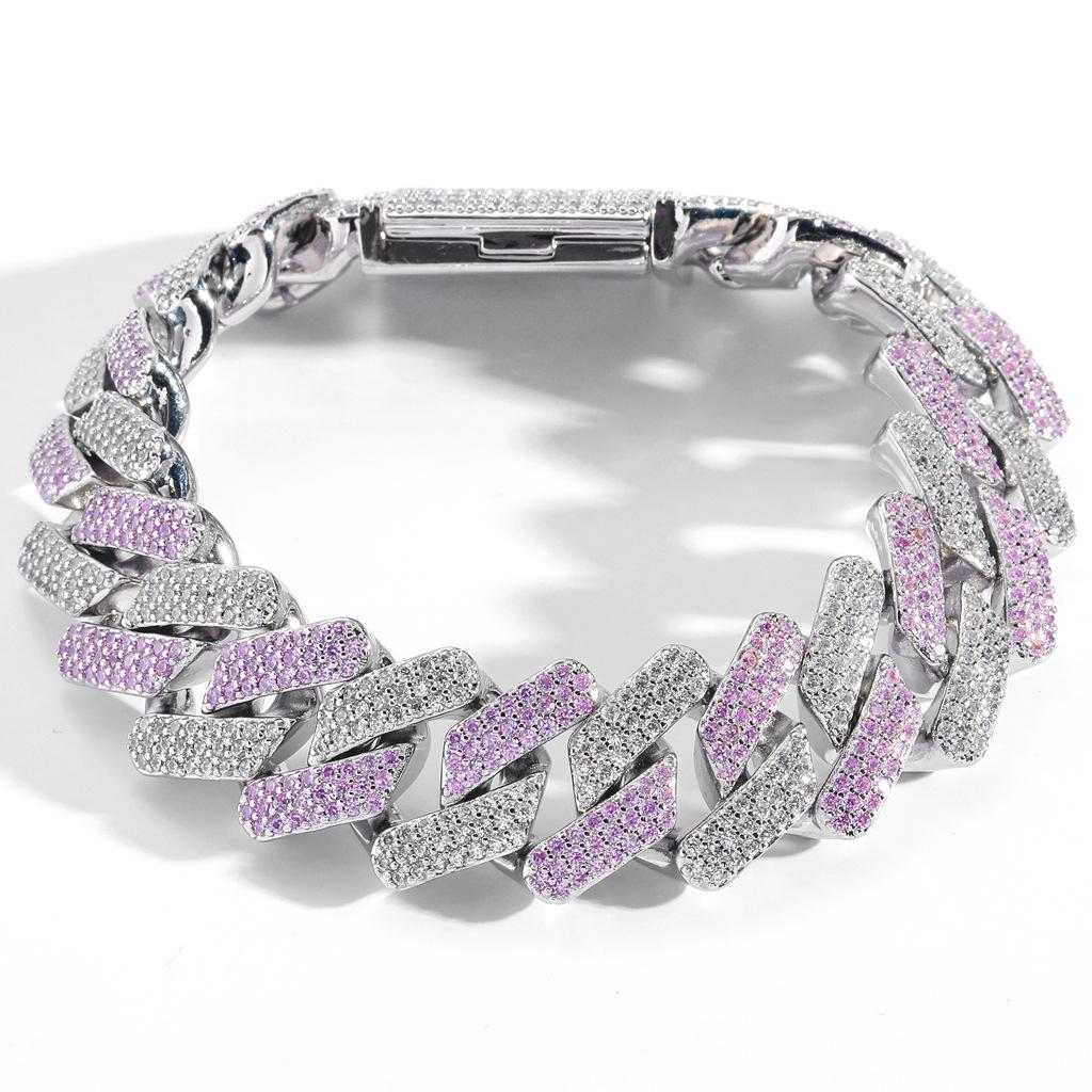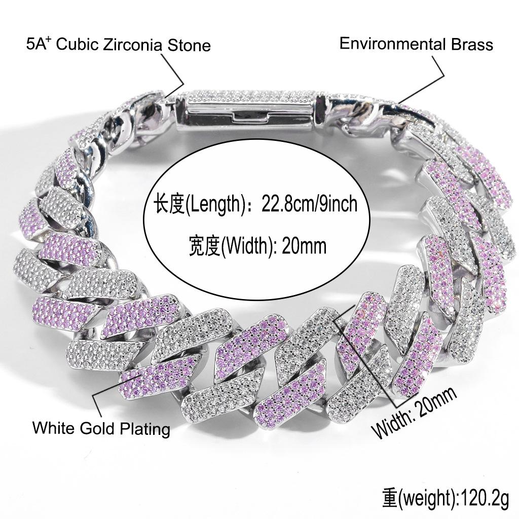 Joyería hip hop europea y americana circonita rosa blanca 20MM hebilla de caja Miami industria pesada cadena cubana pulsera hip hop para hombre