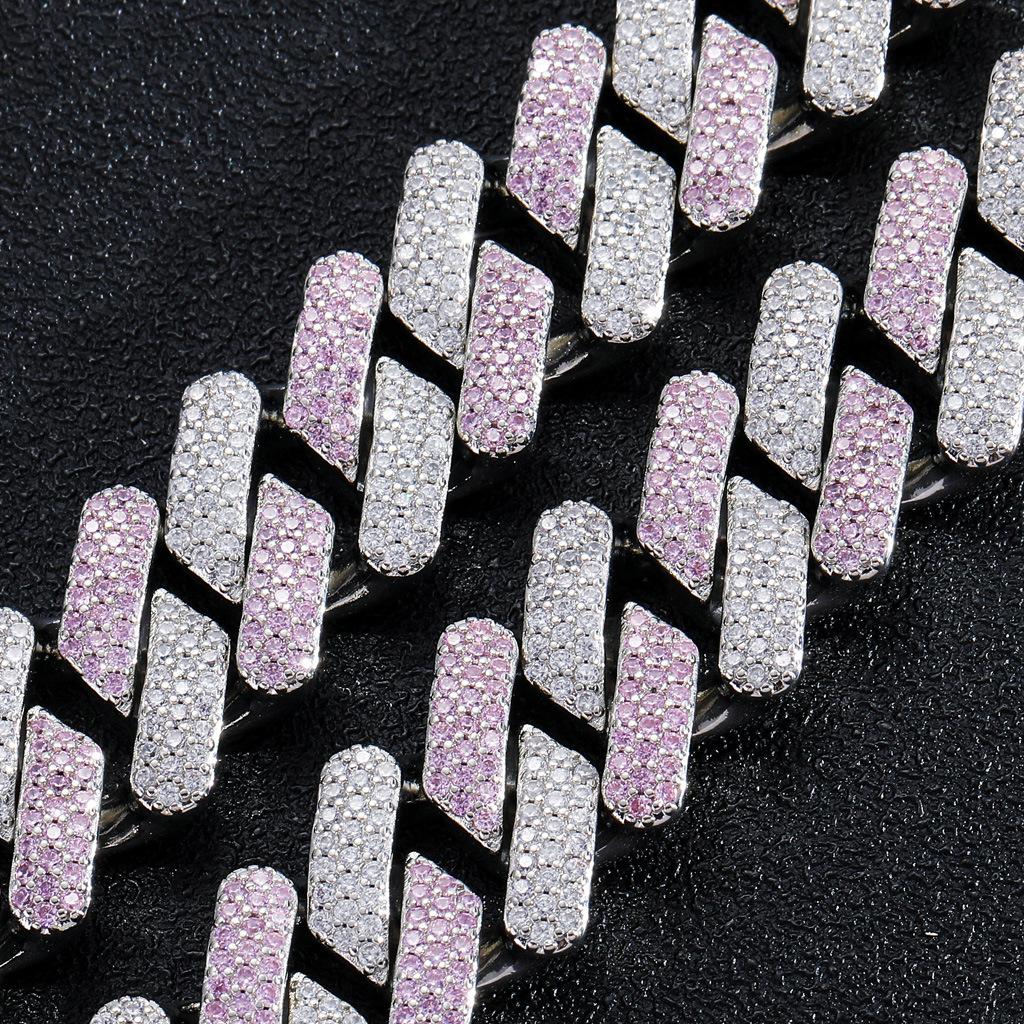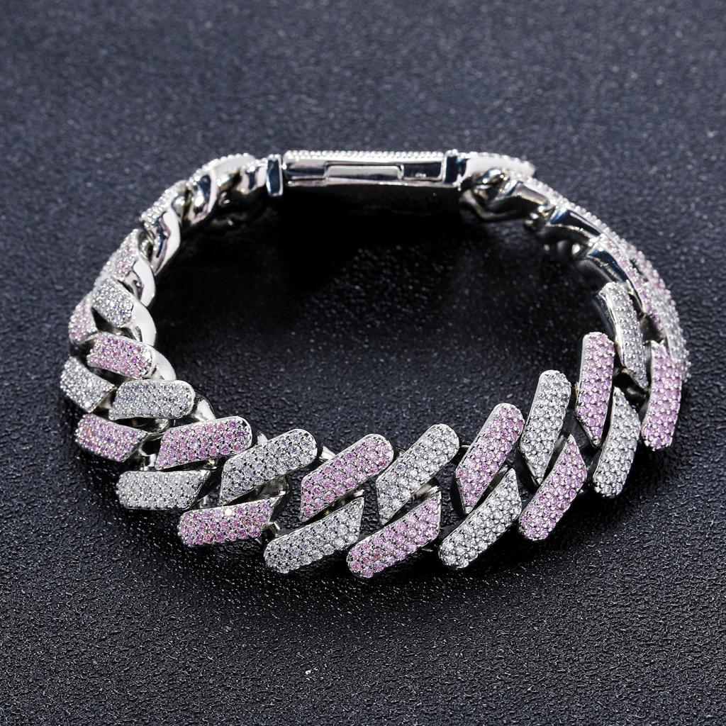 Artículo/Nombre del producto: Pulsera Cubana de Zirconia Rosa y Blanca de 20 mm Estilo Hip Hop