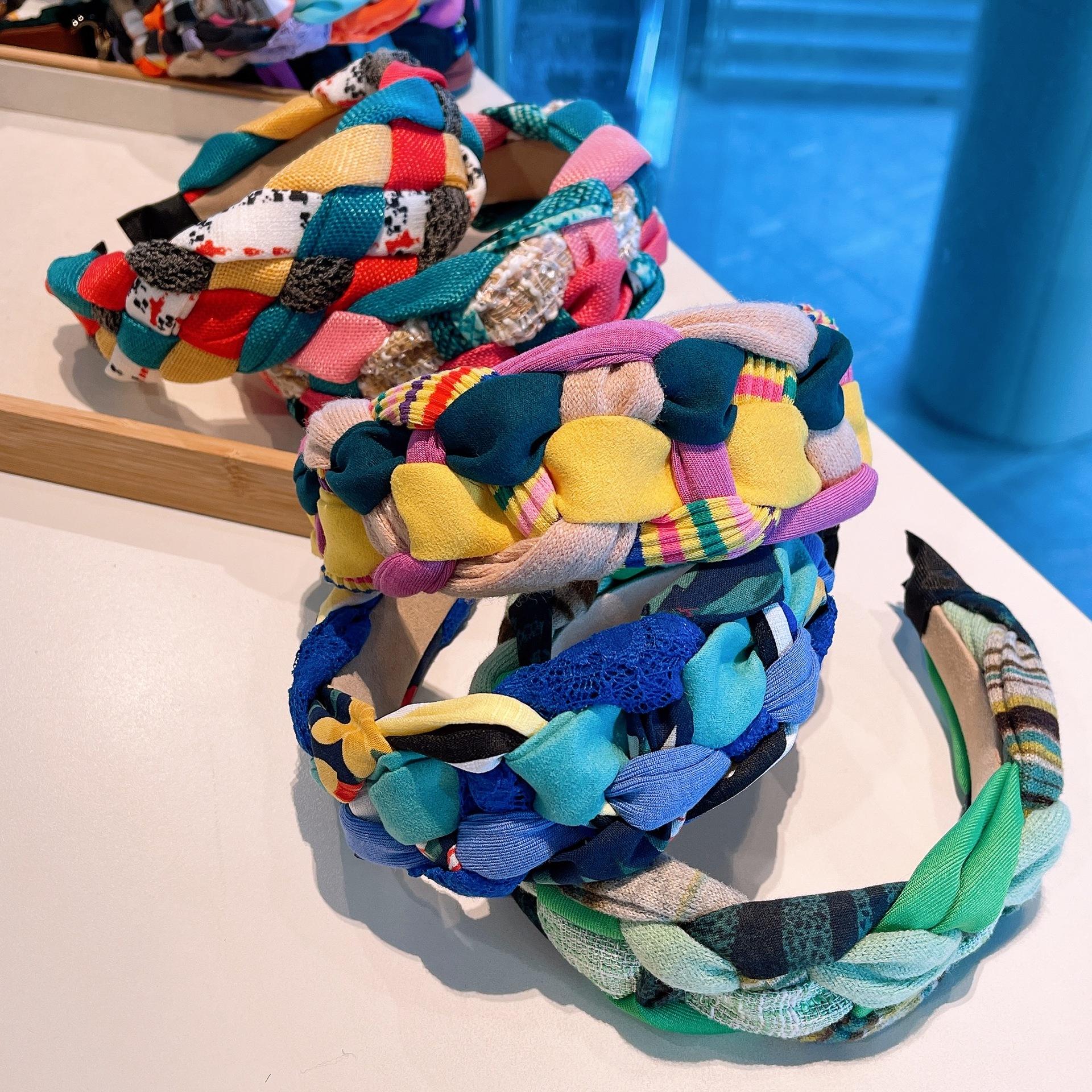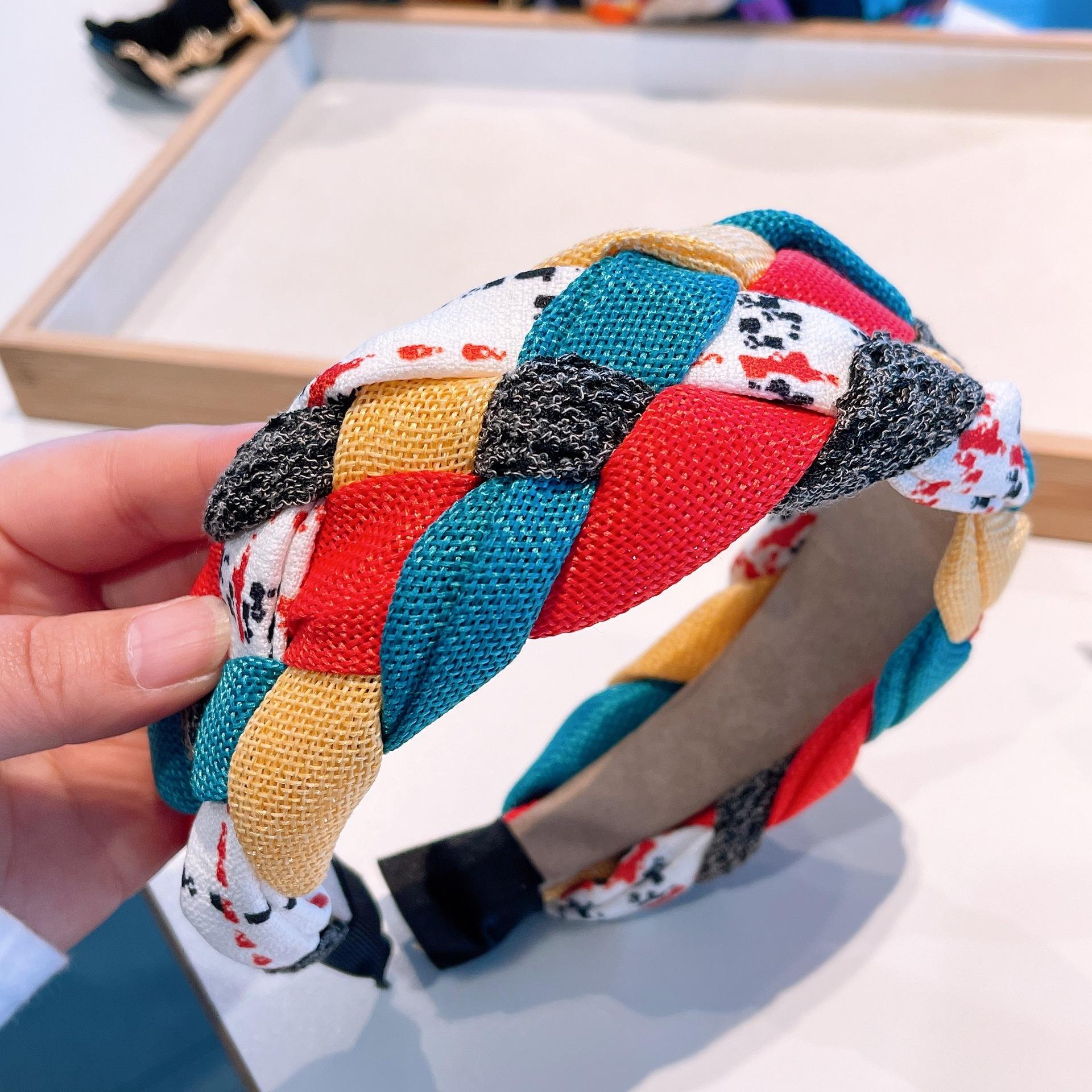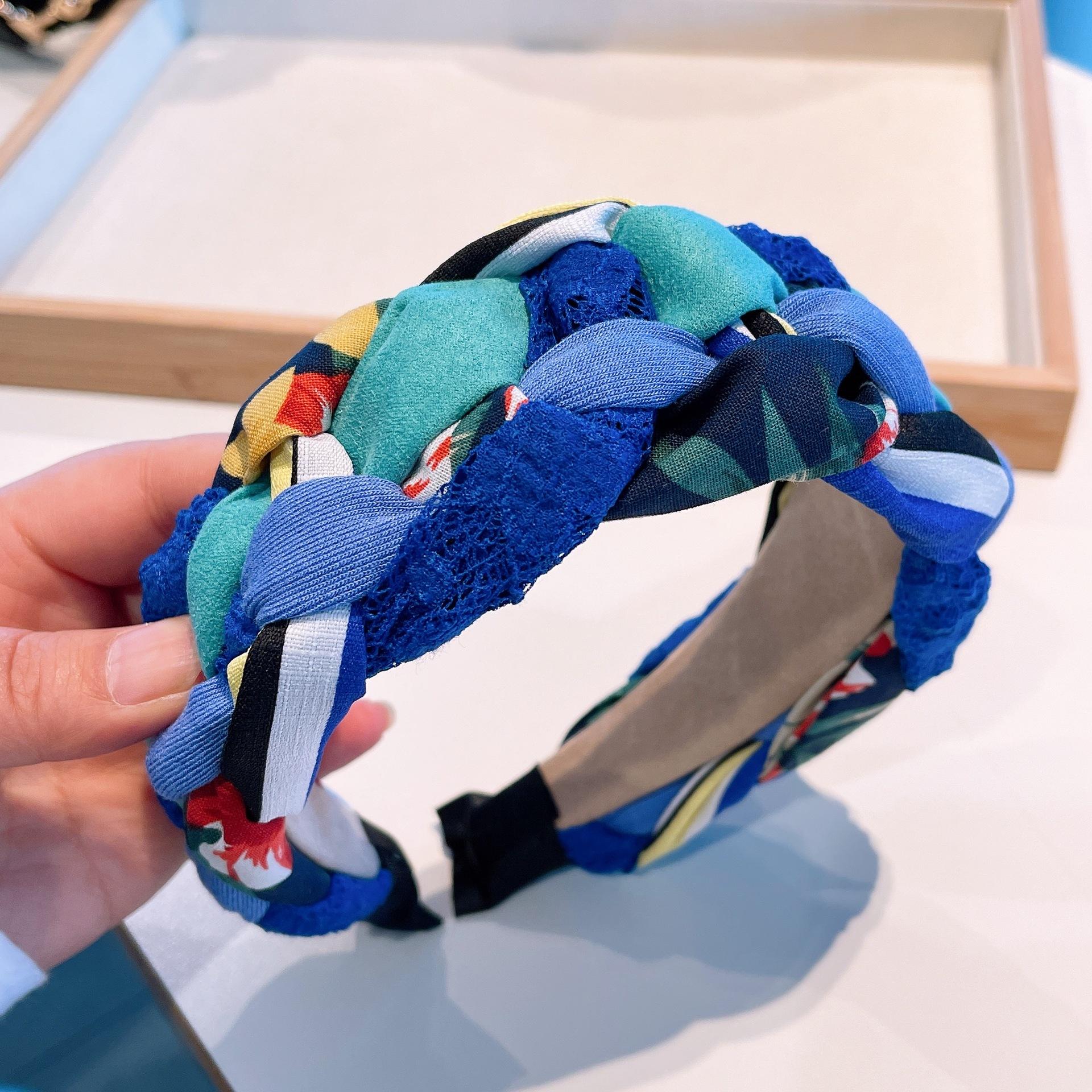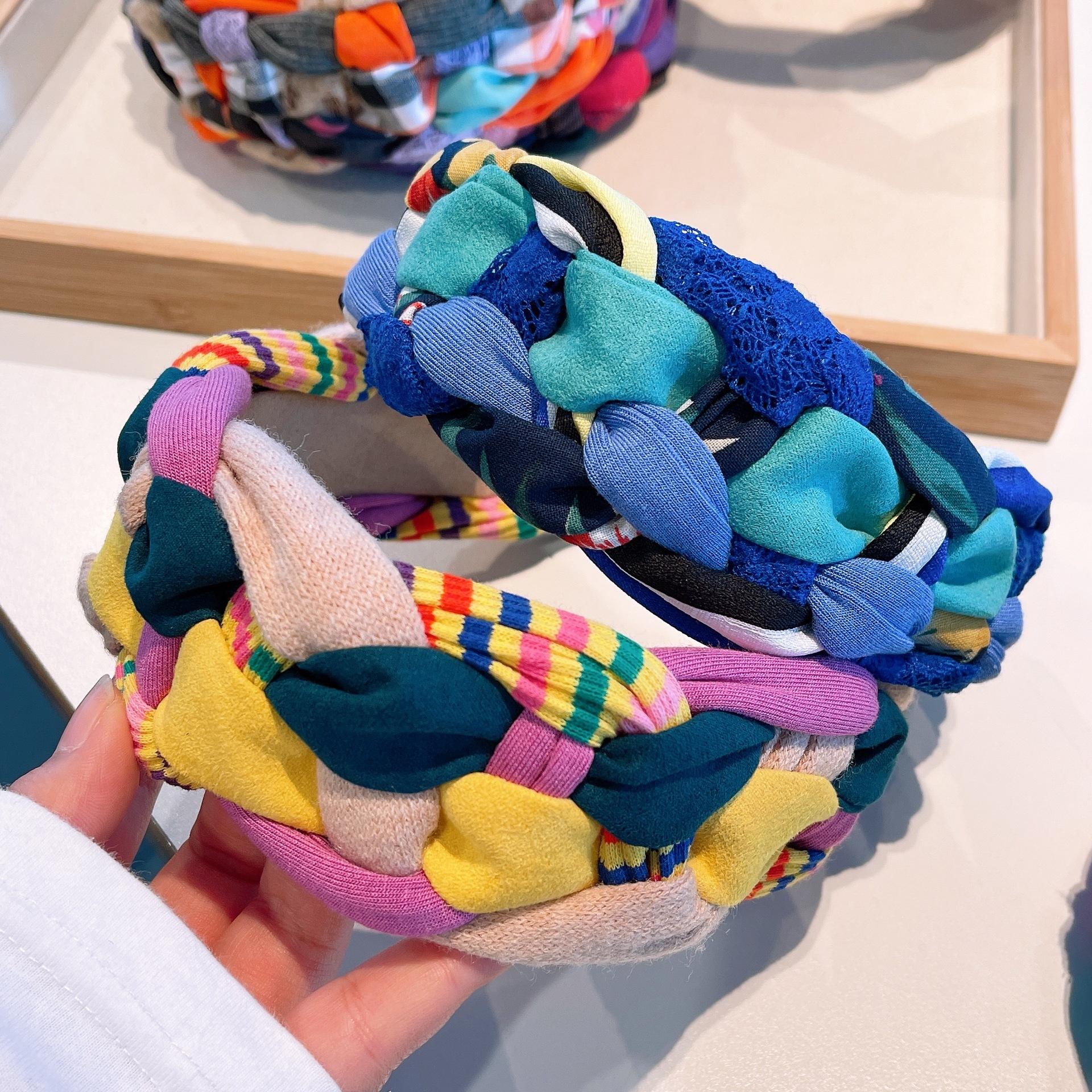 Diadema con estampado bohemio, nueva diadema europea y americana con lazo de doble capa y lunares, diadema ancha de malla con borde ancho.