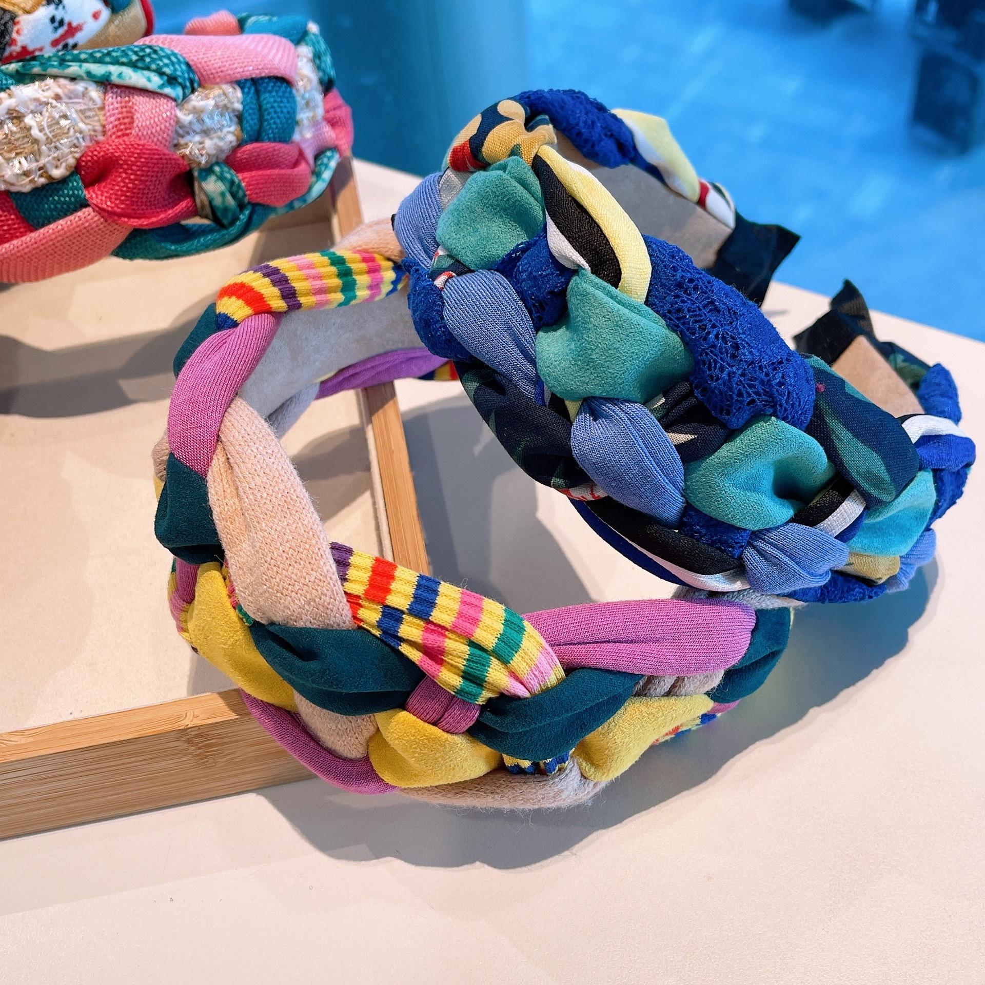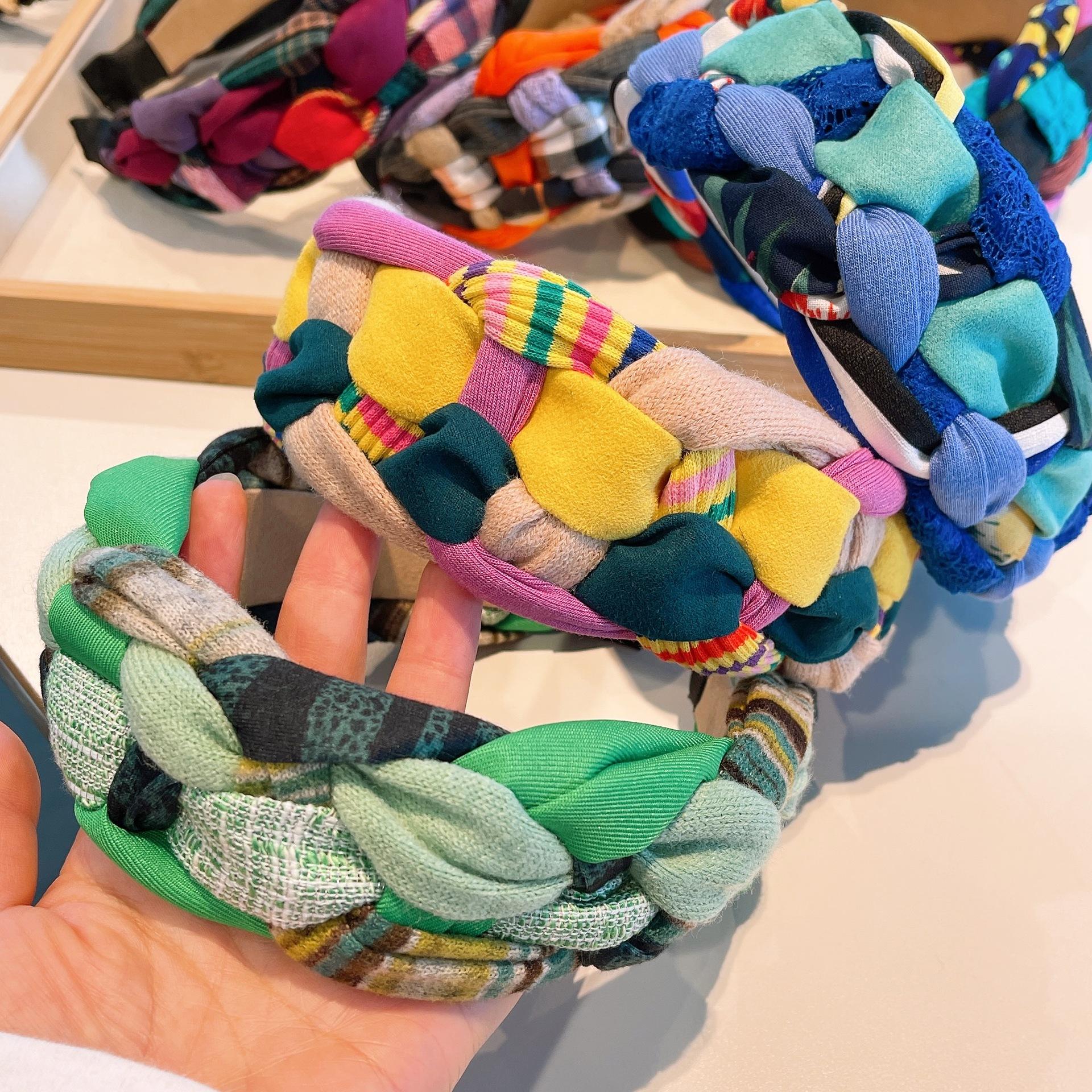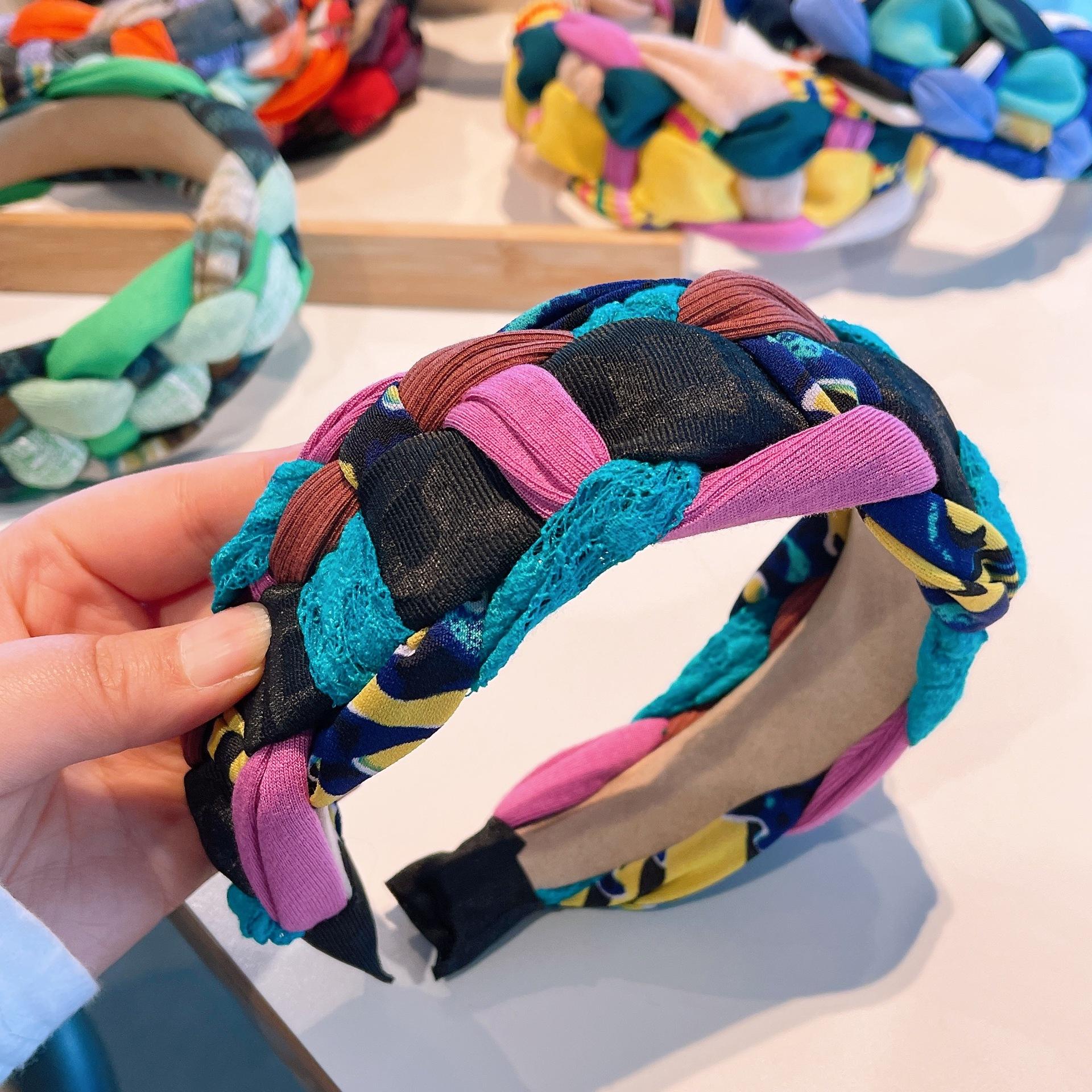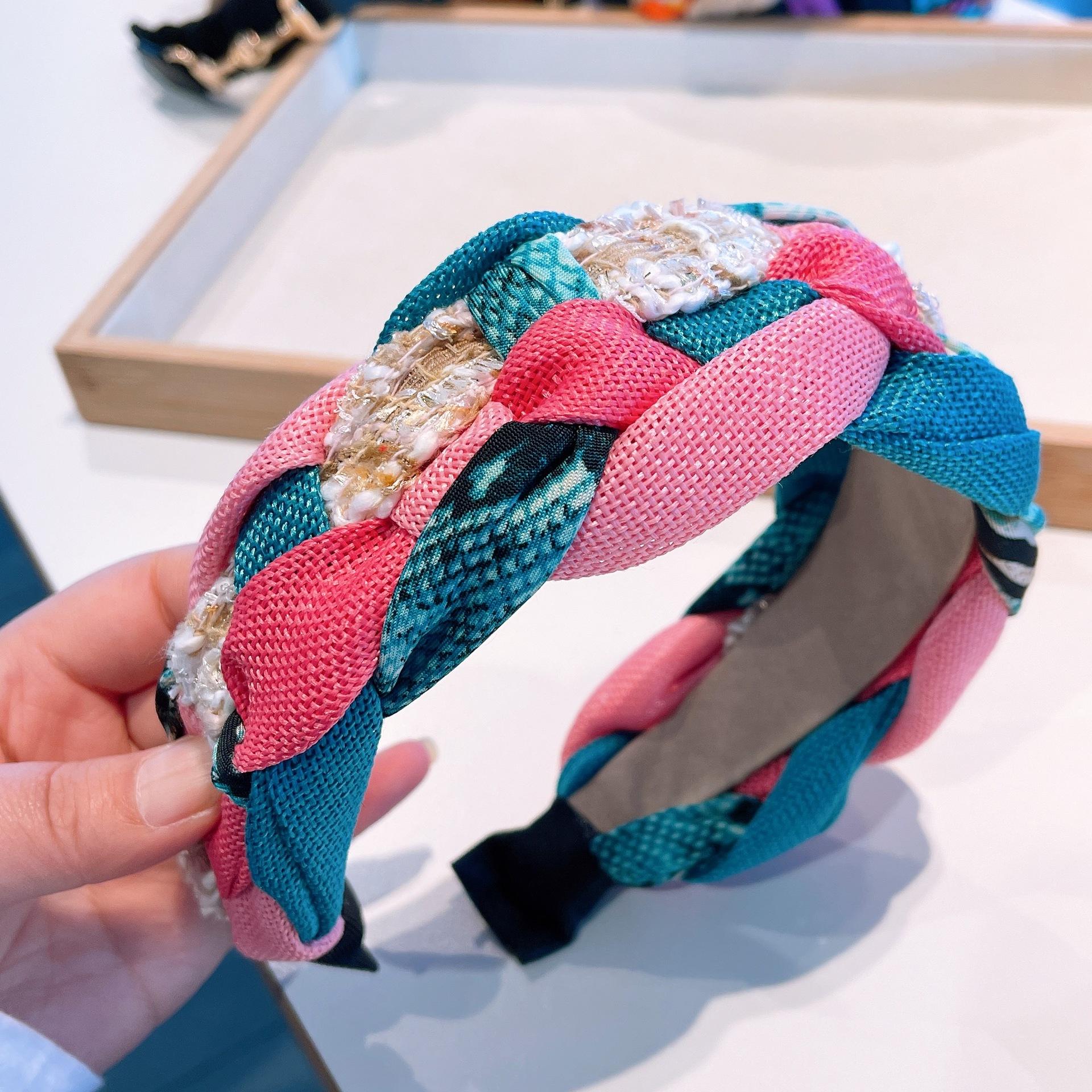 Diadema con estampado bohemio, nueva diadema europea y americana con lazo de doble capa y lunares, diadema ancha de malla con borde ancho.