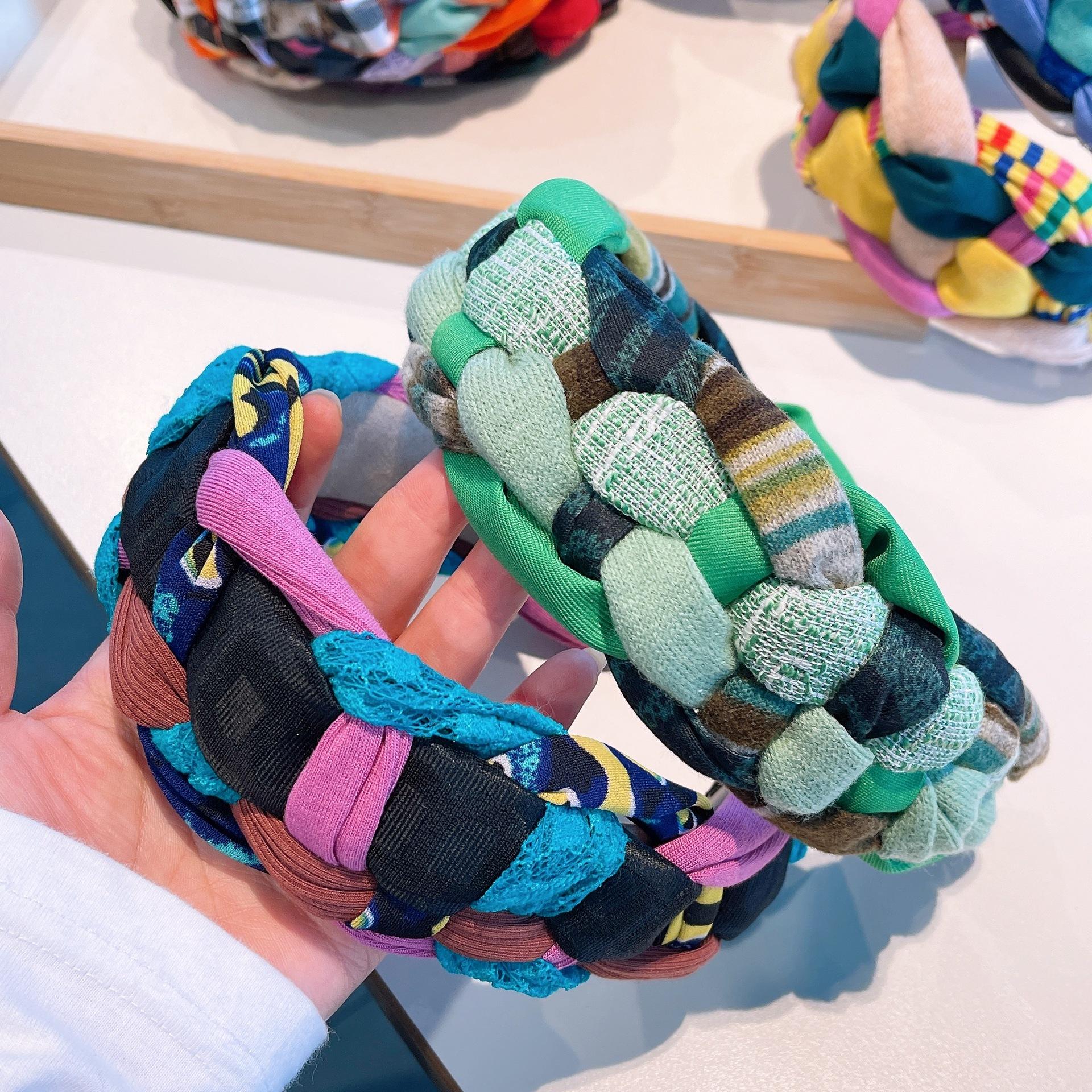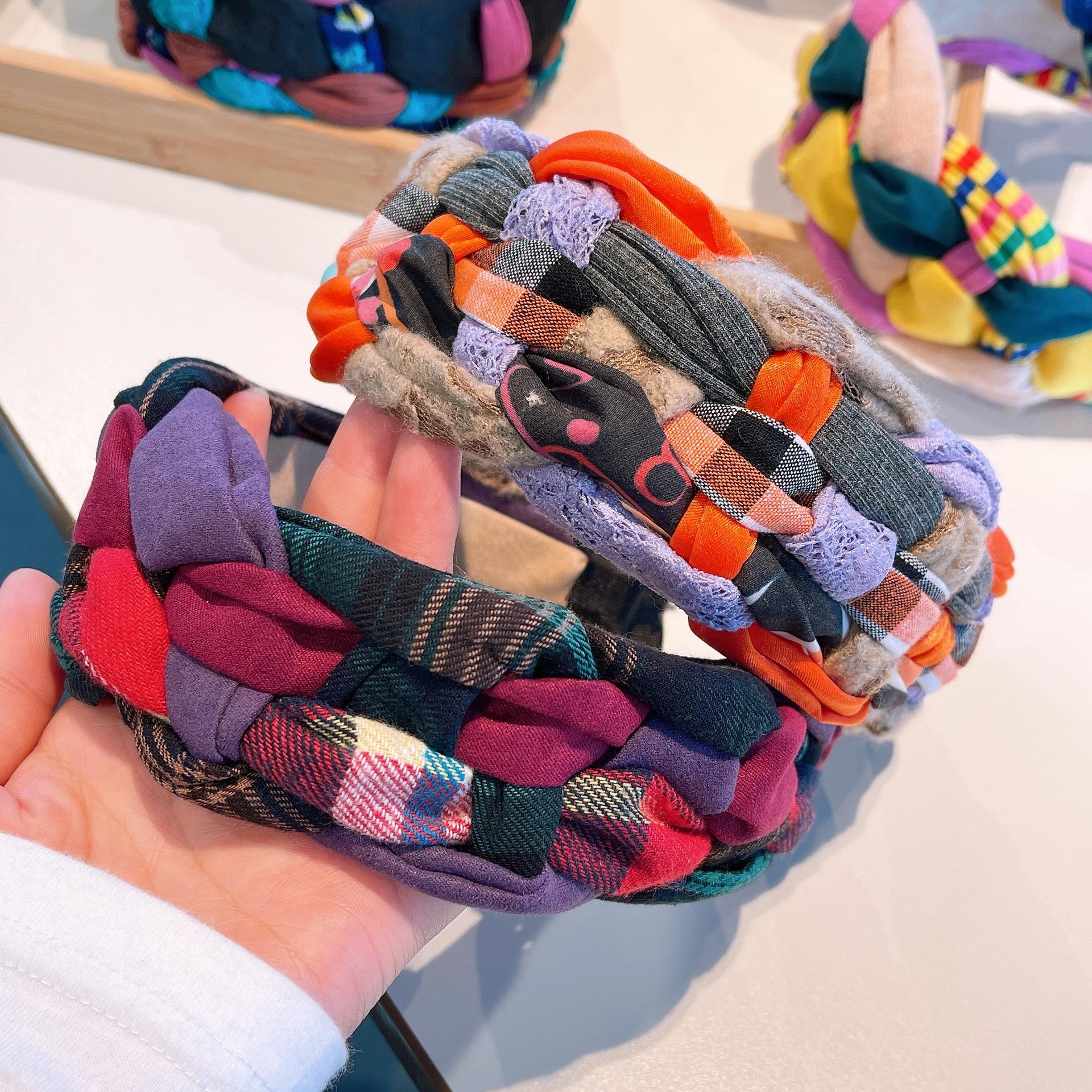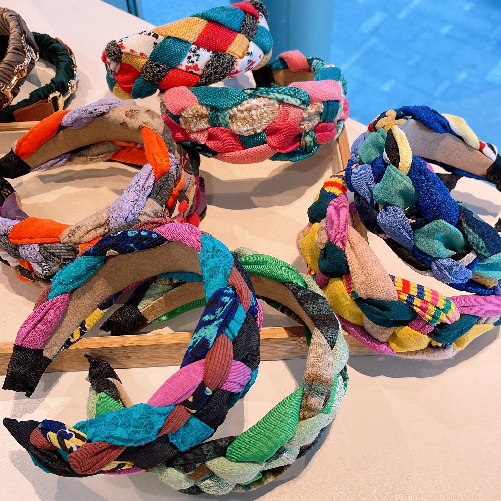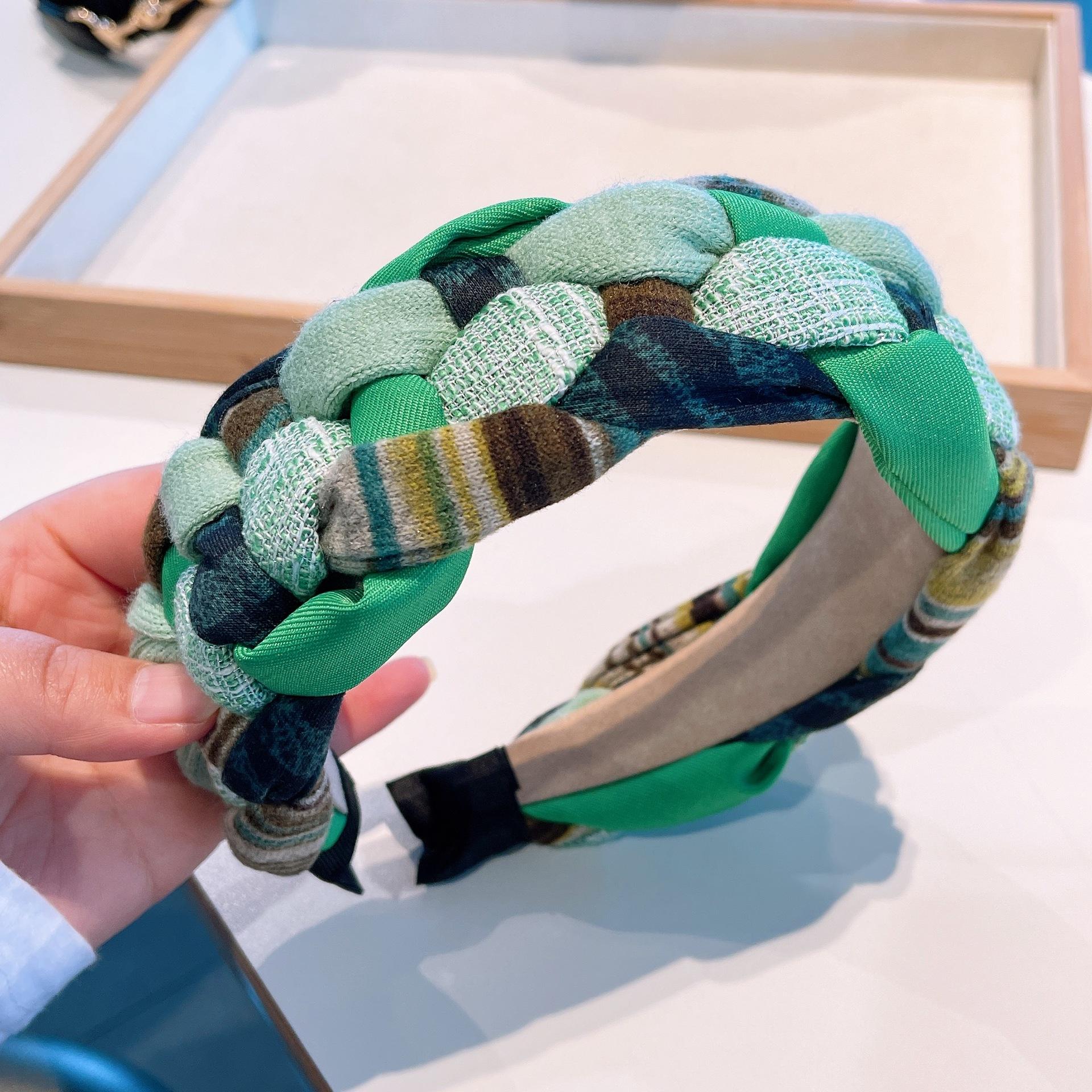 Diadema con estampado bohemio, nueva diadema europea y americana con lazo de doble capa y lunares, diadema ancha de malla con borde ancho.