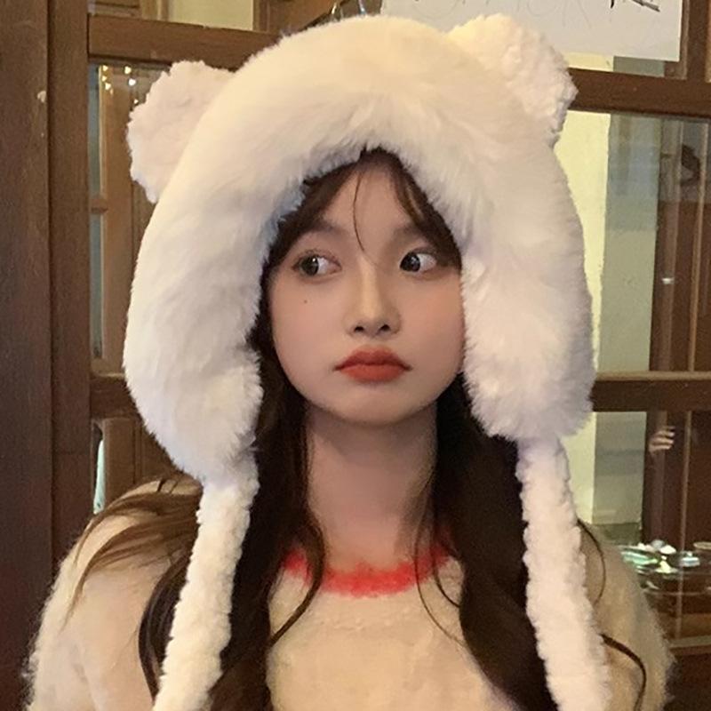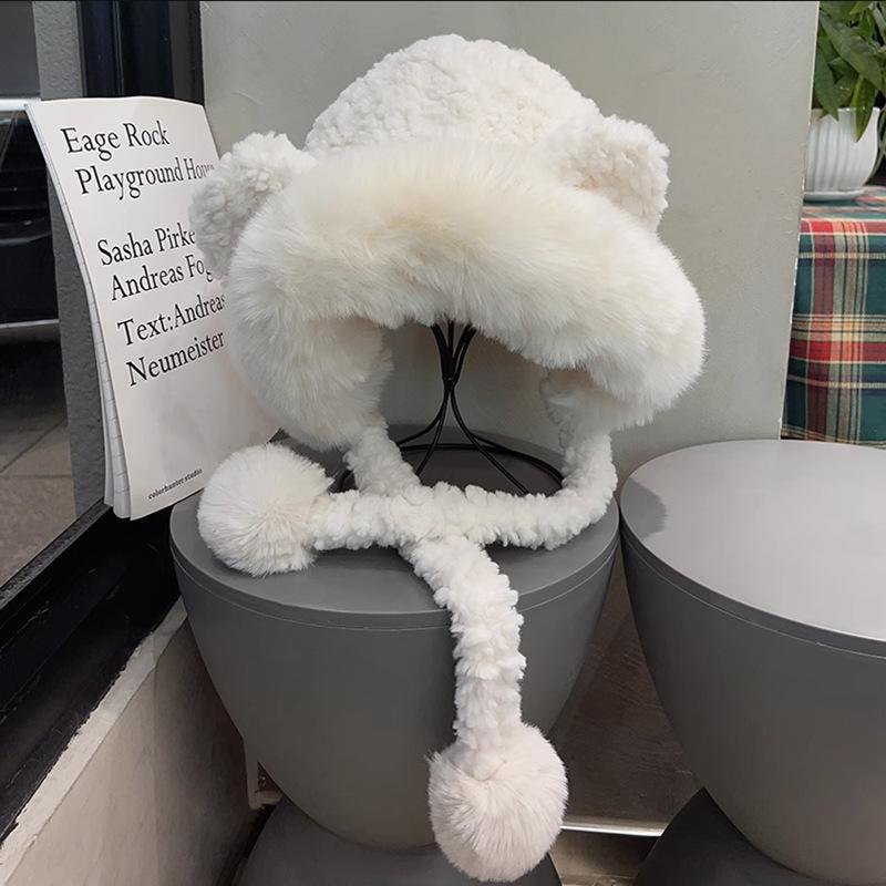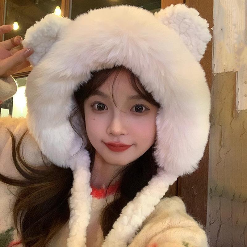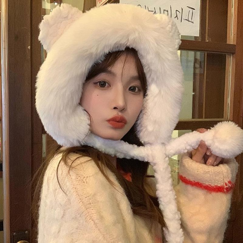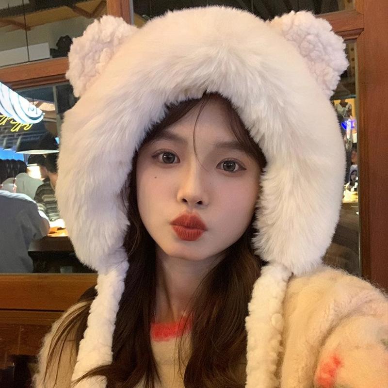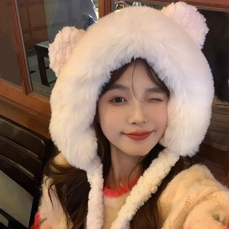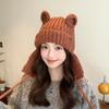 Corea del Sur Red Sombrero tejido con orejas de oso invierno engrosado cálido sombrero Lei Feng femenino orejeras de felpa sombrero de lana a prueba de frío