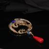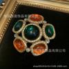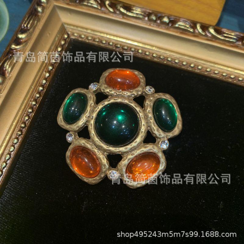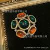 Broche de Cobre Antiguo Occidental Medio con Incrustaciones de Vidrio Rojo Anaranjado Verde Individualidad
