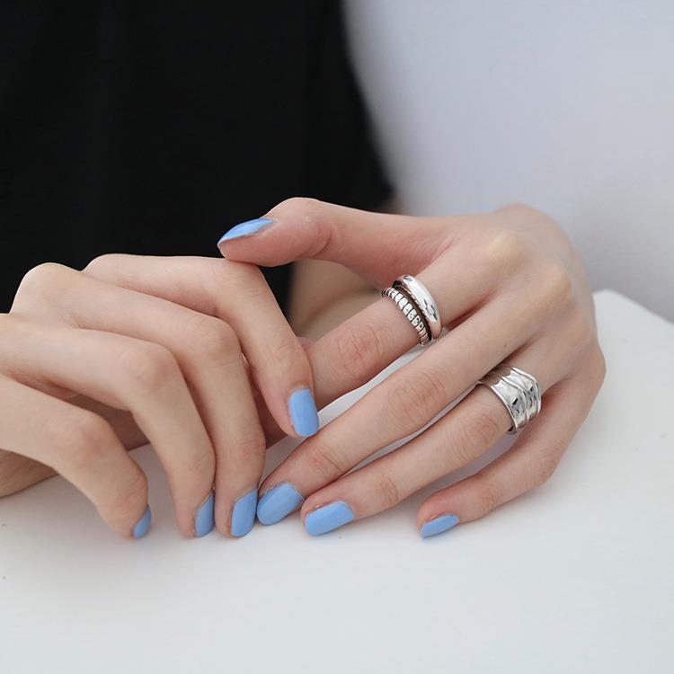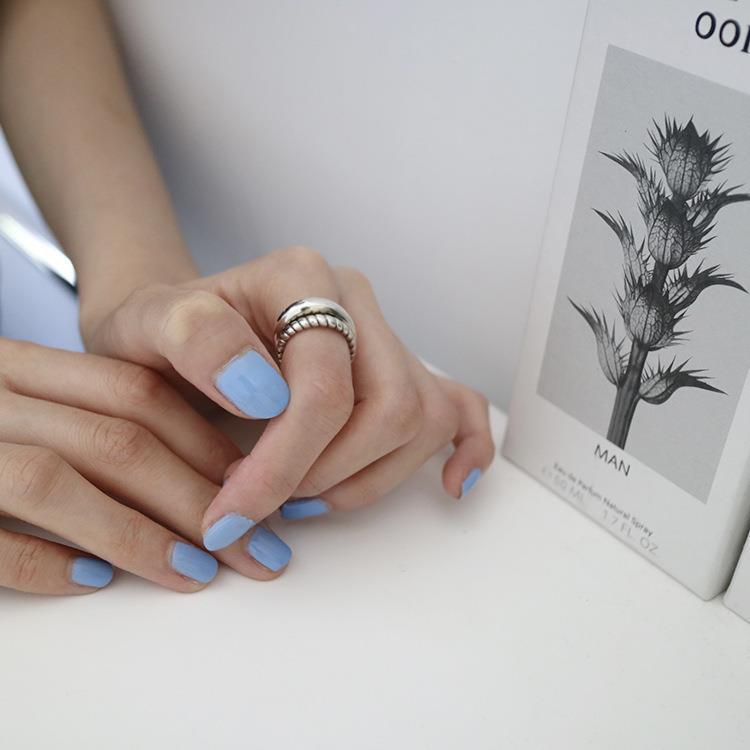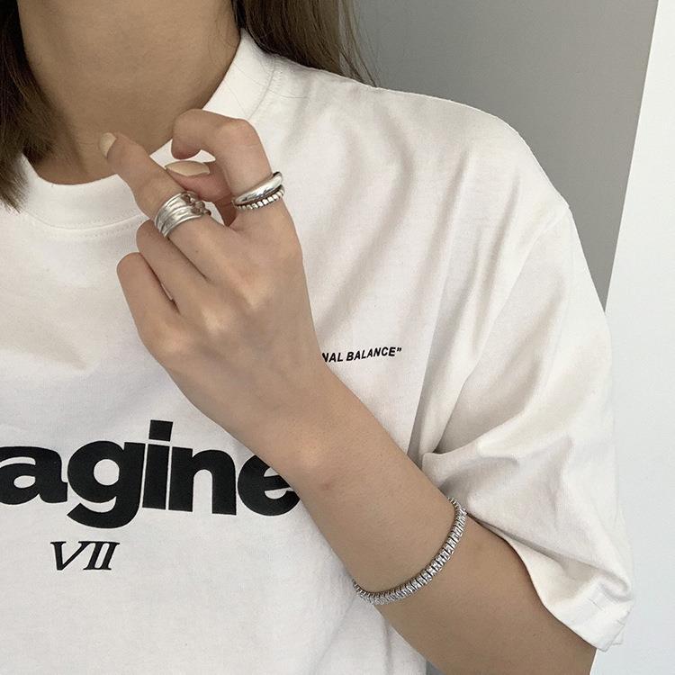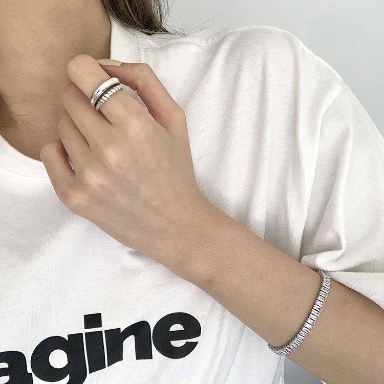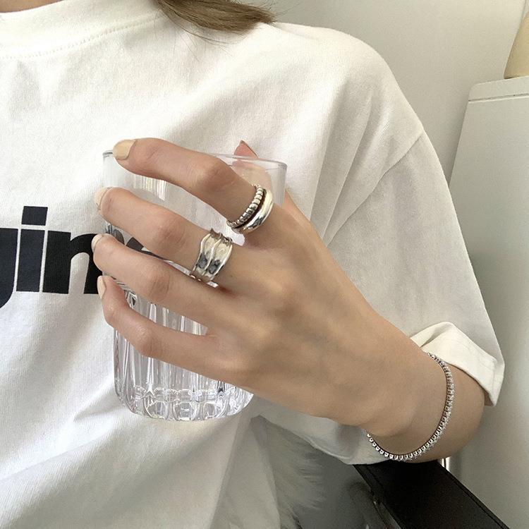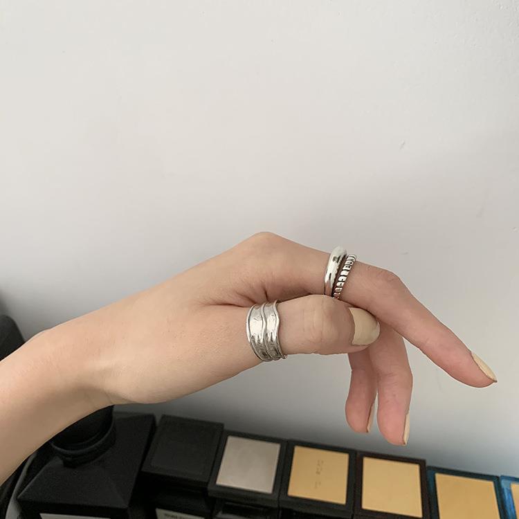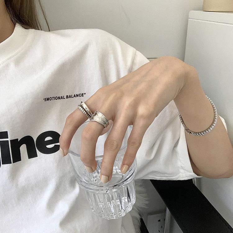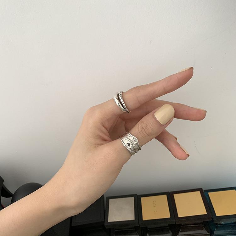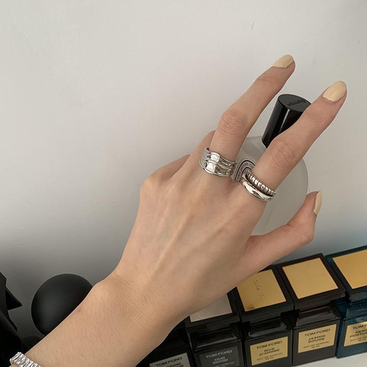 Anillo de doble capa con giro geométrico para mujer, estilo retro, de plata S925, con abertura irregular, estilo hip hop punk, para comer en los dedos.