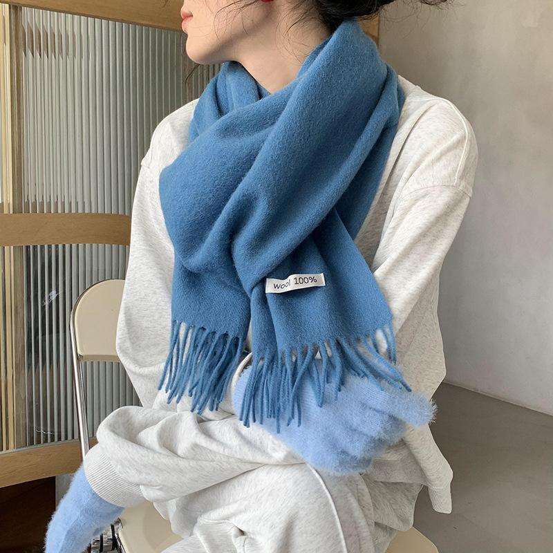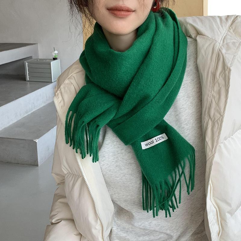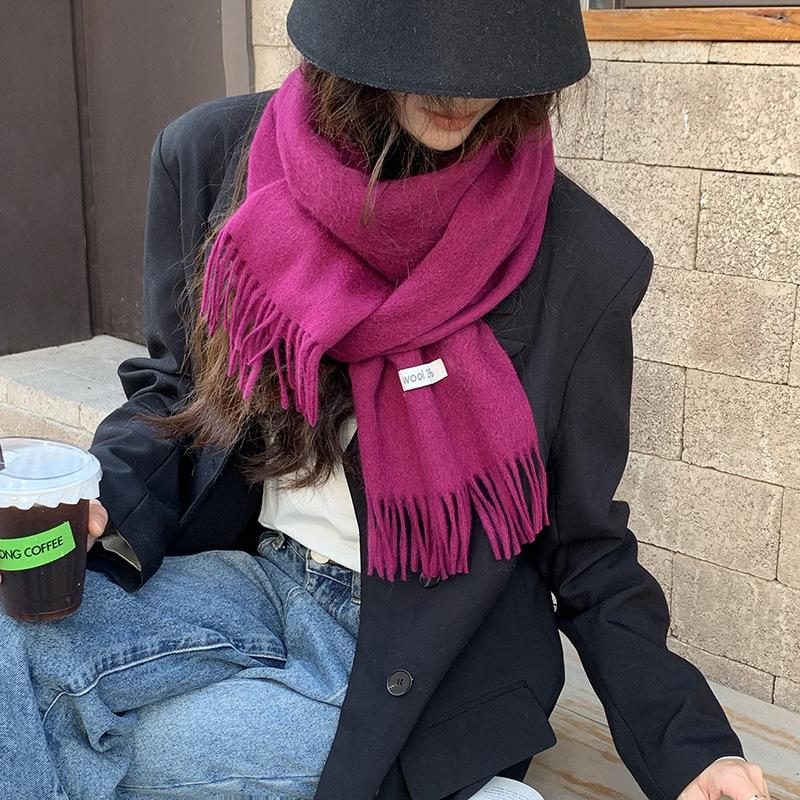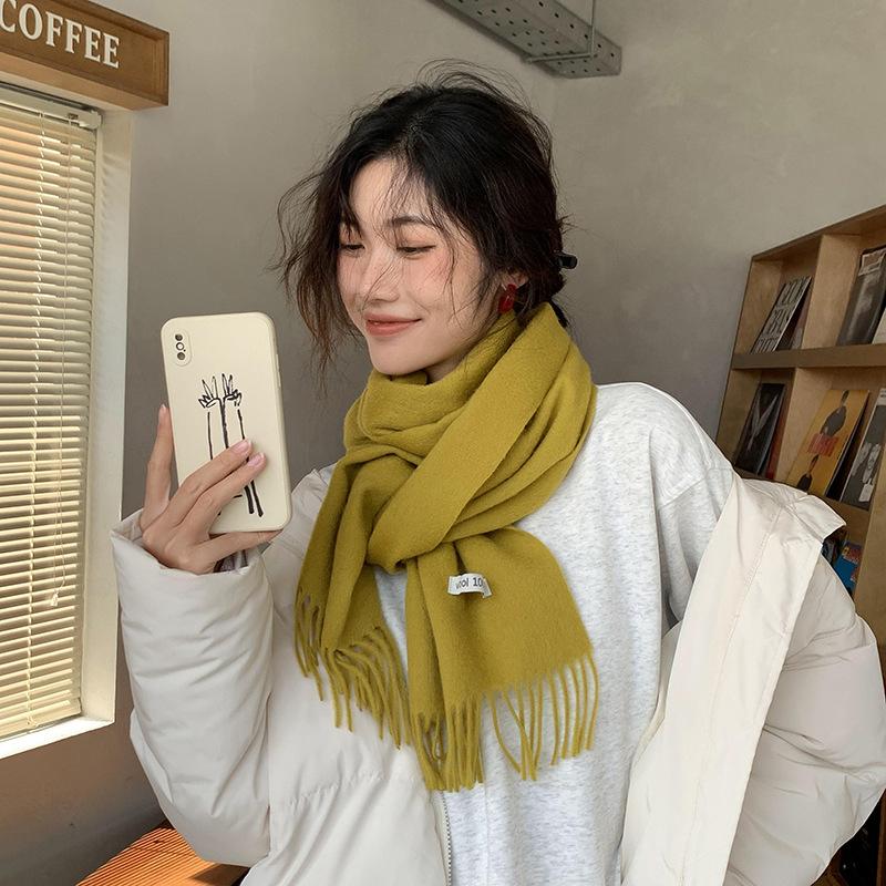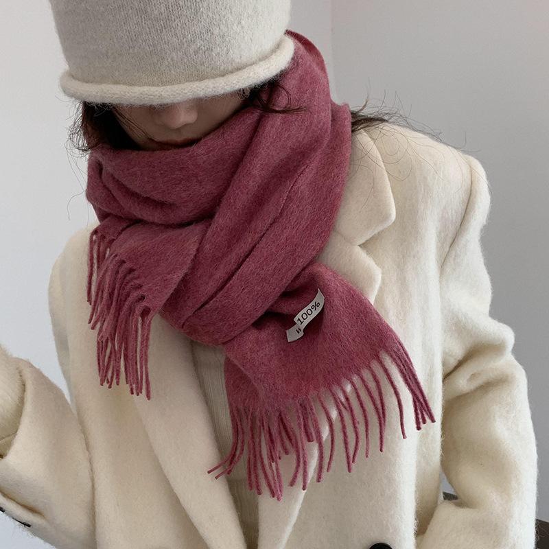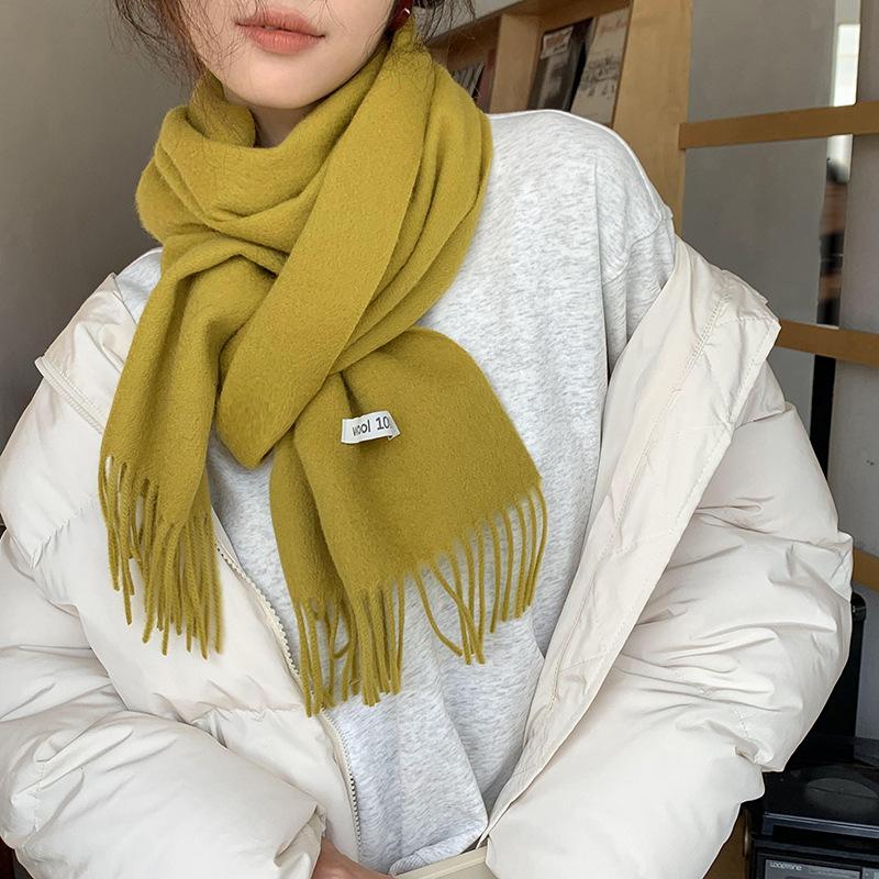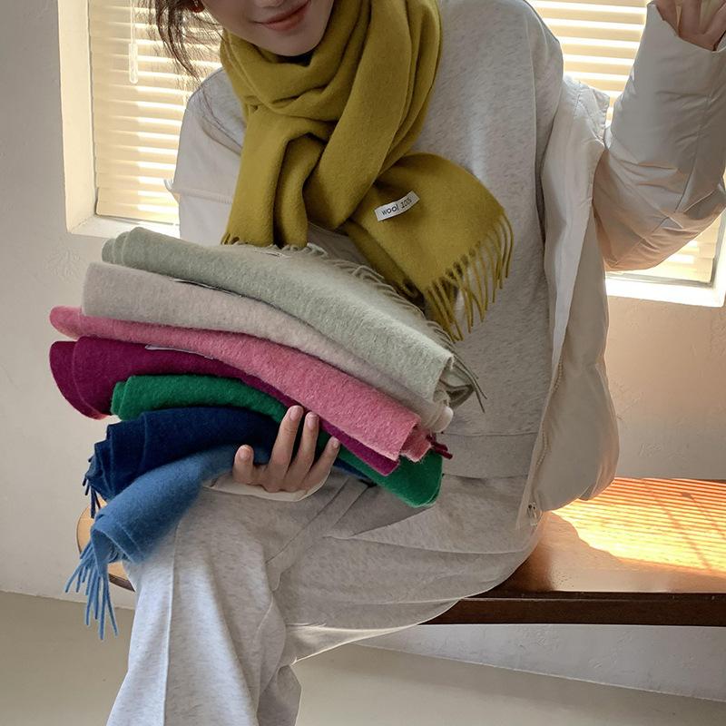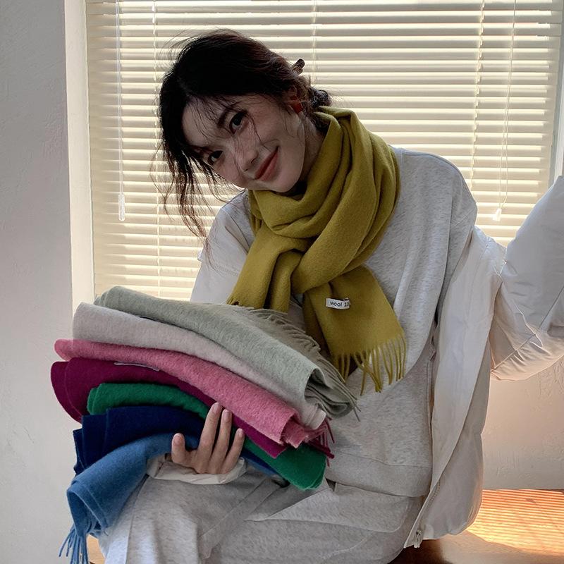 Bufanda de lana al por mayor, bufanda de color liso para mujer, combina con todo, bufanda de otoño e invierno, chal grueso y cálido, bufanda lisa con borlas para hombre