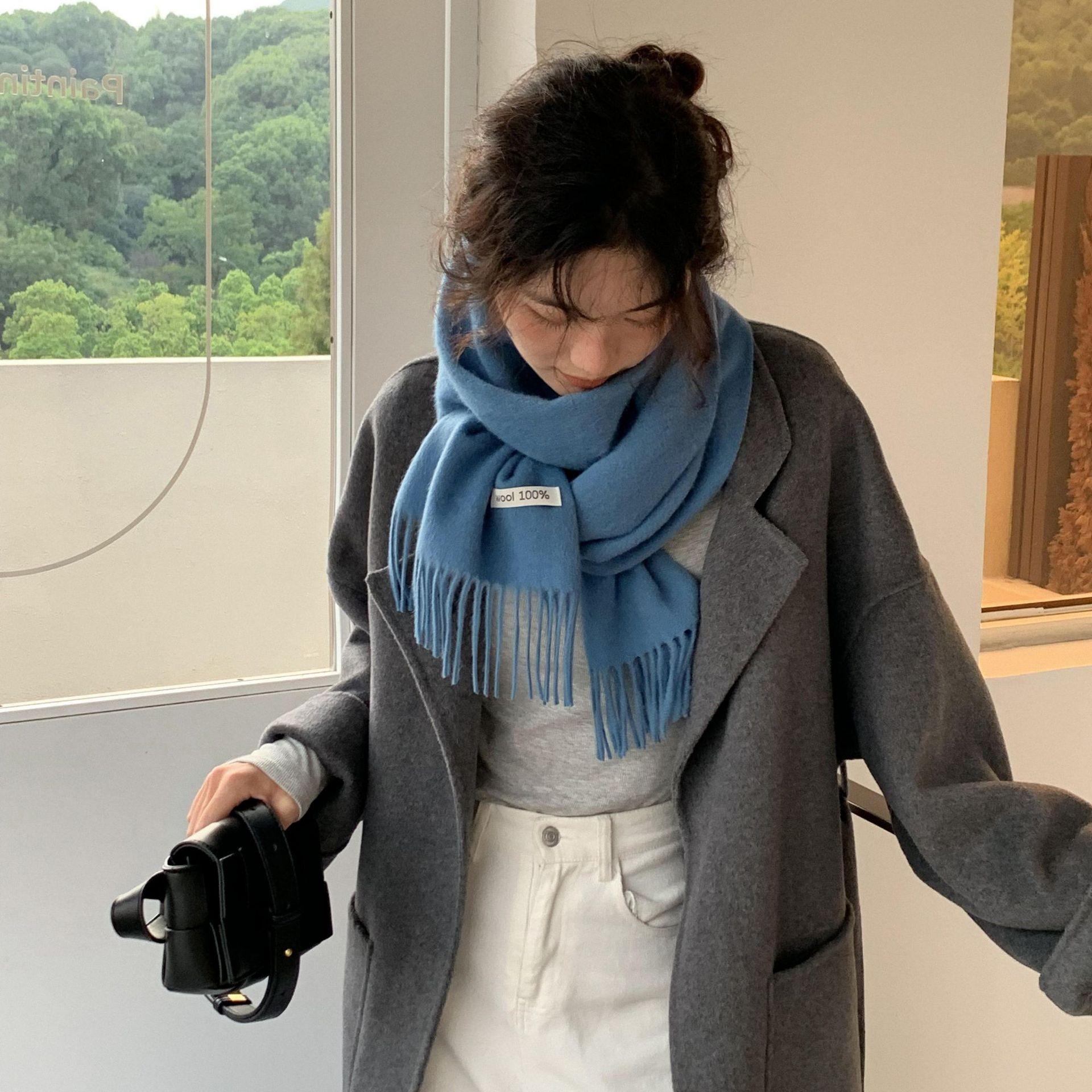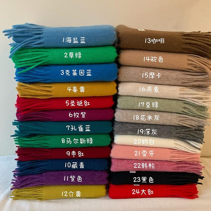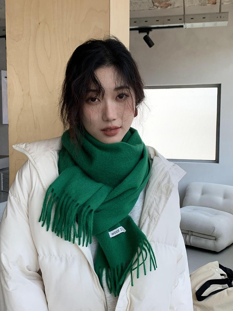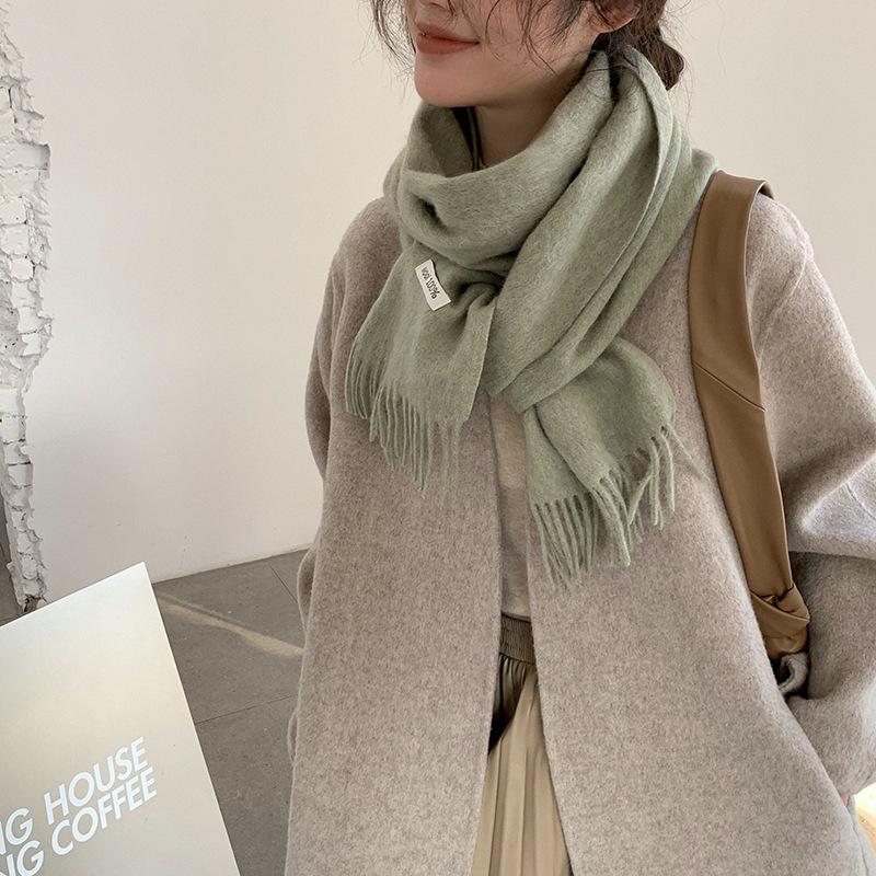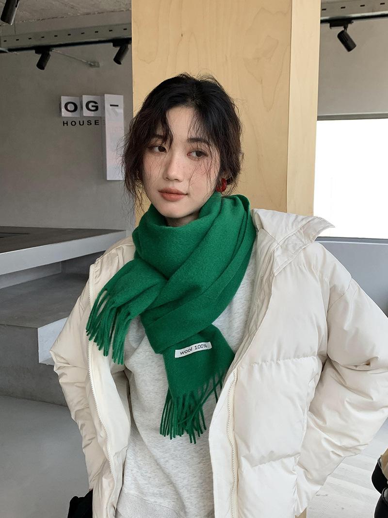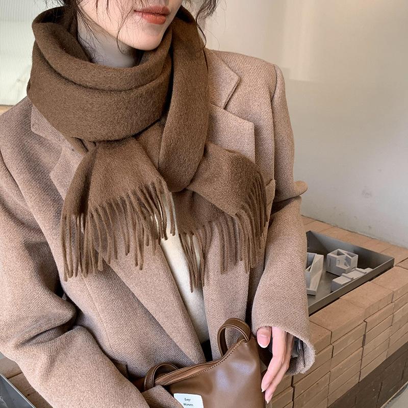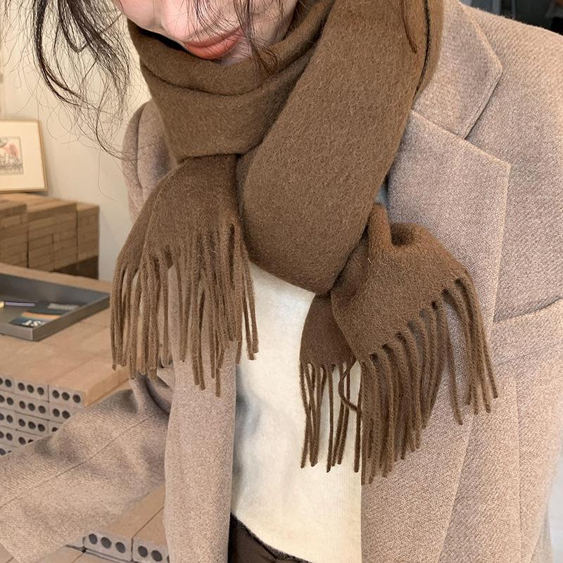 Bufanda de lana al por mayor, bufanda de color liso para mujer, combina con todo, bufanda de otoño e invierno, chal grueso y cálido, bufanda lisa con borlas para hombre