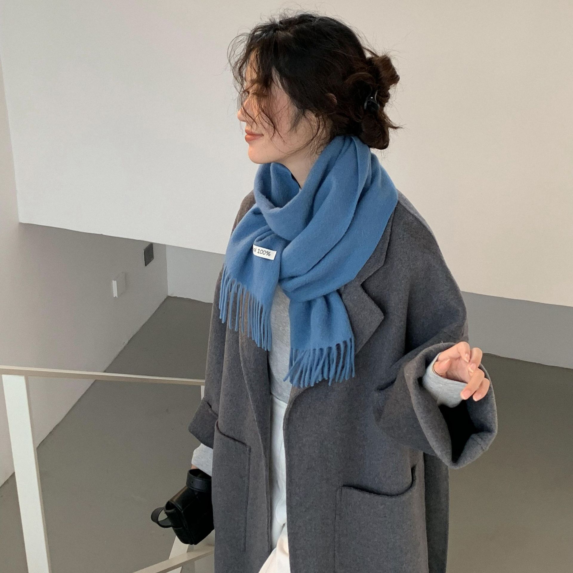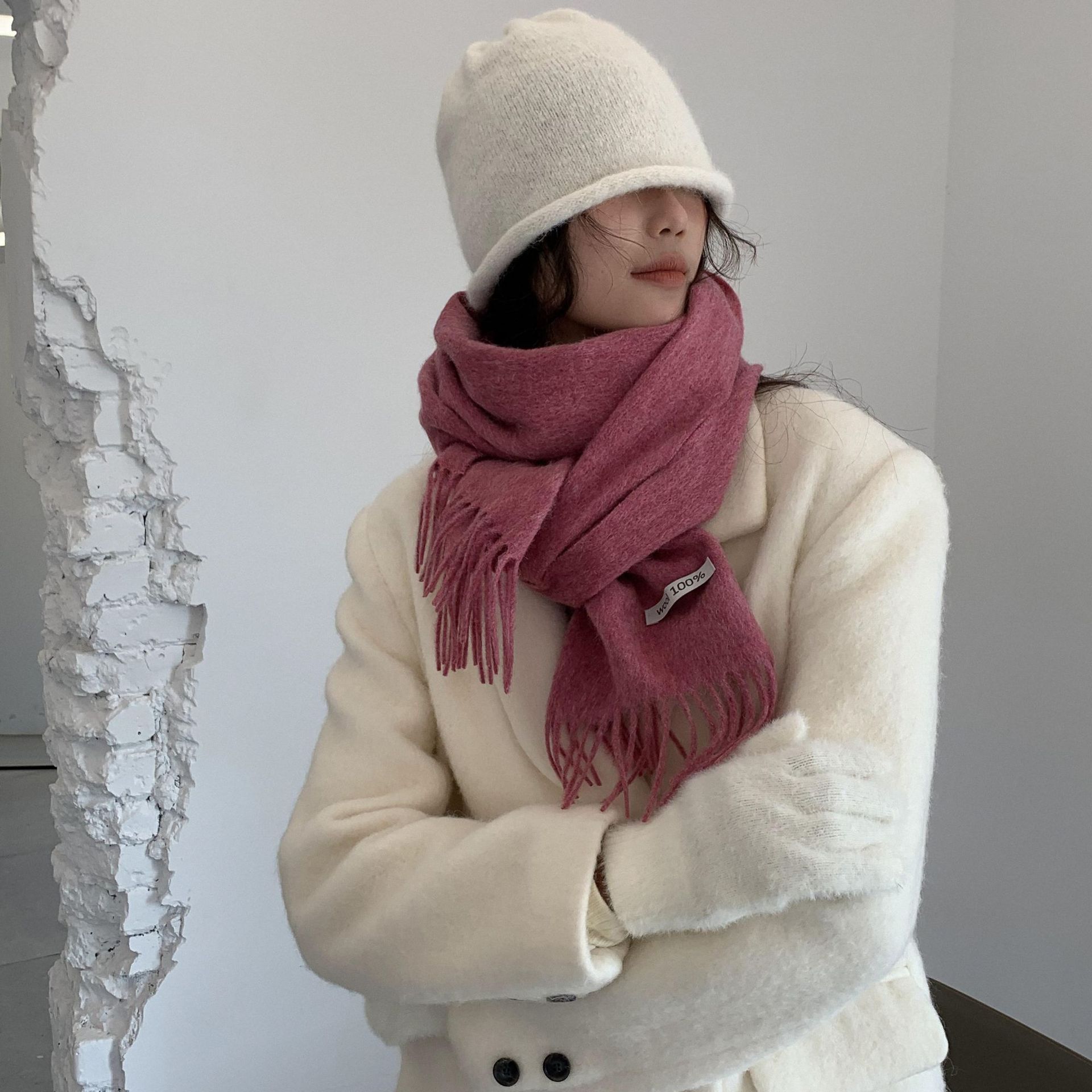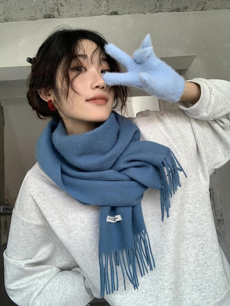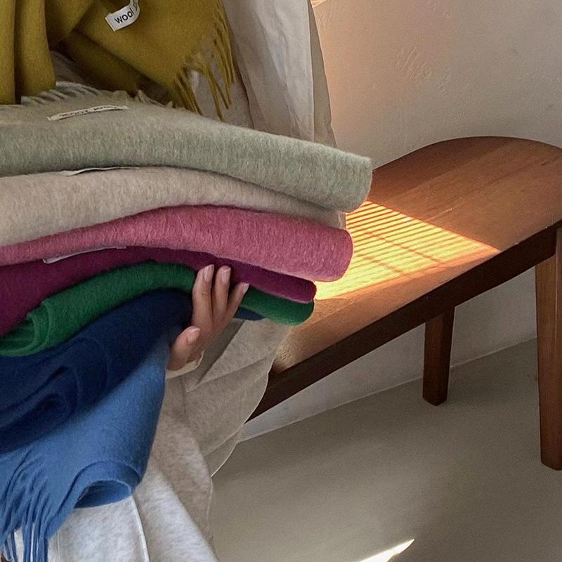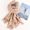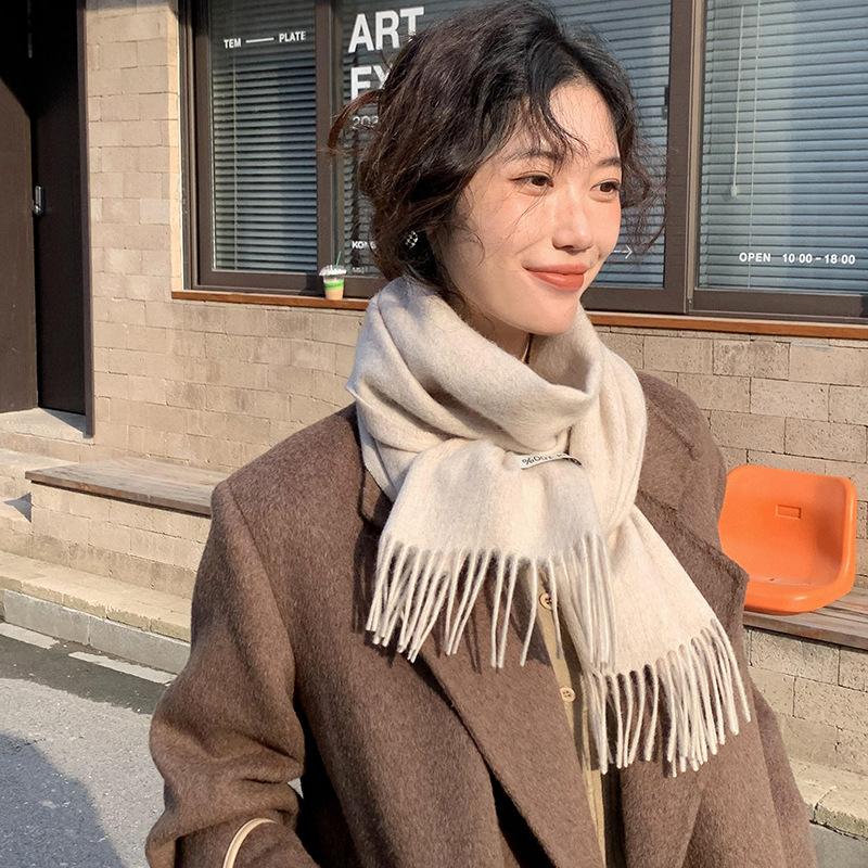 Bufanda de lana al por mayor, bufanda de color liso para mujer, combina con todo, bufanda de otoño e invierno, chal grueso y cálido, bufanda lisa con borlas para hombre