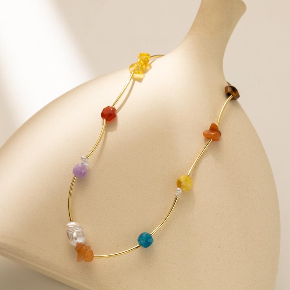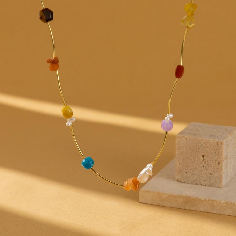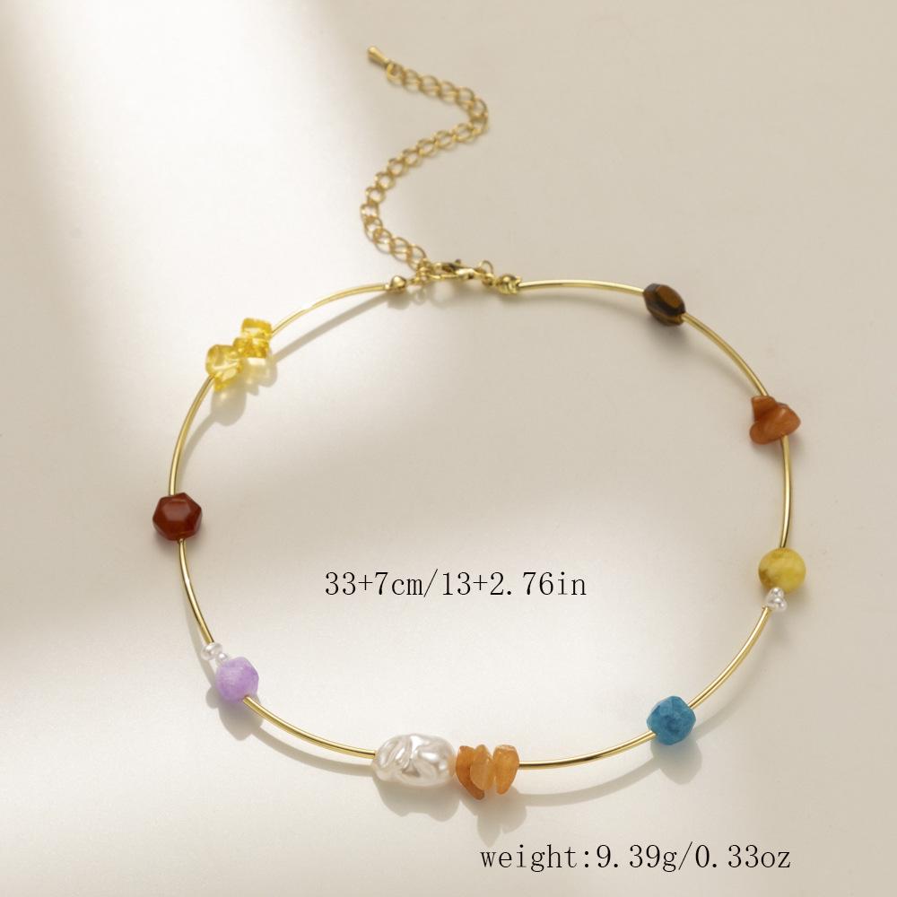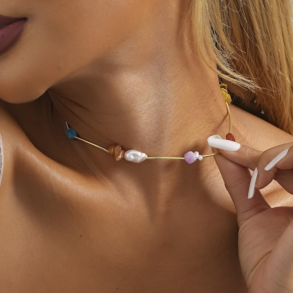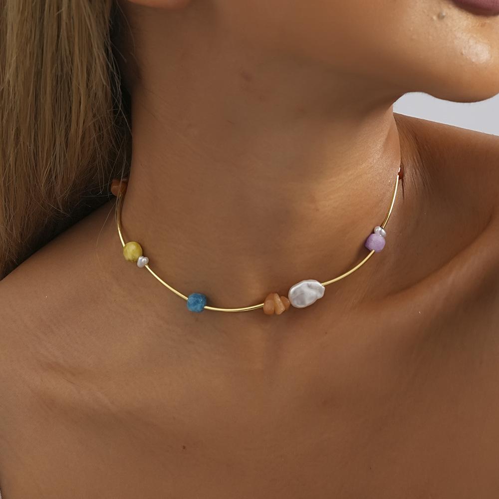 Moda Transfronteriza Europea y Americana Nuevo Collar Versátil de Piedra Natural Colorida Imitación de Perla Simple Collar de Estilo Callejero para Mujer