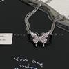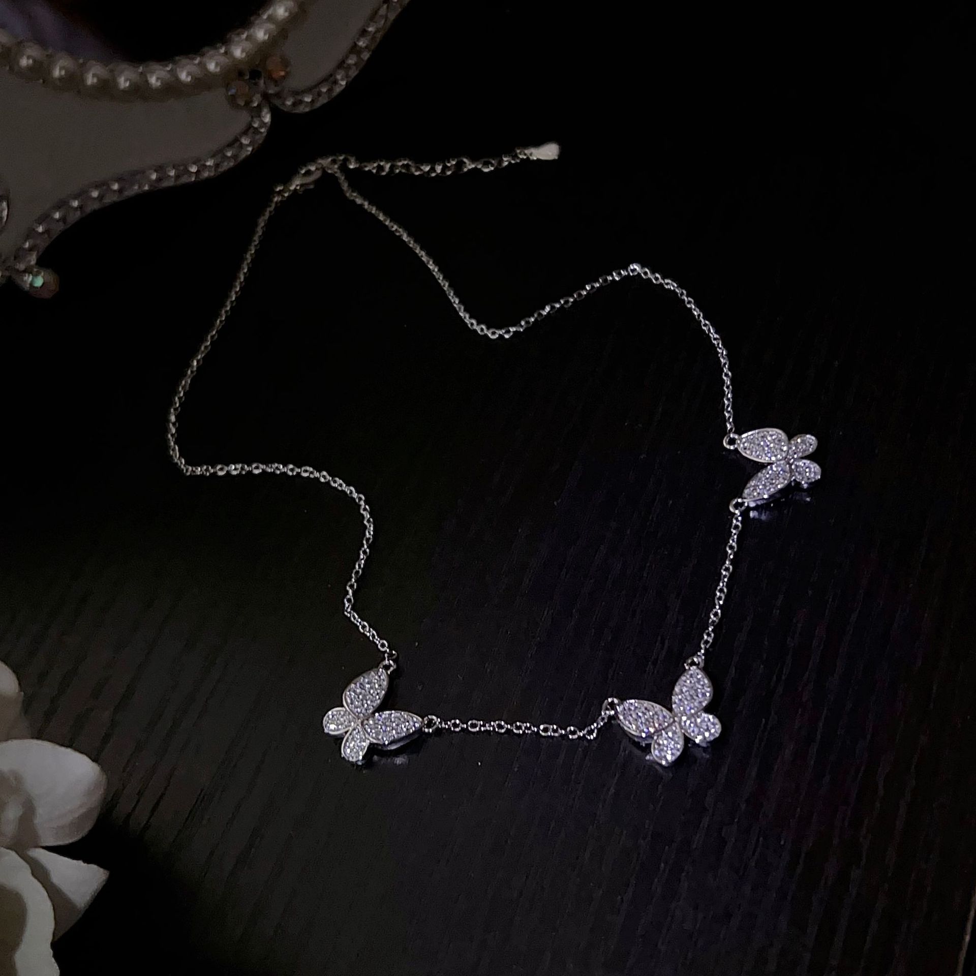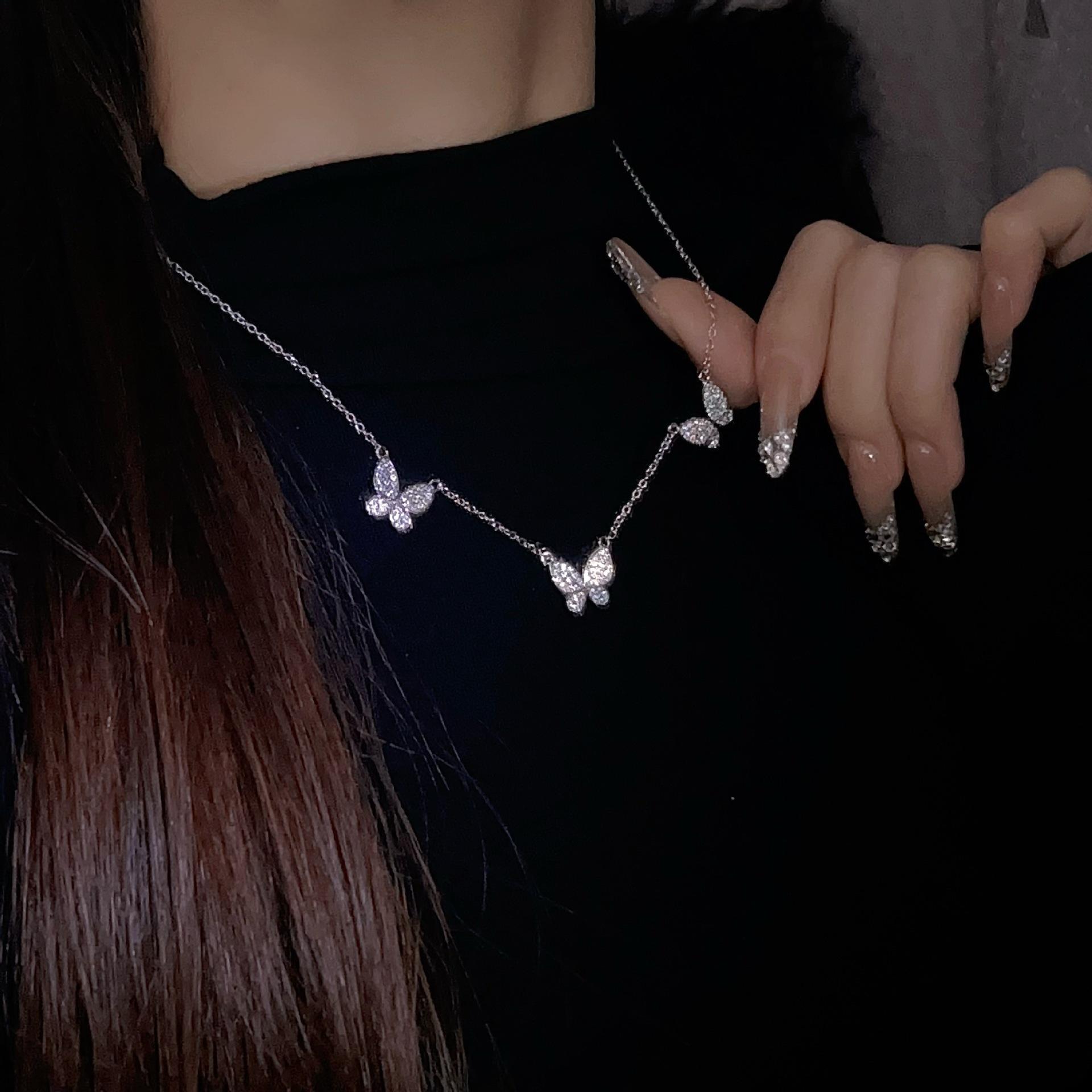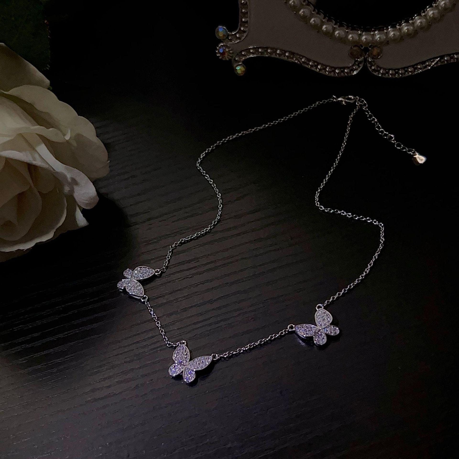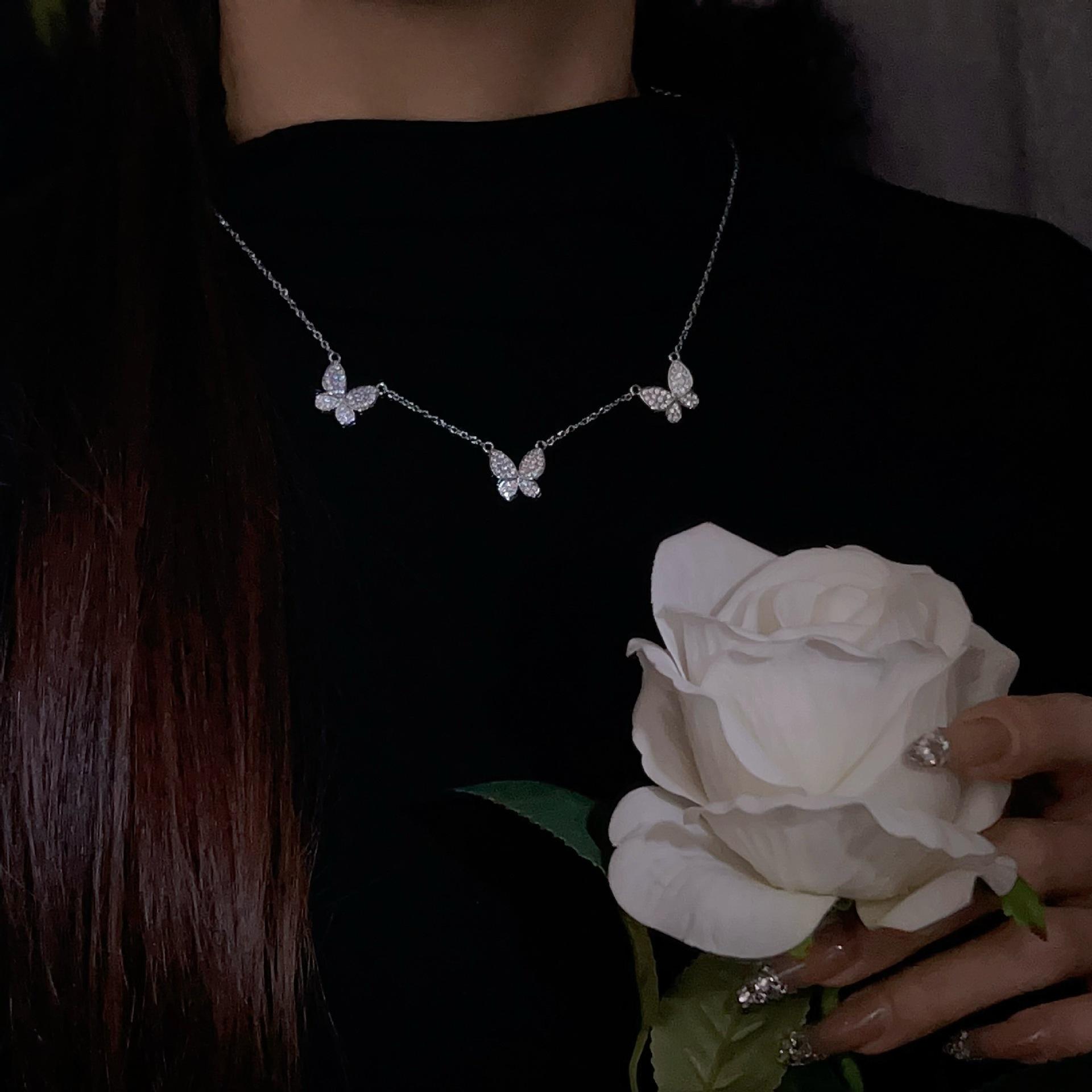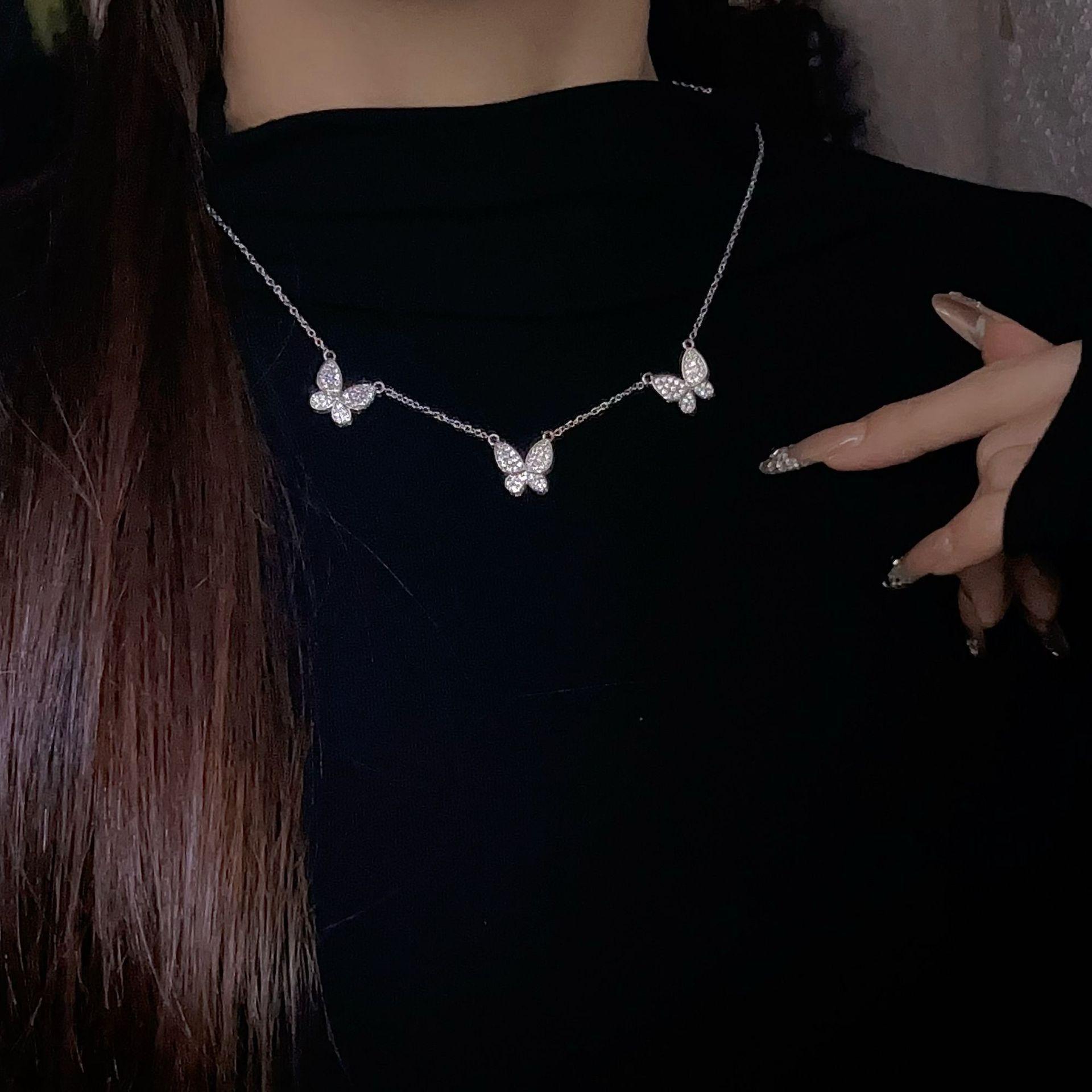 Lindo collar de tres mariposas para niña, diseño de nicho femenino europeo y americano, simple, ligero, de lujo, con cadena de clavícula y mariposa de diamantes.