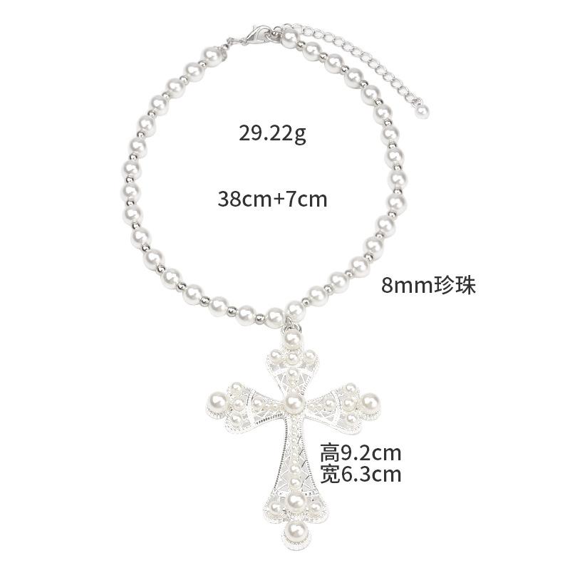 Collar de perlas de gran venta transfronteriza europea y americana, personalizado, dulce, fresco, estilo oscuro, colgante de cruz, collar de cadena de clavícula