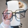 Gafas para miopía con protección contra la luz azul, de color rojo y marrón, sencillas y de aspecto elegante, estilo de celebridades de Internet, montura de media montura para mujer, venta al por mayor