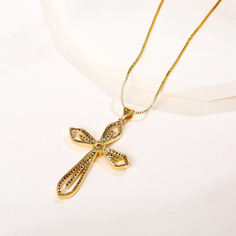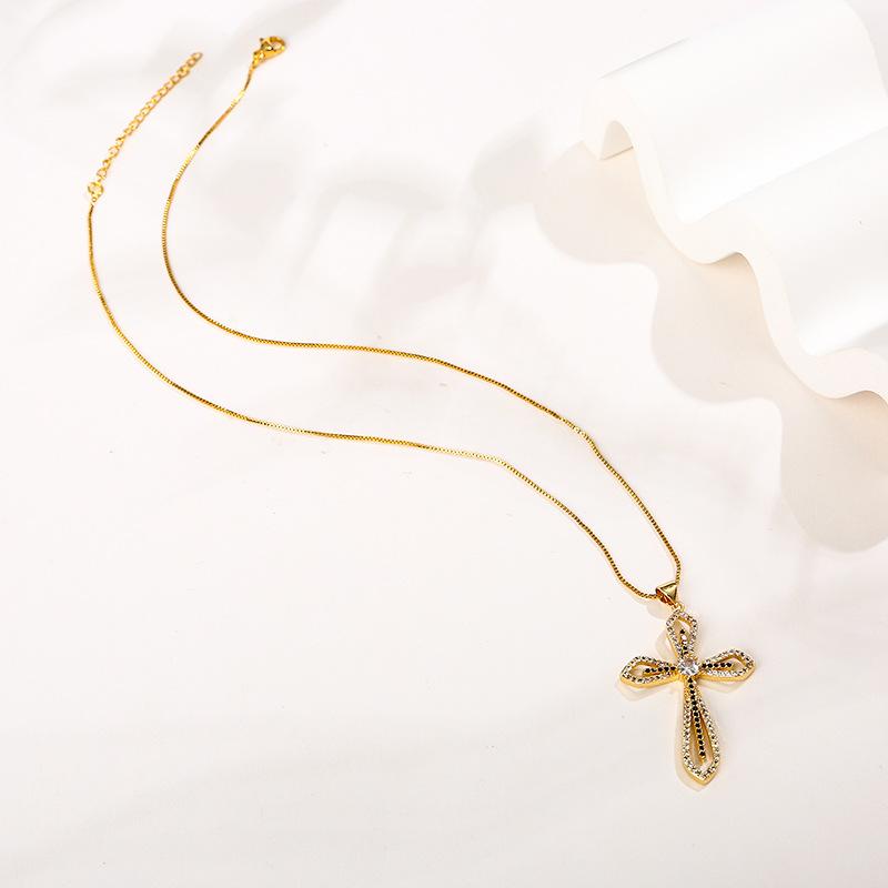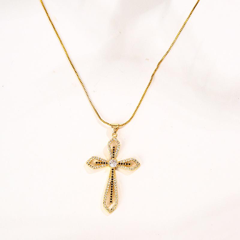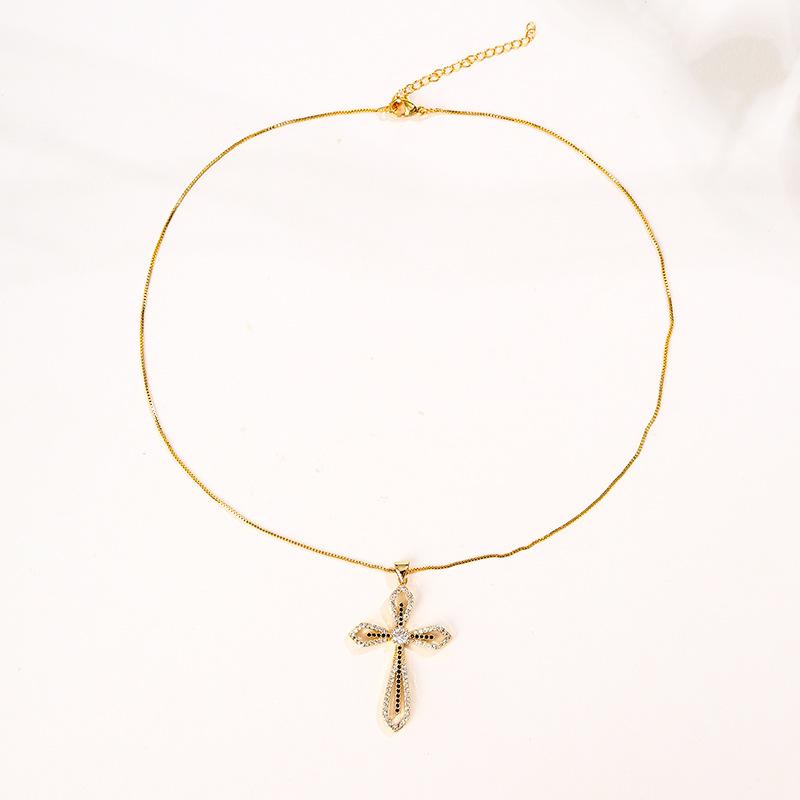 Nuevo collar sencillo con colgante de cruz de circonita con microincrustaciones y diseño de nicho chapado en oro y cobre, con diseño creativo transfronterizo