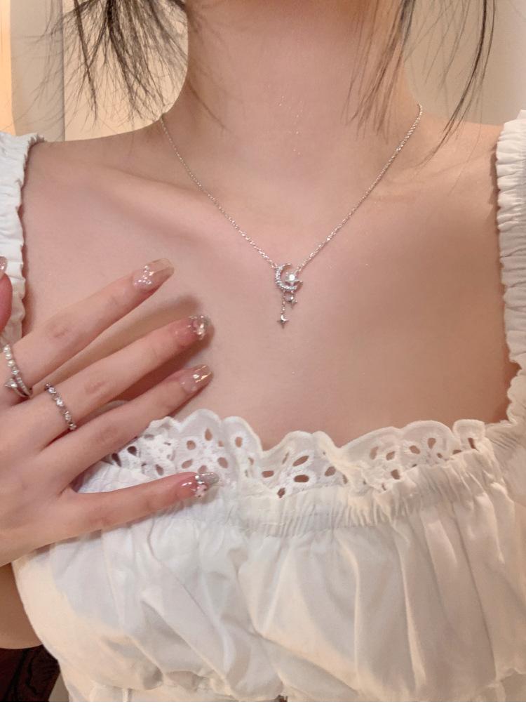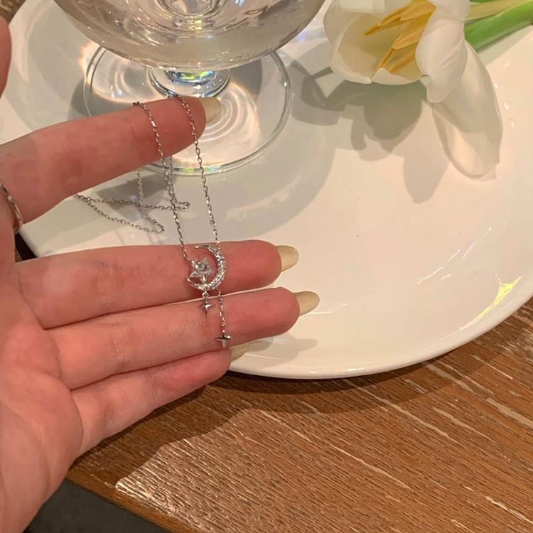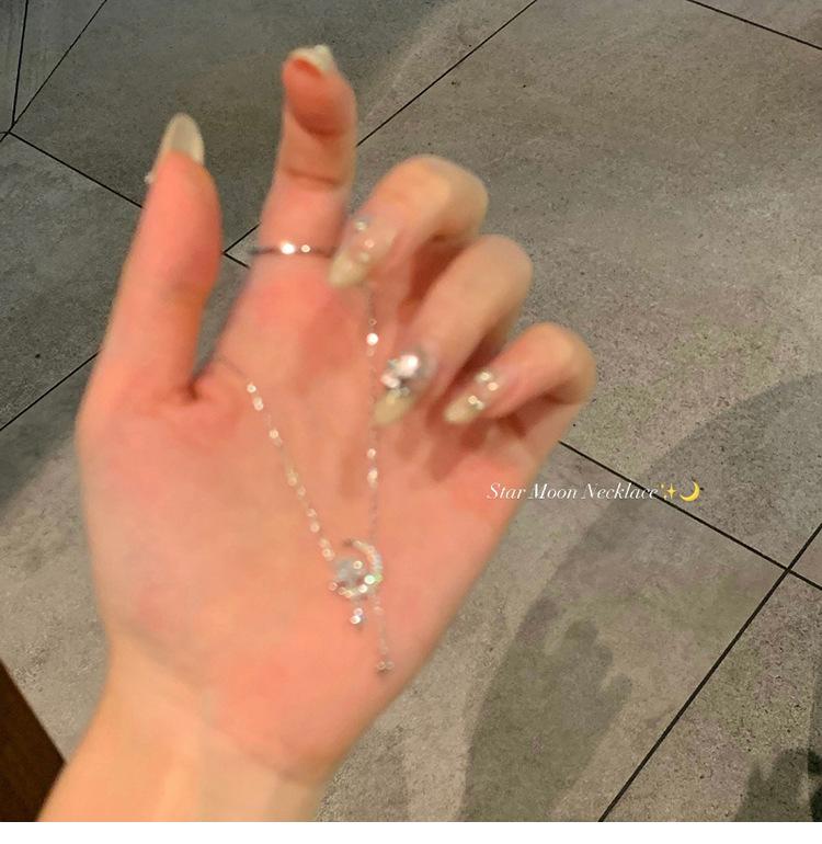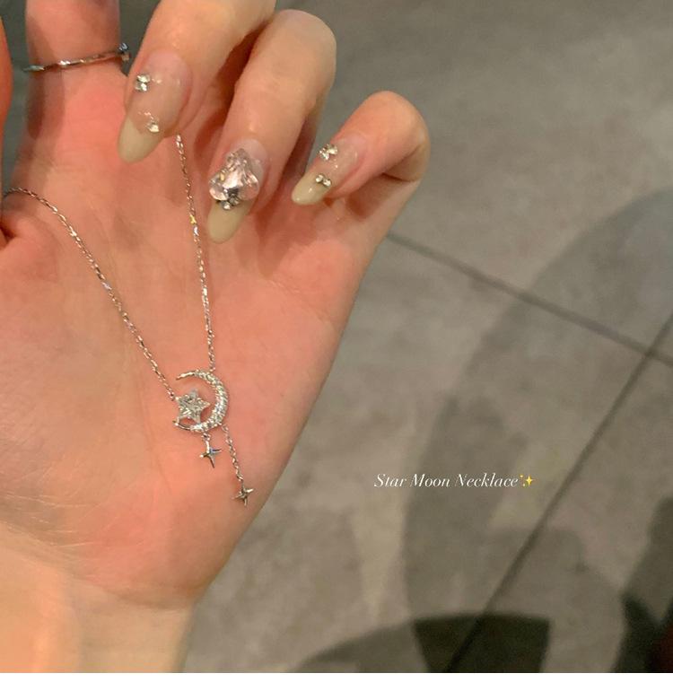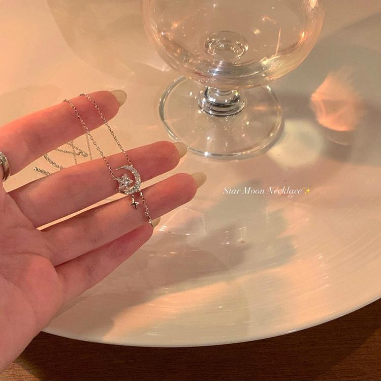 Collar de estrella y luna para mujer, diseño de nicho de lujo ligero, cadena de estrella y luna, colgante de acero inoxidable para uso diario en verano.