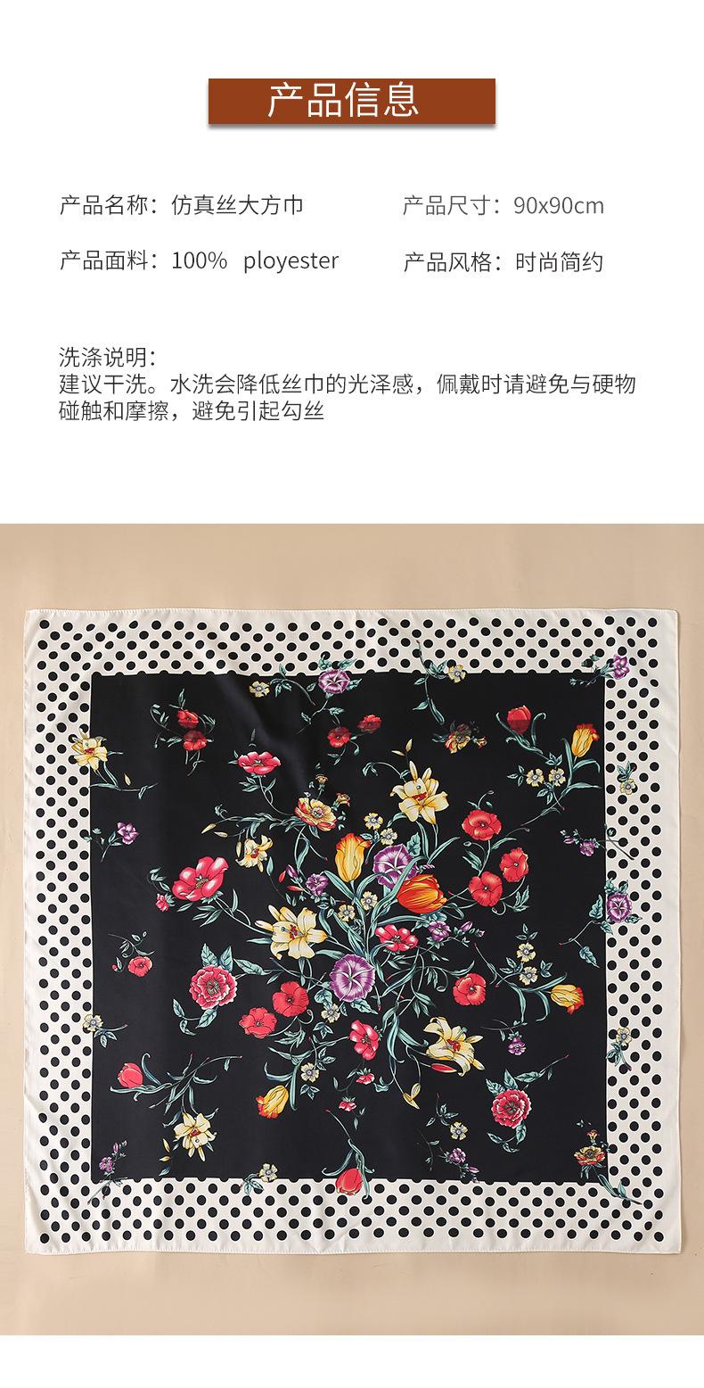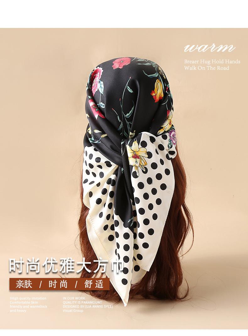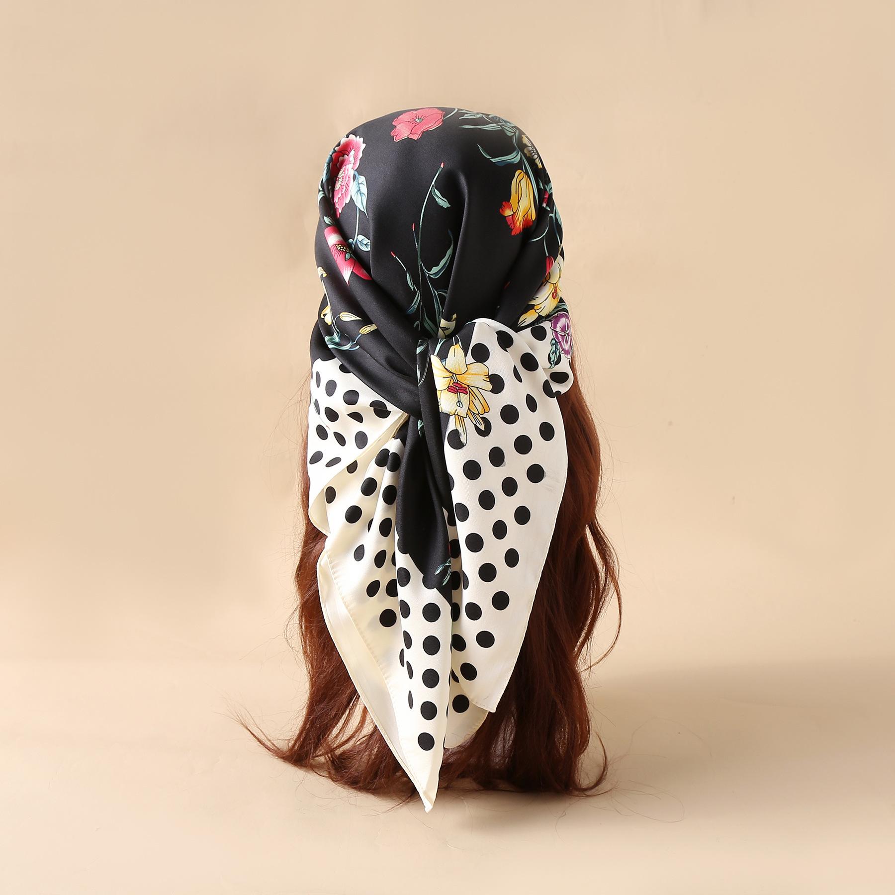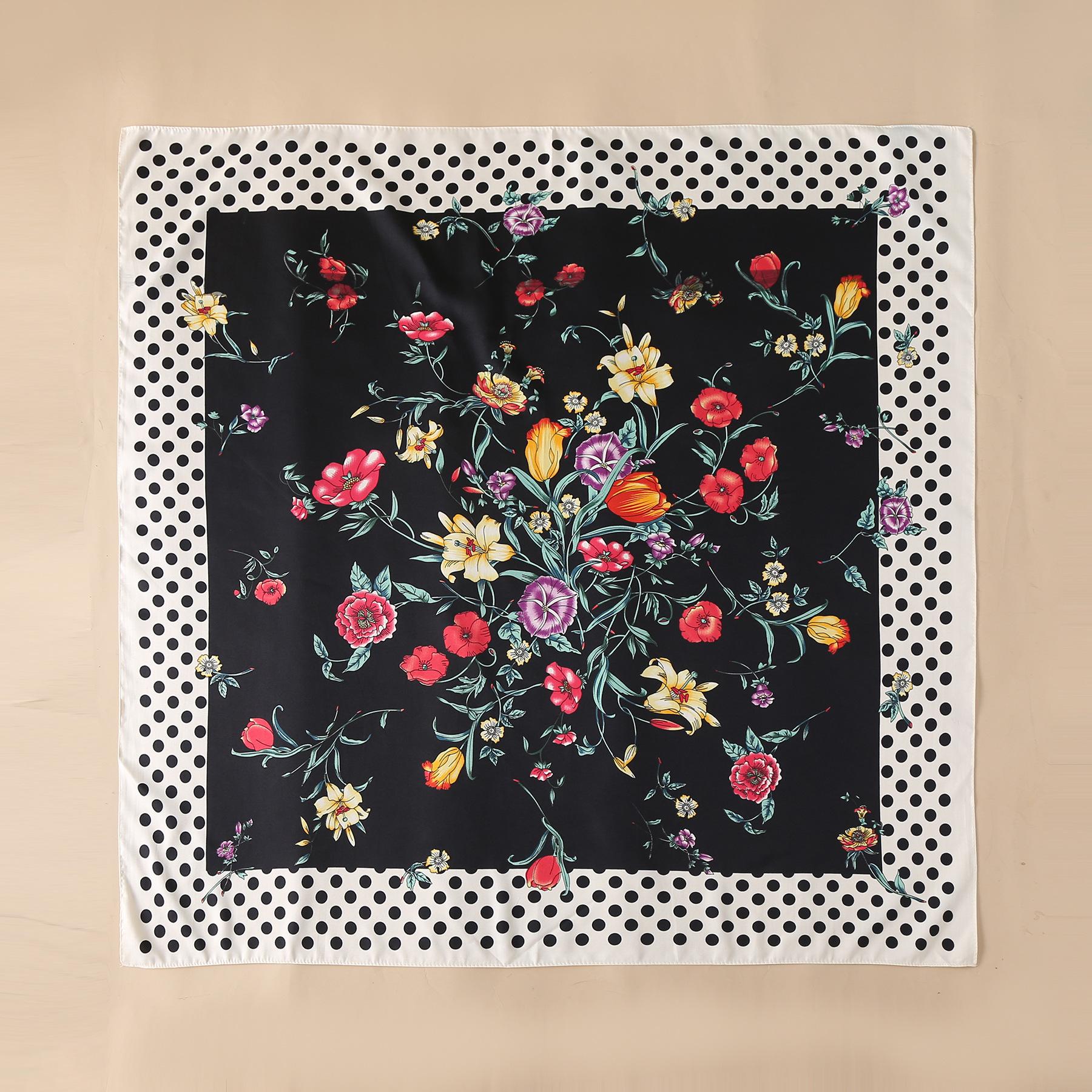 Elegante bufanda cuadrada grande estampada de estilo coreano con lunares blancos y negros, chal de seda artificial, bufanda fina decorativa con foto y protector solar.