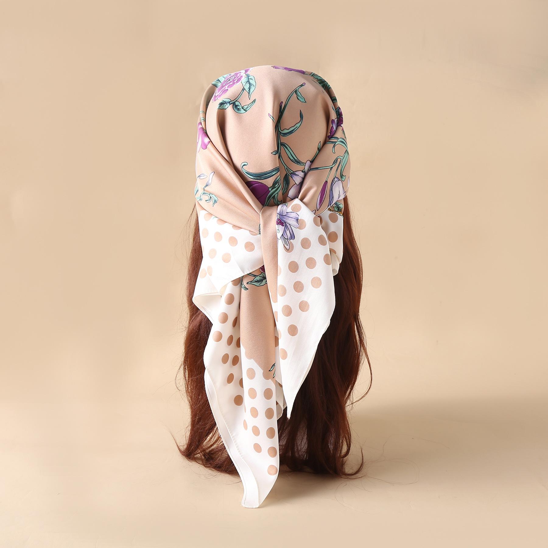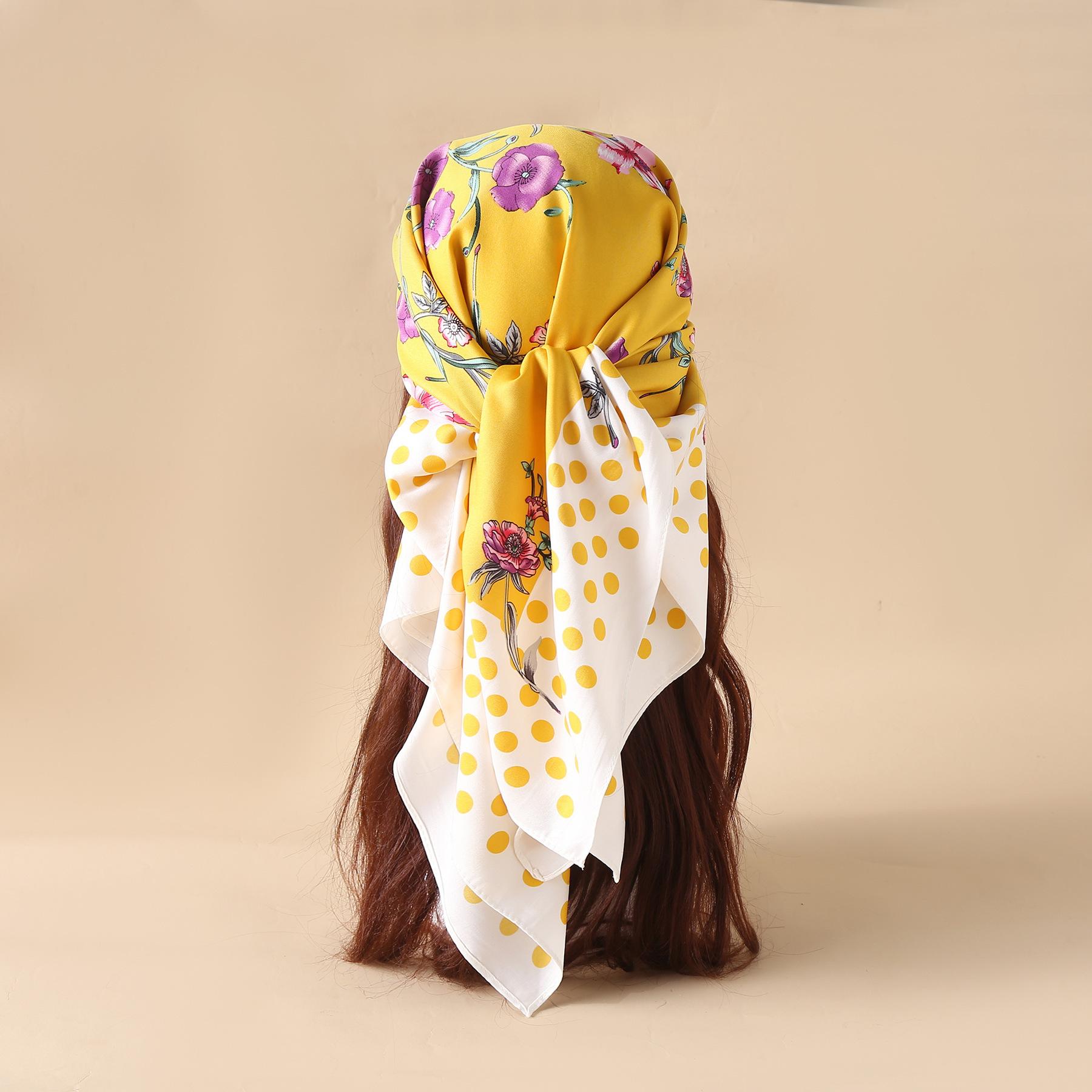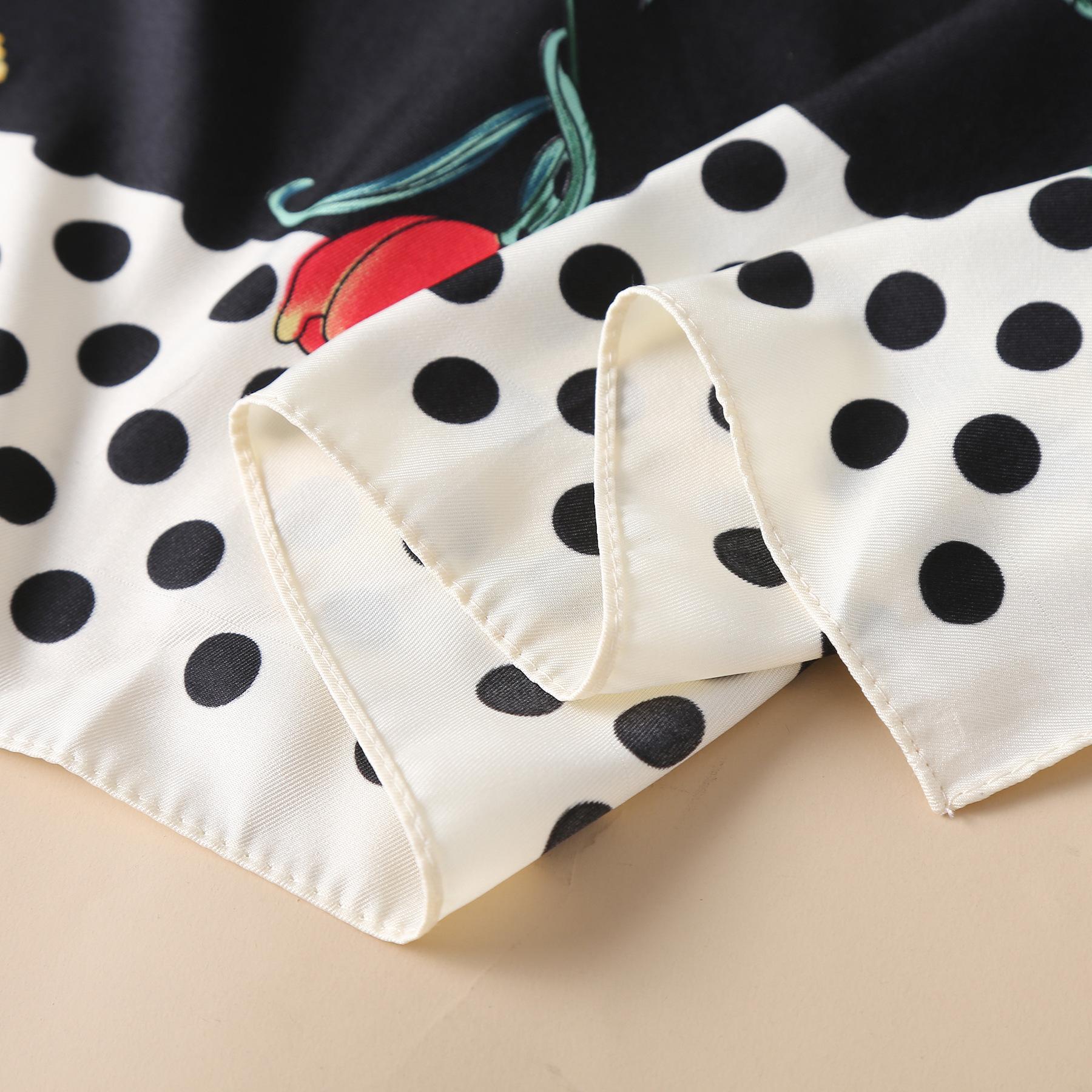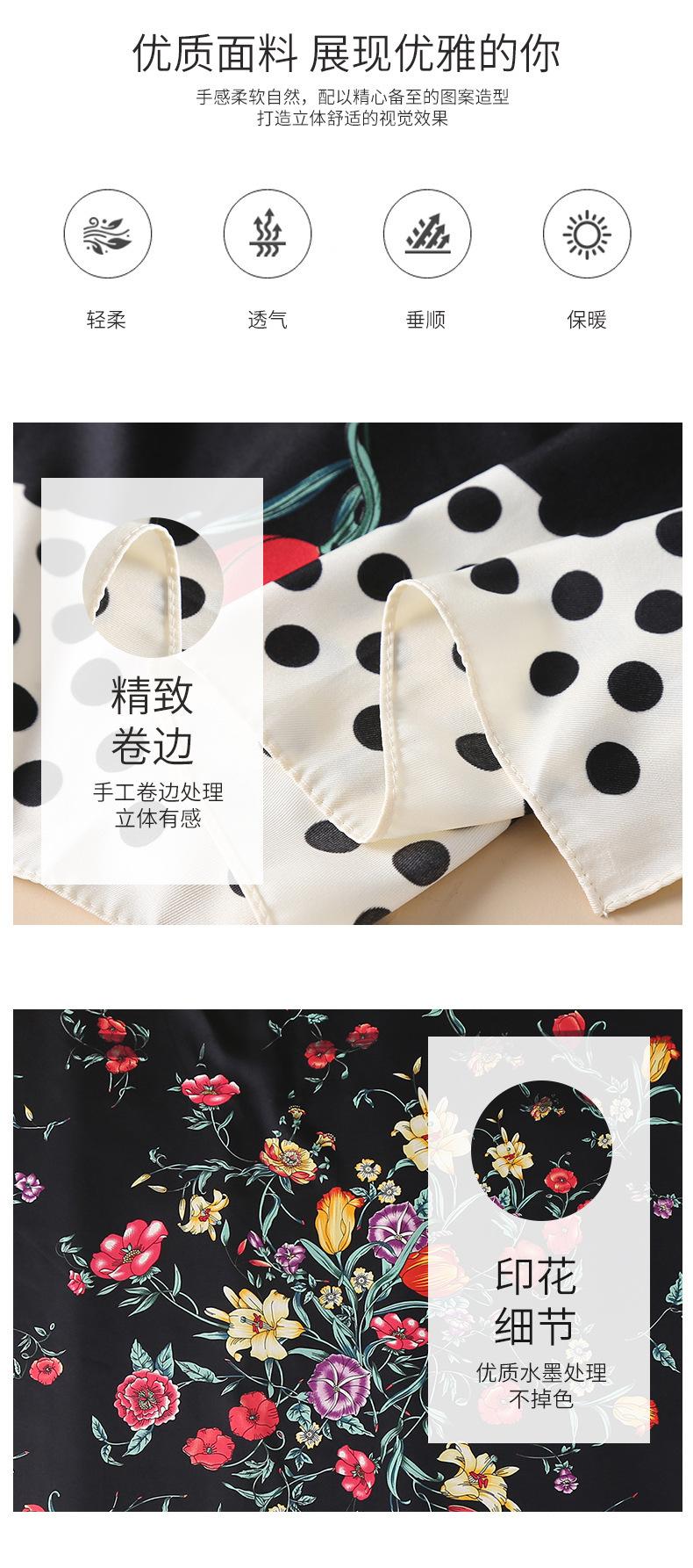 Elegante bufanda cuadrada grande estampada de estilo coreano con lunares blancos y negros, chal de seda artificial, bufanda fina decorativa con foto y protector solar.