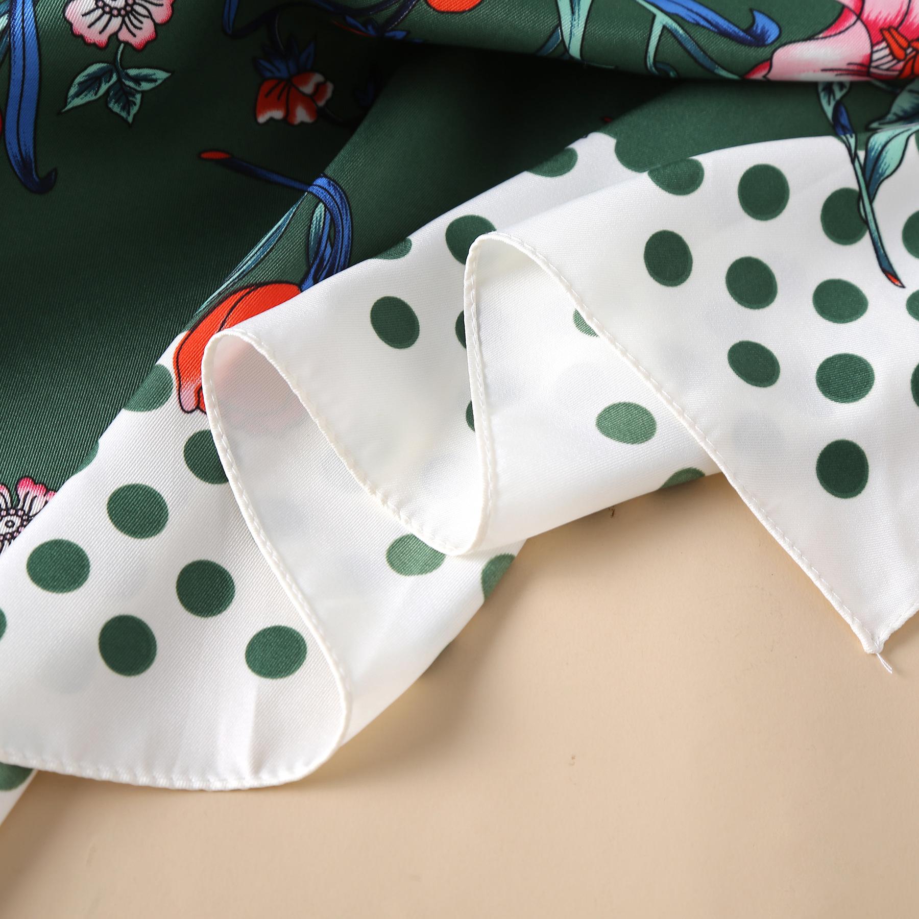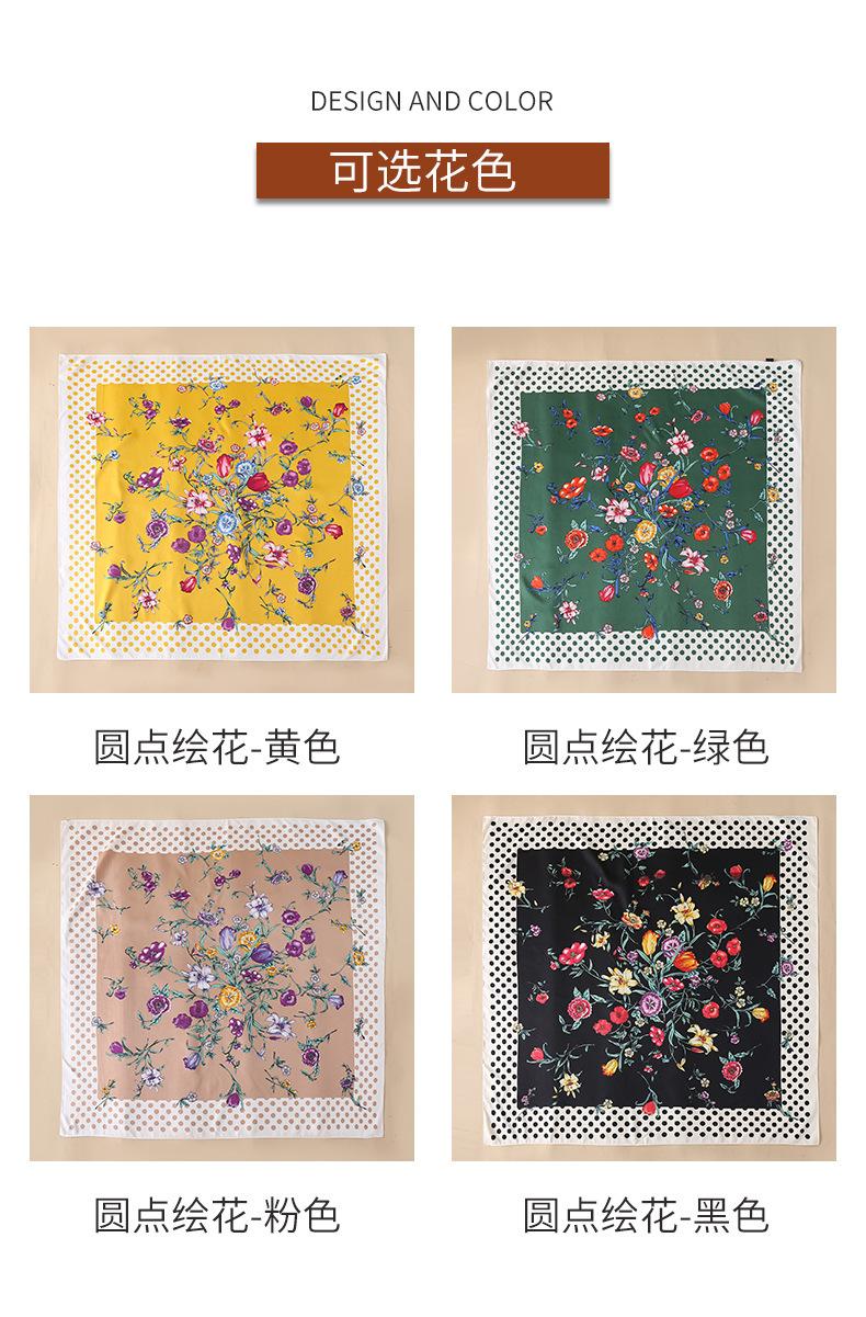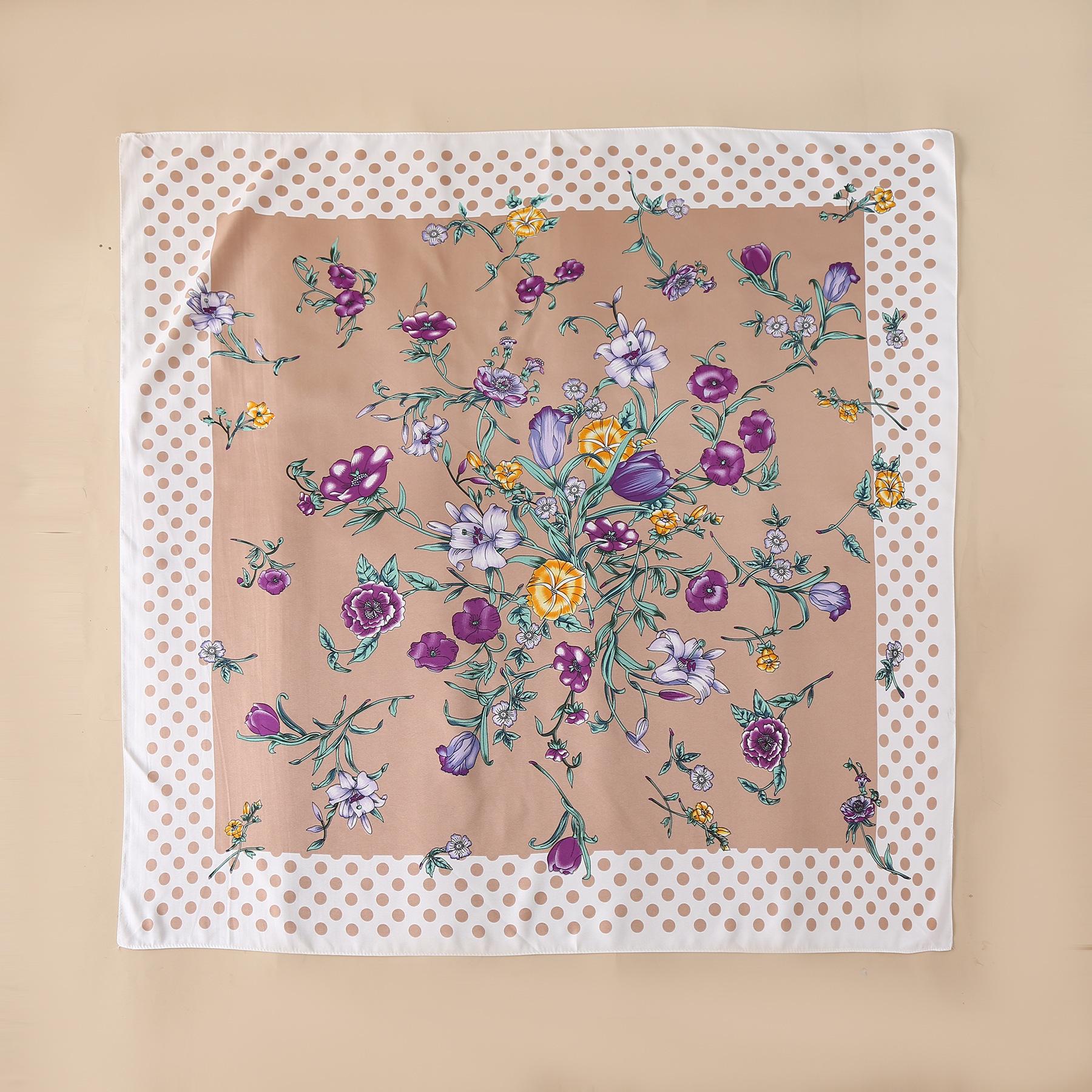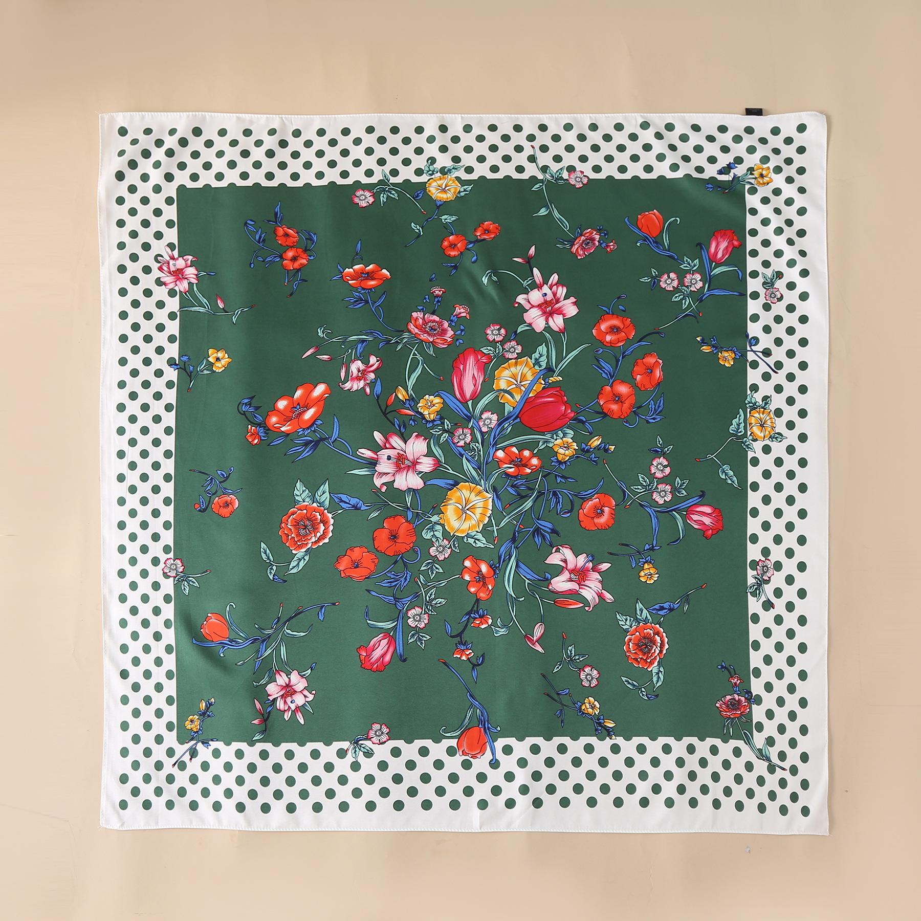 Elegante bufanda cuadrada grande estampada de estilo coreano con lunares blancos y negros, chal de seda artificial, bufanda fina decorativa con foto y protector solar.