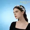 Carlo L5037 - Diadema de novia con flores de perla, tocado de hojas doradas tejido a mano para niña