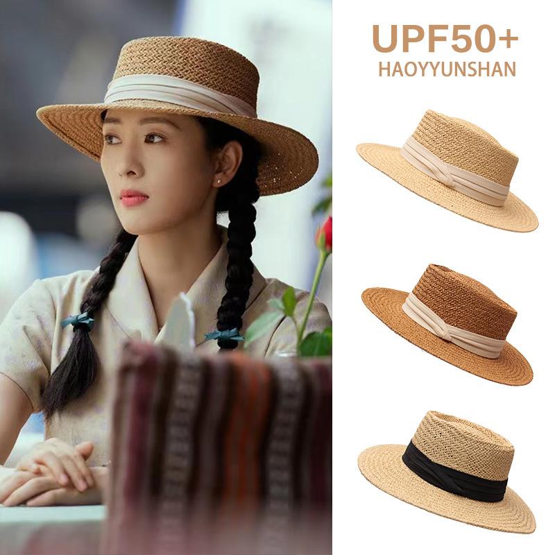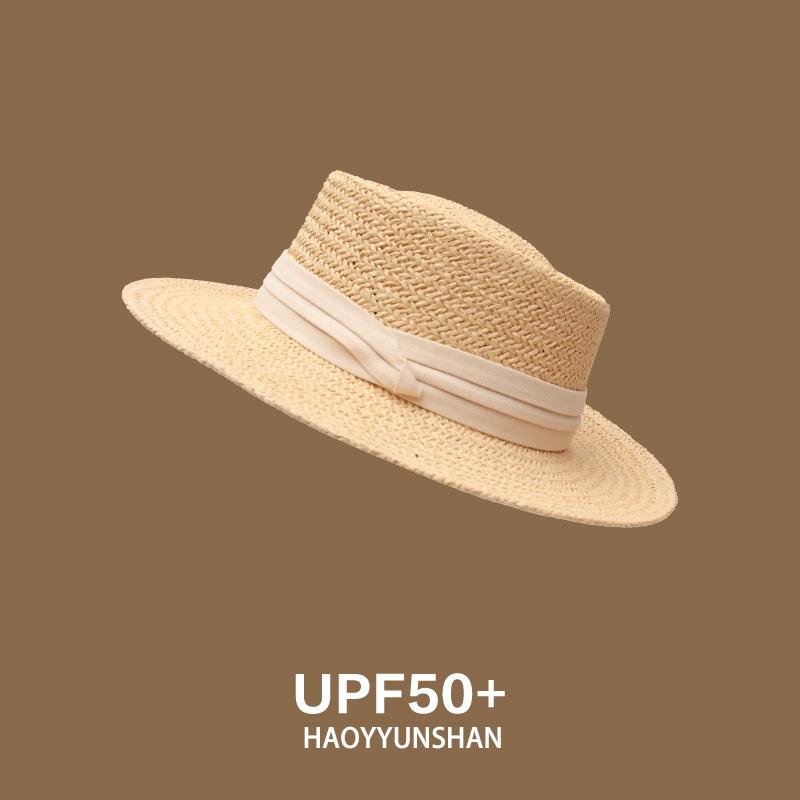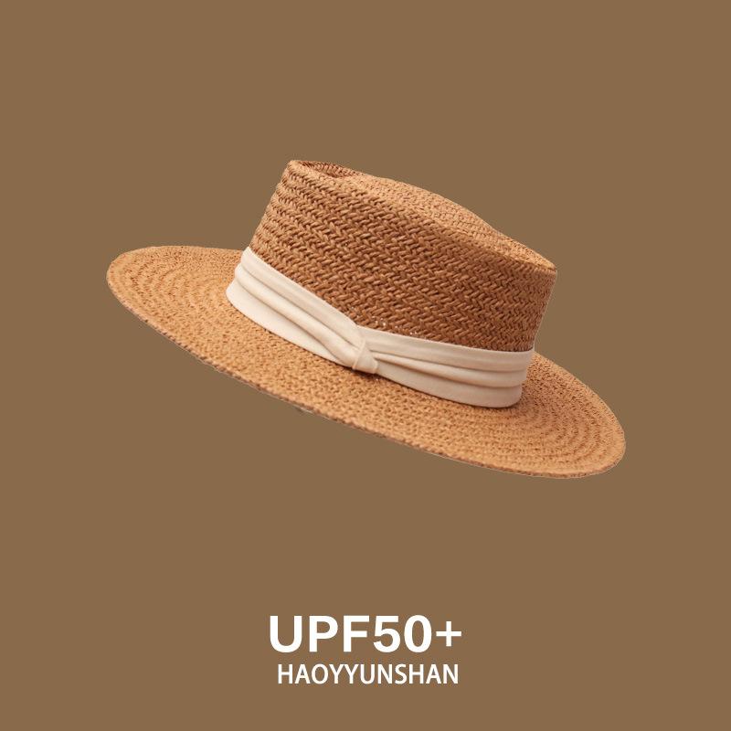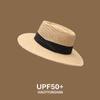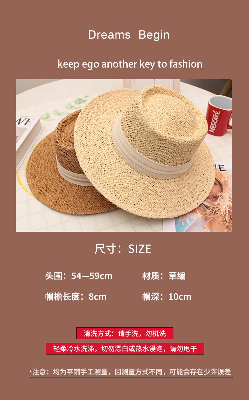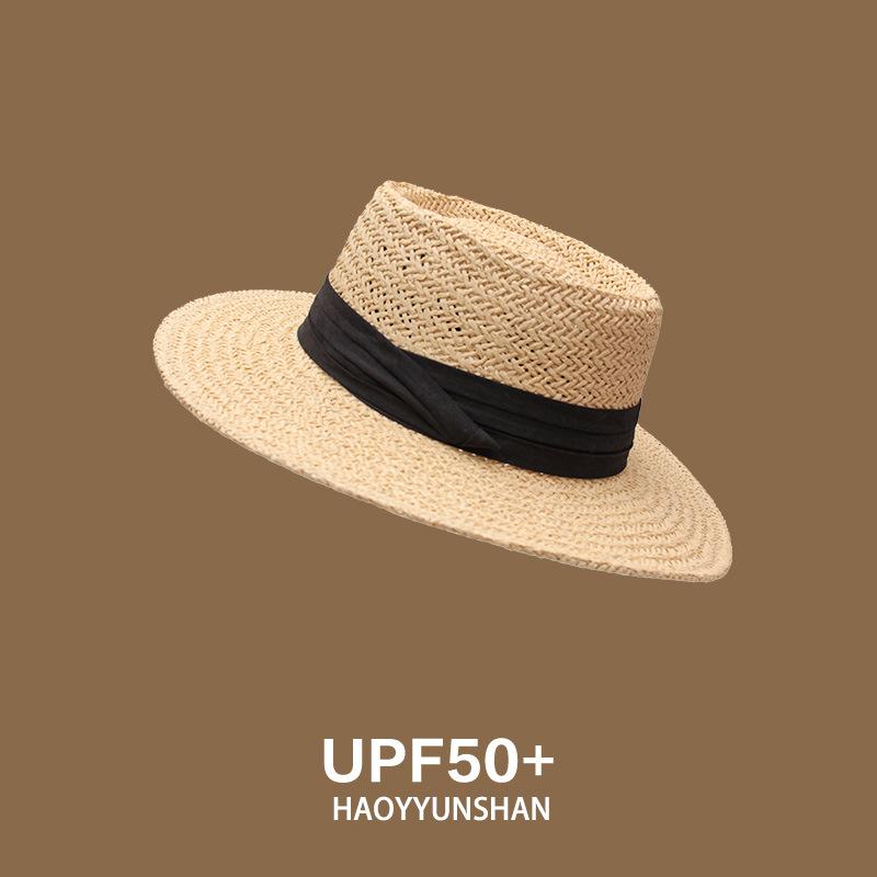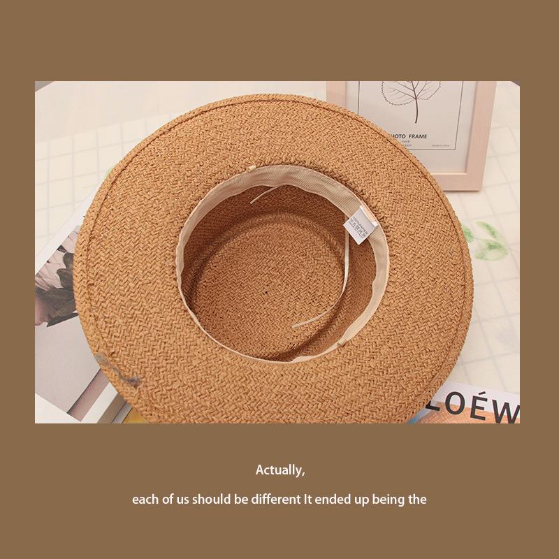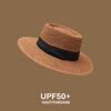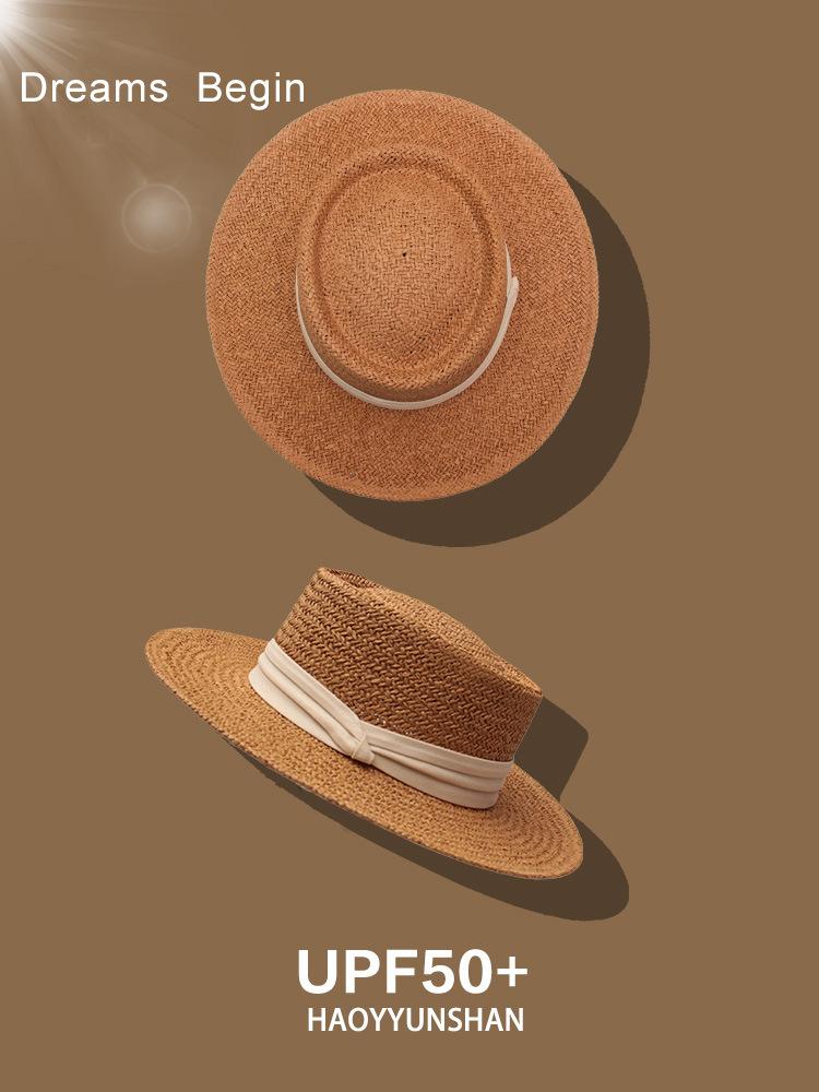 Sombrero de paja francés para vacaciones de verano, para exteriores, playa, sombrilla, sombrero de paja para hombres y mujeres, tejido a mano, ala ancha, parte superior plana, color sólido