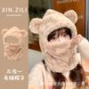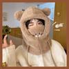 Lindo gorro de oso, bufanda, gorro de invierno integrado, máscara, gorro integrado, gorro cálido de invierno para otoño e invierno.