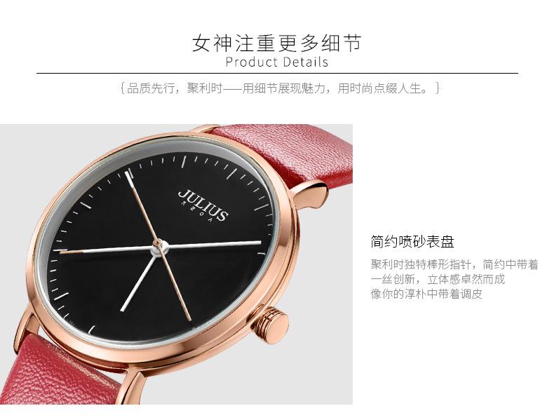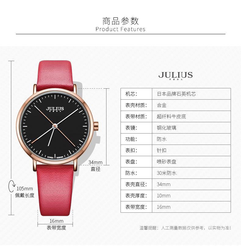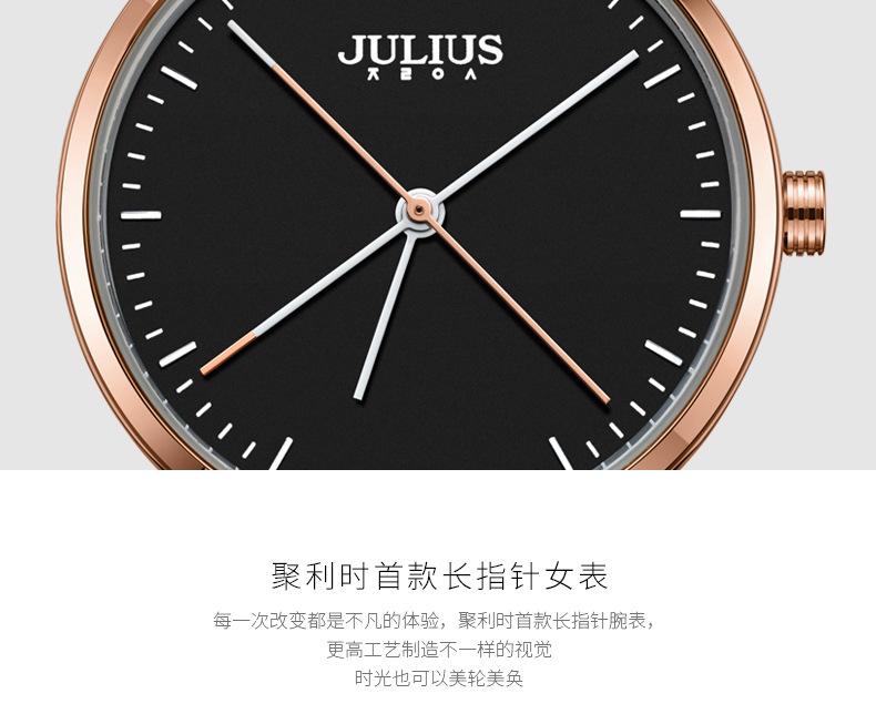 El significado de la marca JULIUS es alegre, único, amoroso, ideal, inusual y brillante. Es un reloj único que te enamorará a primera vista (Just You Will Love, un reloj único y especial). JULIUS toma este nombre y cuenta con siete series principales: Serie Clásica, Serie Emocionante, Serie Brazalete, Serie Exploración, Serie Pareja, Serie Hombre y Serie Edición Limitada.