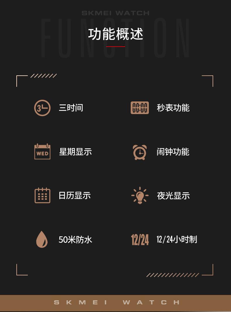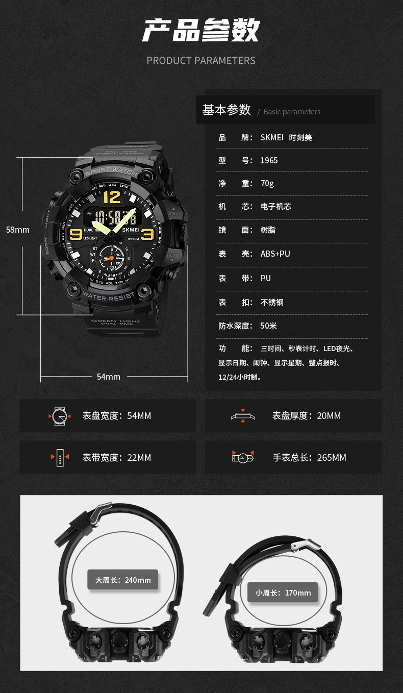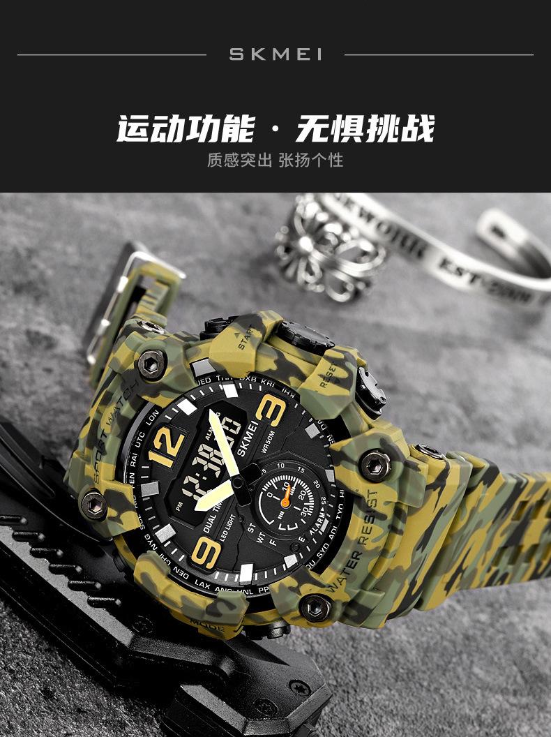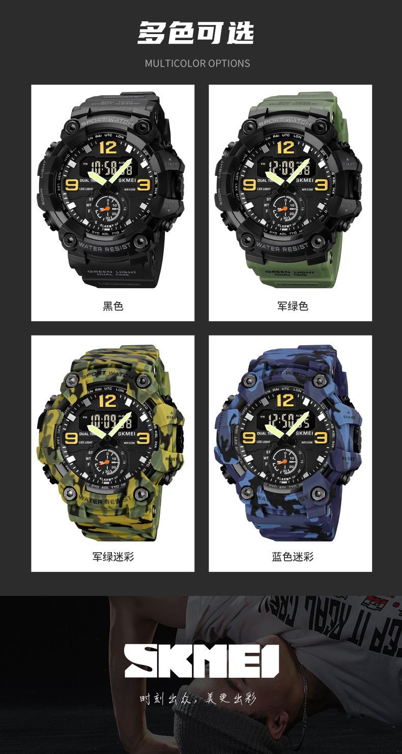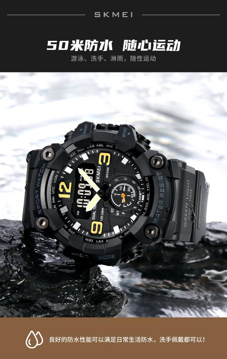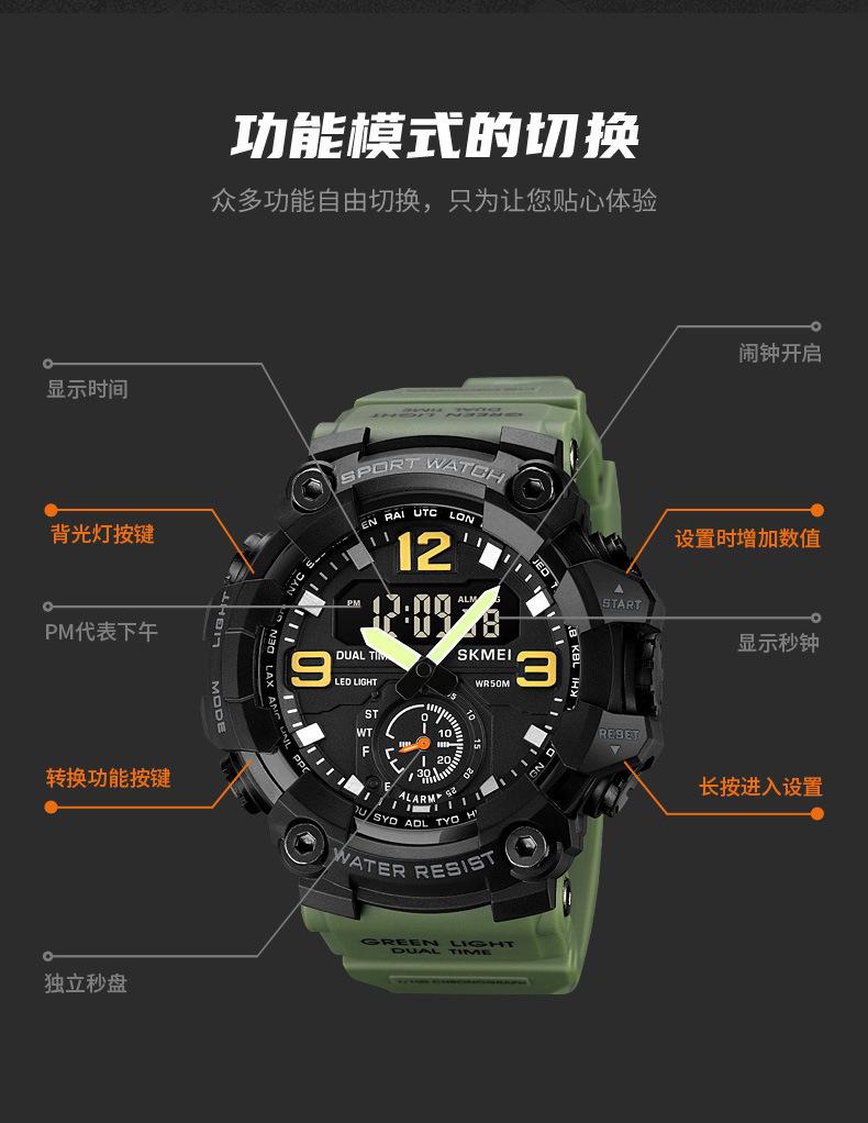 Reloj electrónico deportivo Skmei Time Beauty para hombre, de moda, multifuncional, de dos pines, para hombre, venta al por mayor.