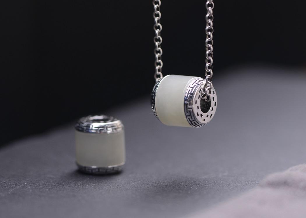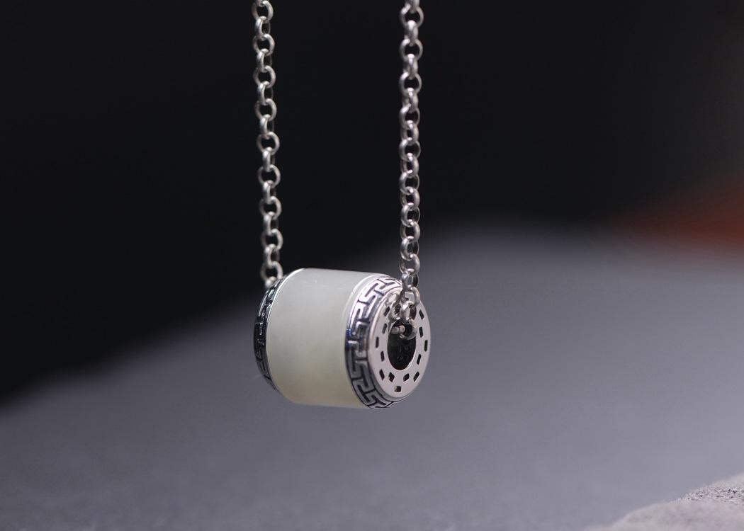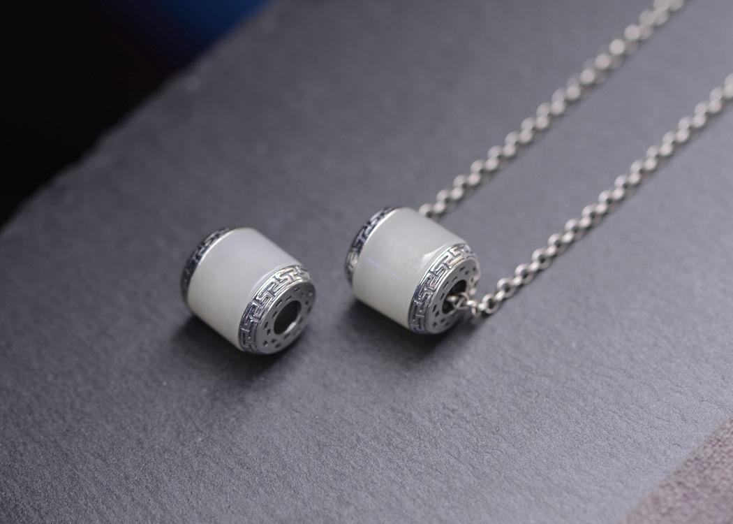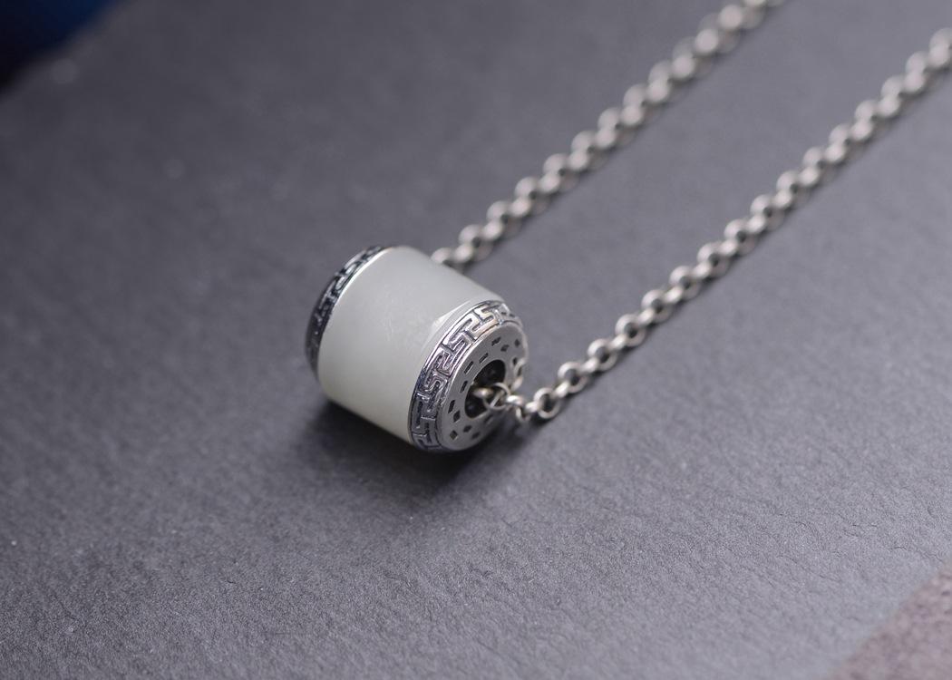 Collar con colgante de plata de ley 925 con diseño de ciervo dorado, estilo retro, con cuentas de jade hetian, venta al por mayor.