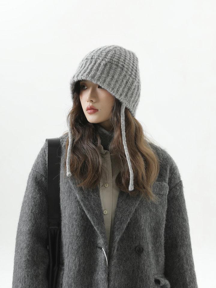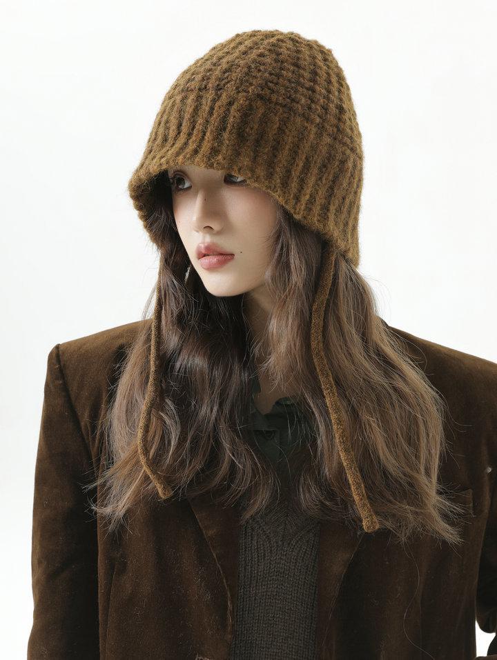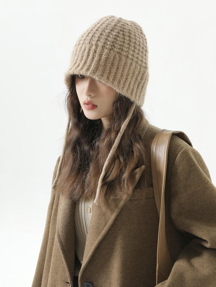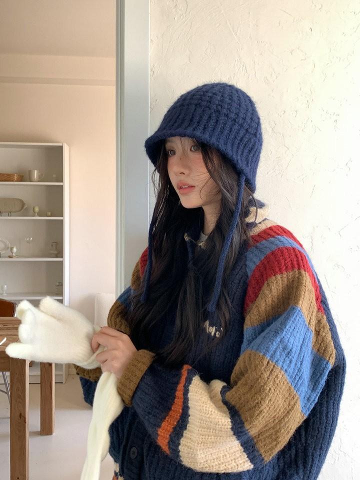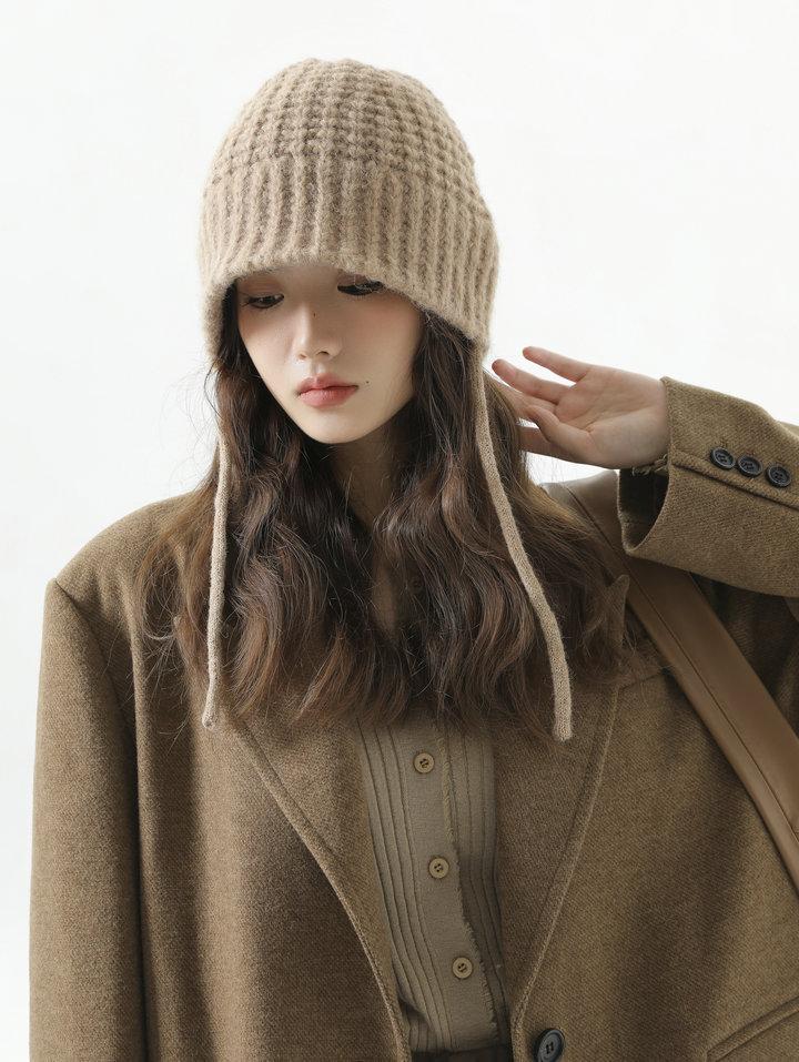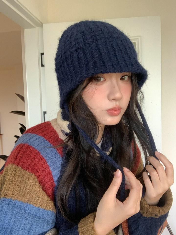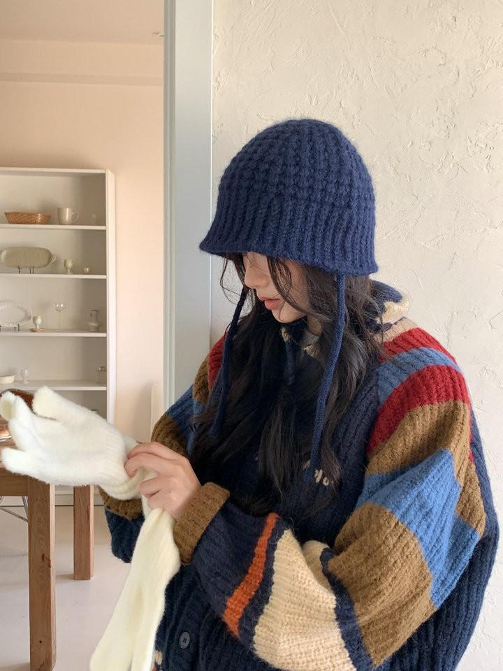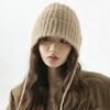 Gorro de pescador de lana tejida estilo coreano para otoño e invierno, gorro de punto cálido con protección para las orejas para mujer