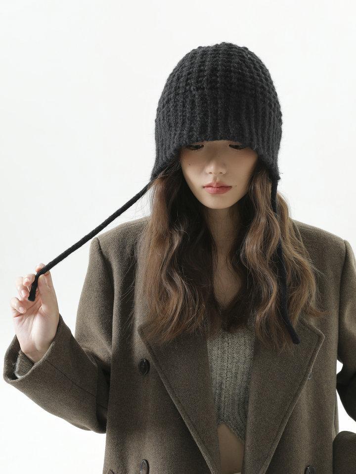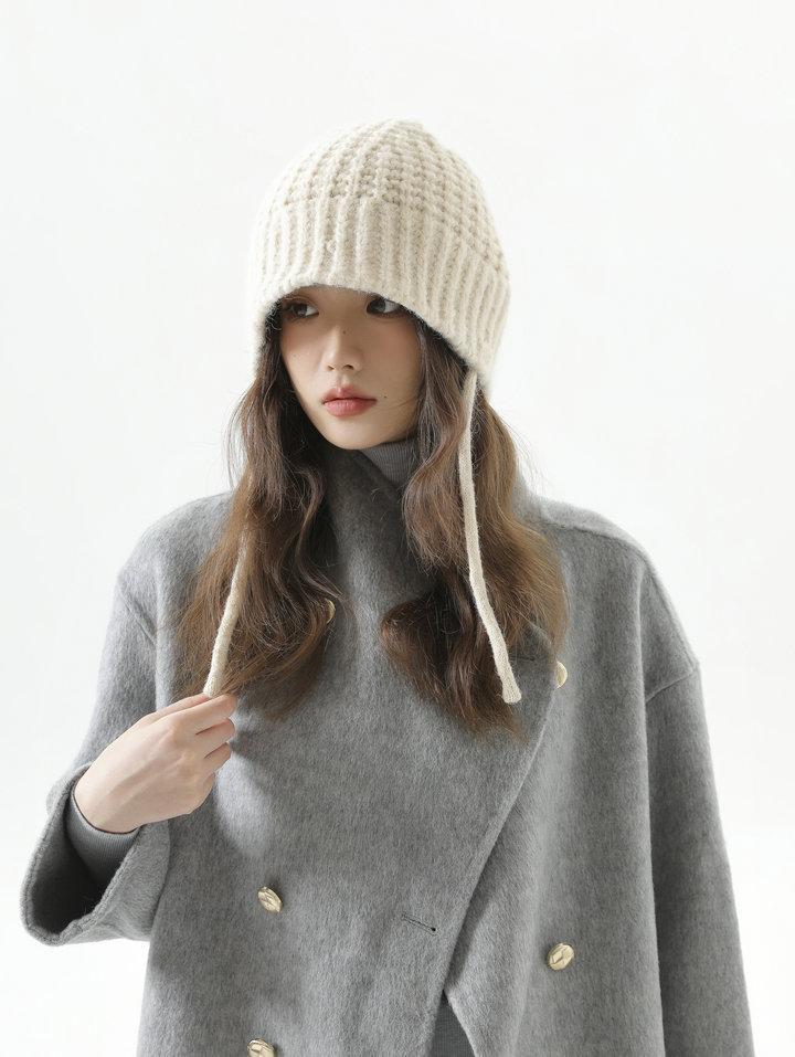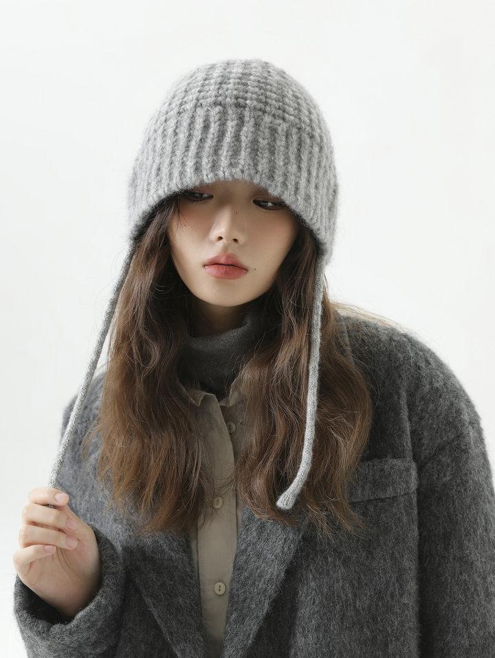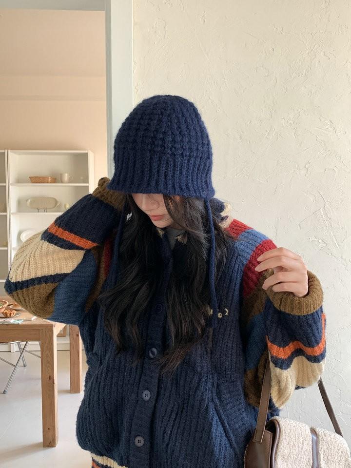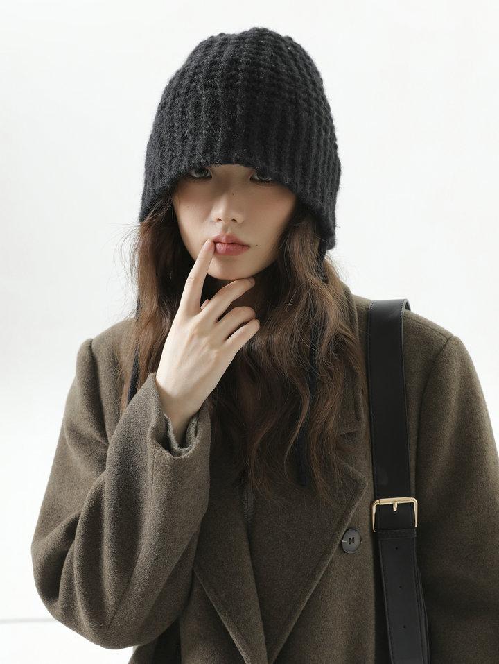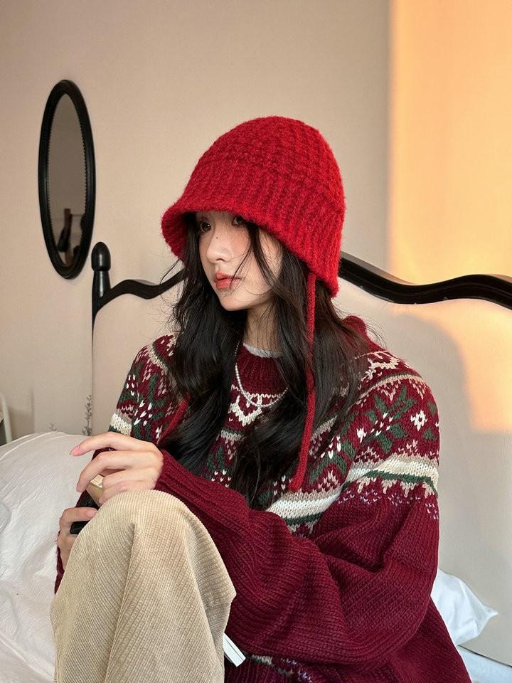 Gorro de pescador de lana tejida estilo coreano para otoño e invierno, gorro de punto cálido con protección para las orejas para mujer