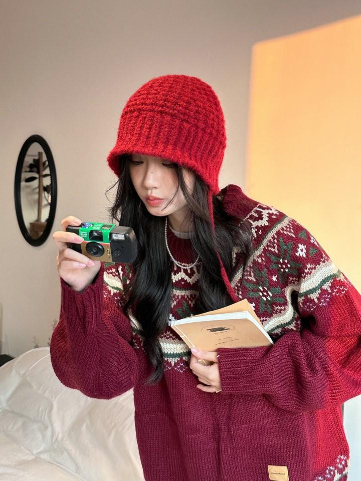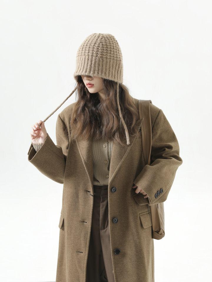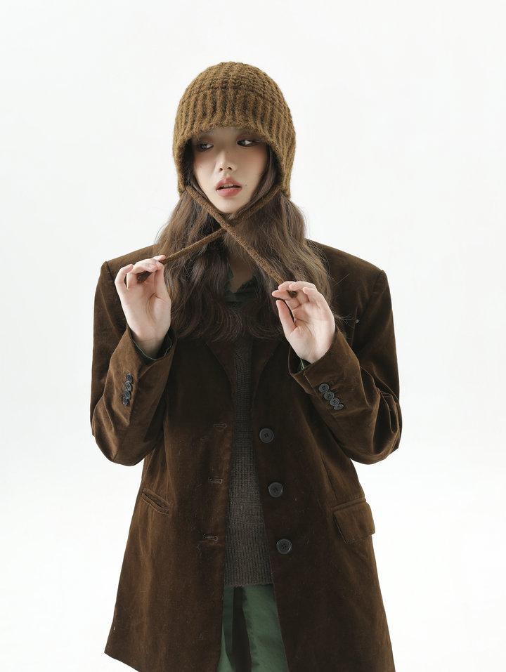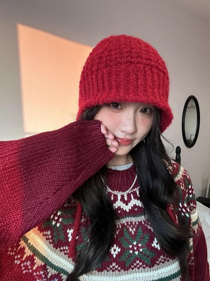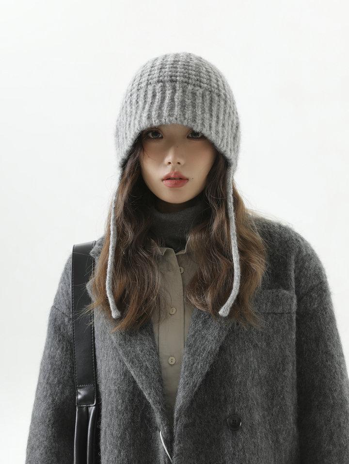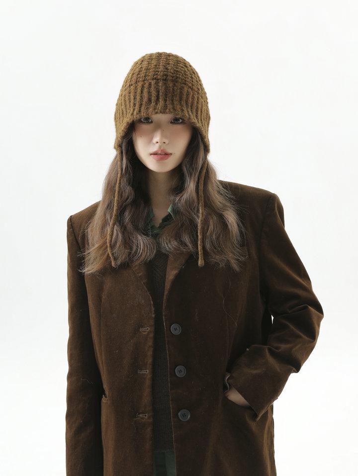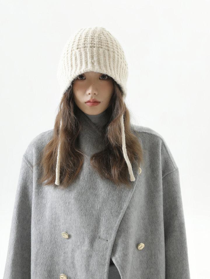 Gorro de pescador de lana tejida estilo coreano para otoño e invierno, gorro de punto cálido con protección para las orejas para mujer