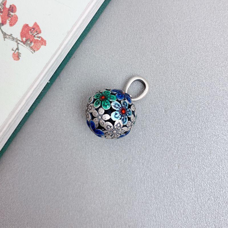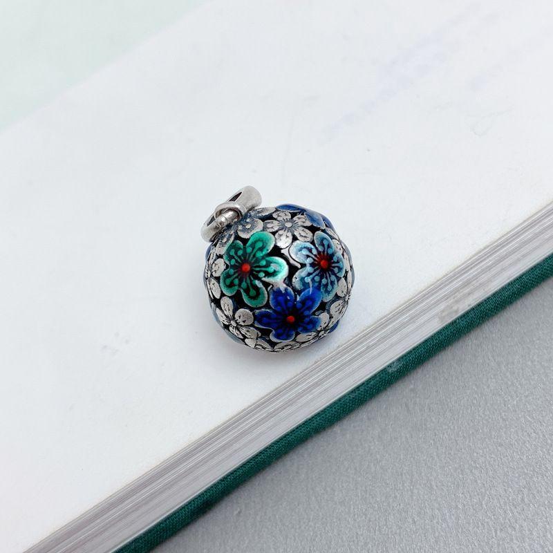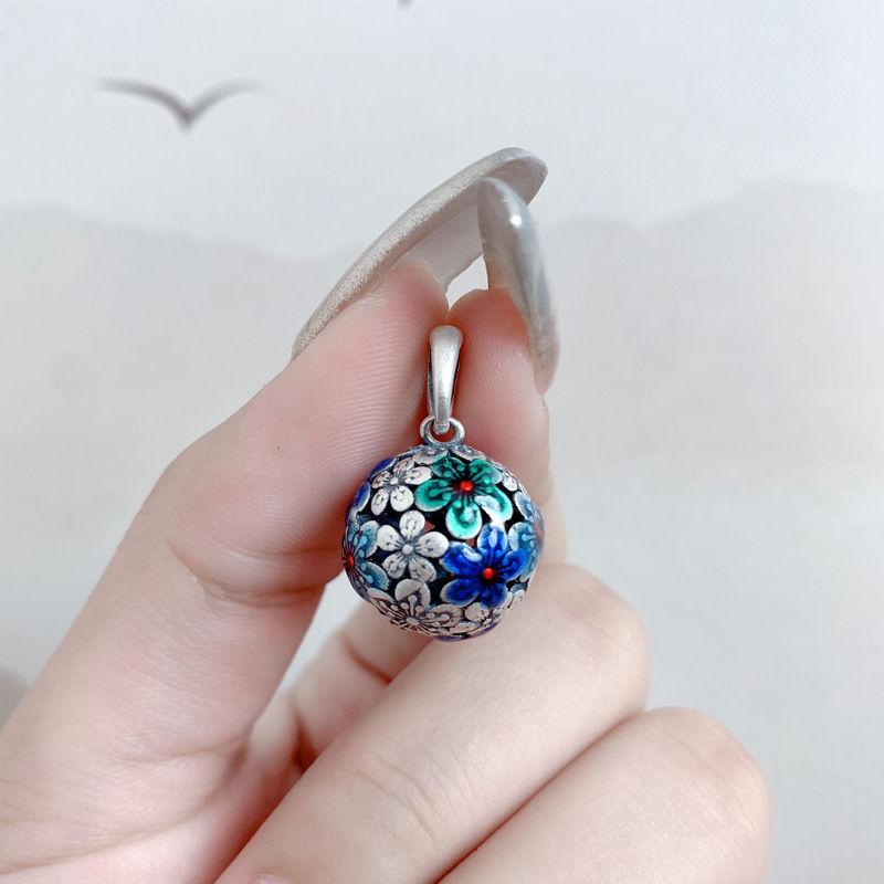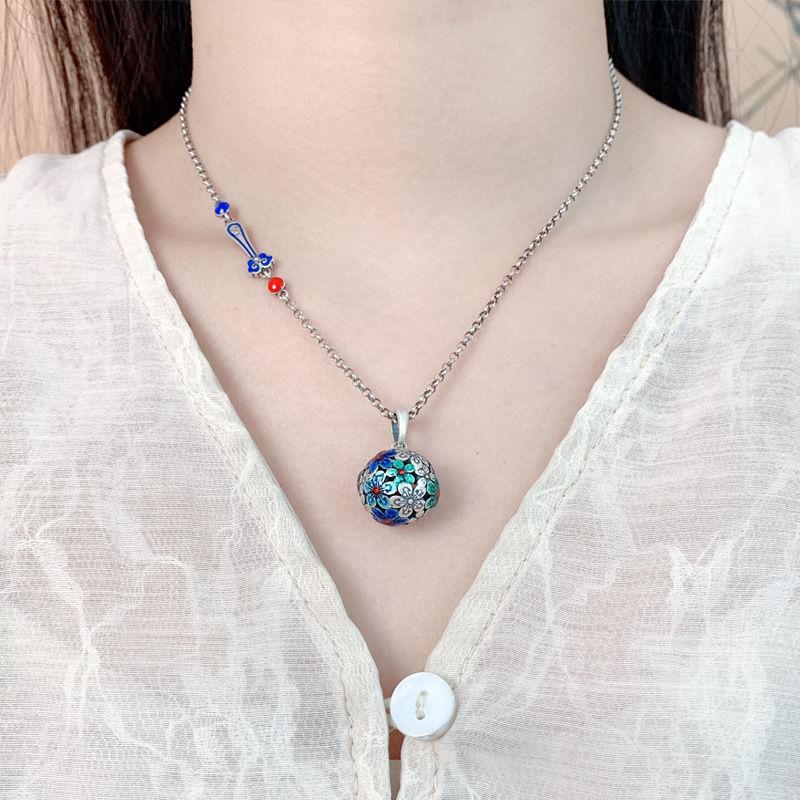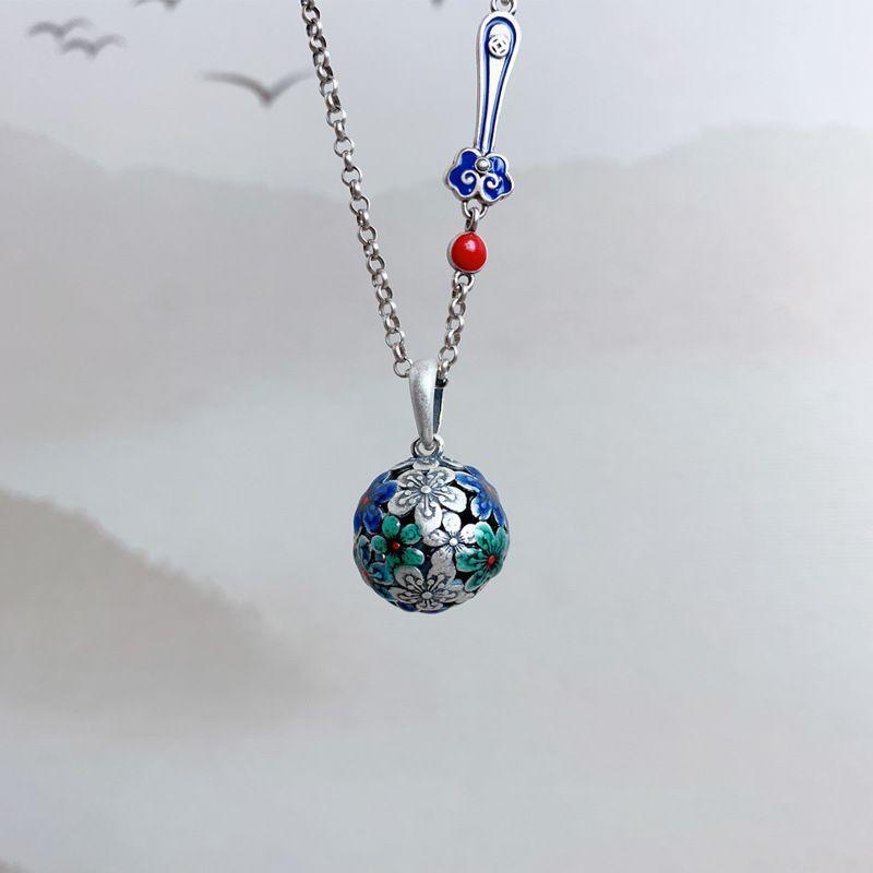 Nuevo colgante retro de bola de flor artesanal de color esmaltado hueco, colgante de cadena de clavícula con cinco flores benditas personalizadas para mujer