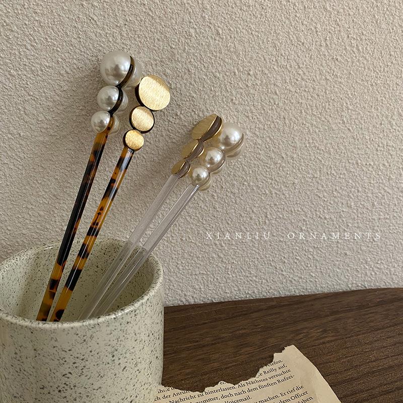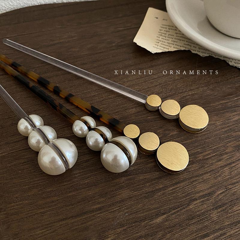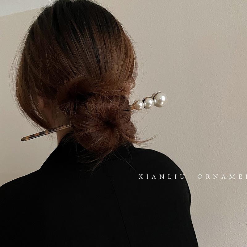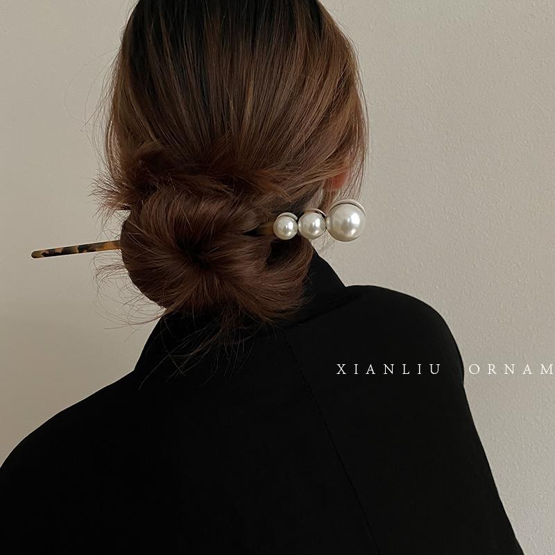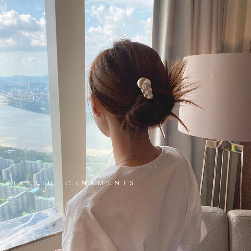 Horquilla de perla para el cabello de uso diario, sencilla, moderna, de alta gama, con cabeza esférica, horquilla antigua, accesorios para el cabello, tocado