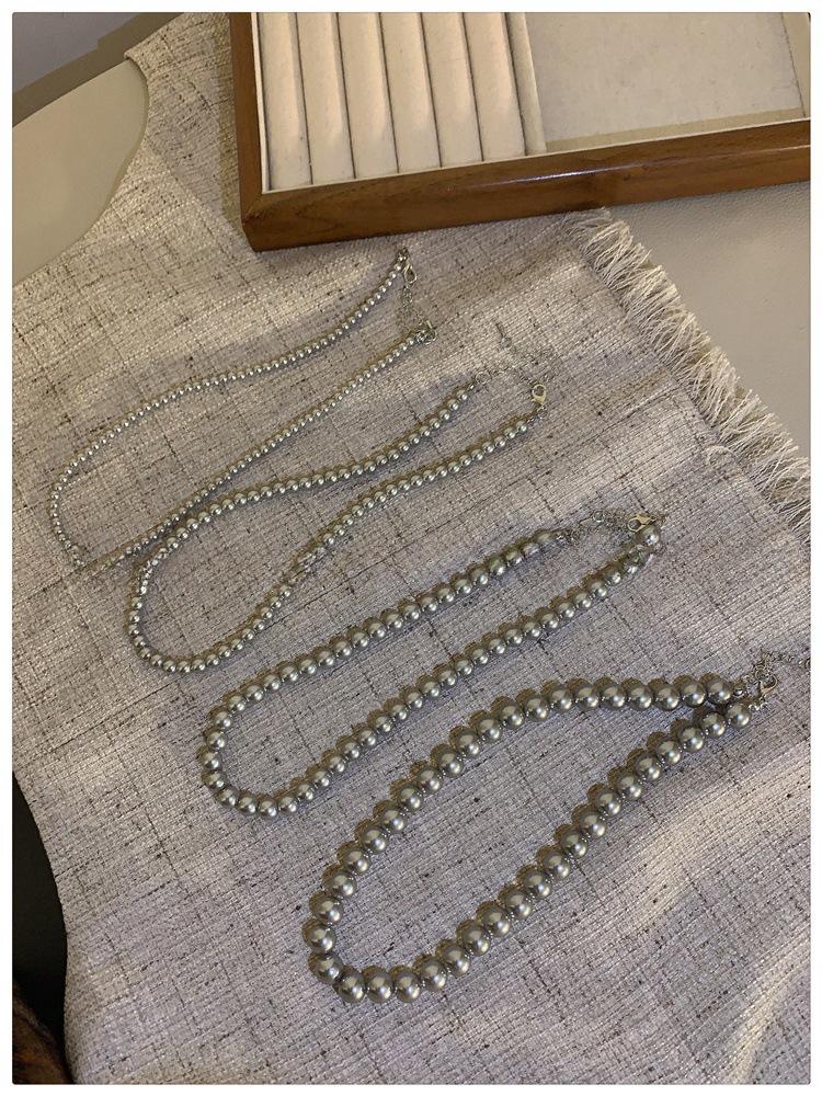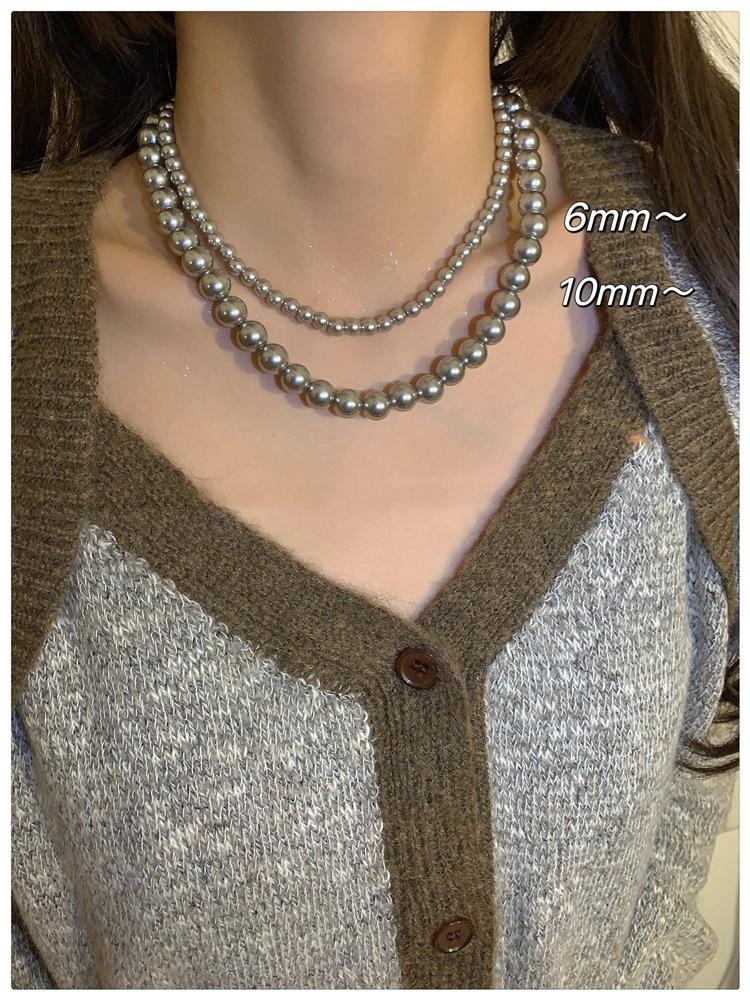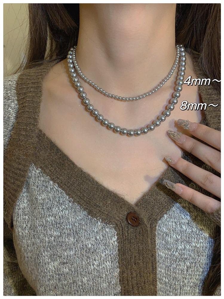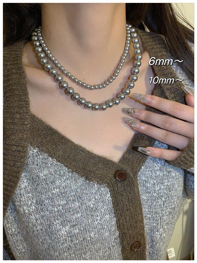 Collar de perlas grises de alta calidad ~ retro ligero de lujo de moda 2023 otoño e invierno nuevo suéter cadena collar accesorios