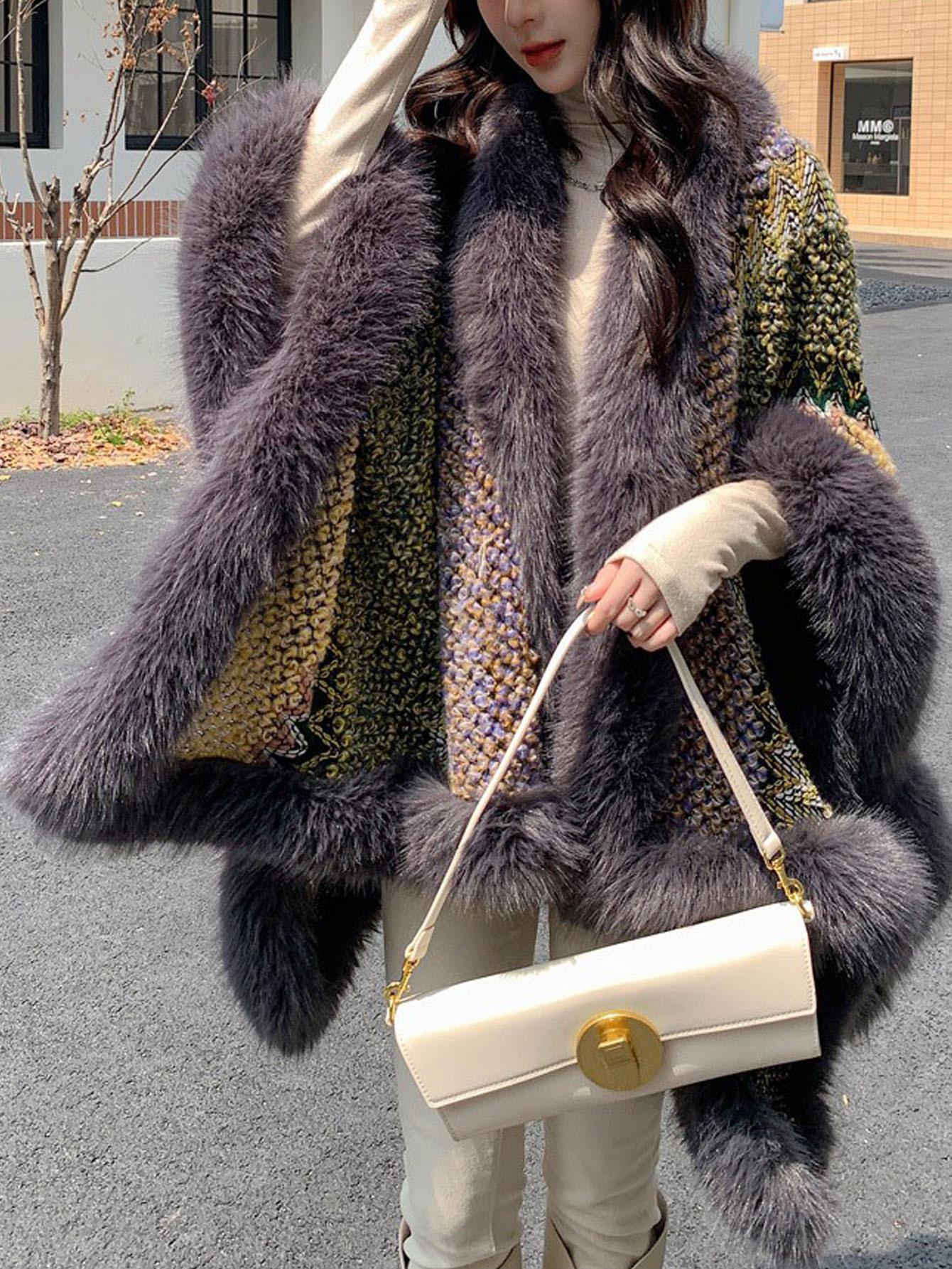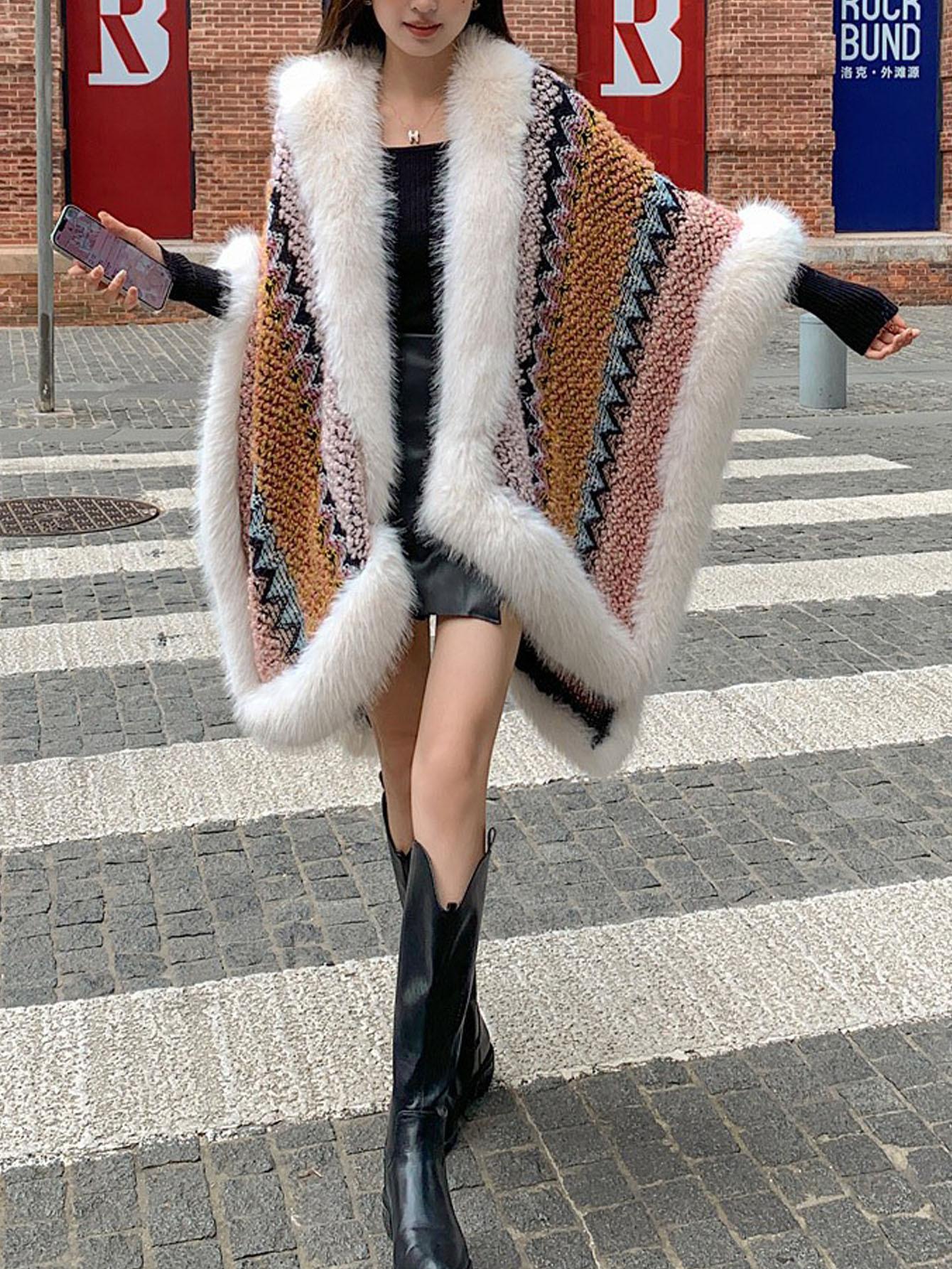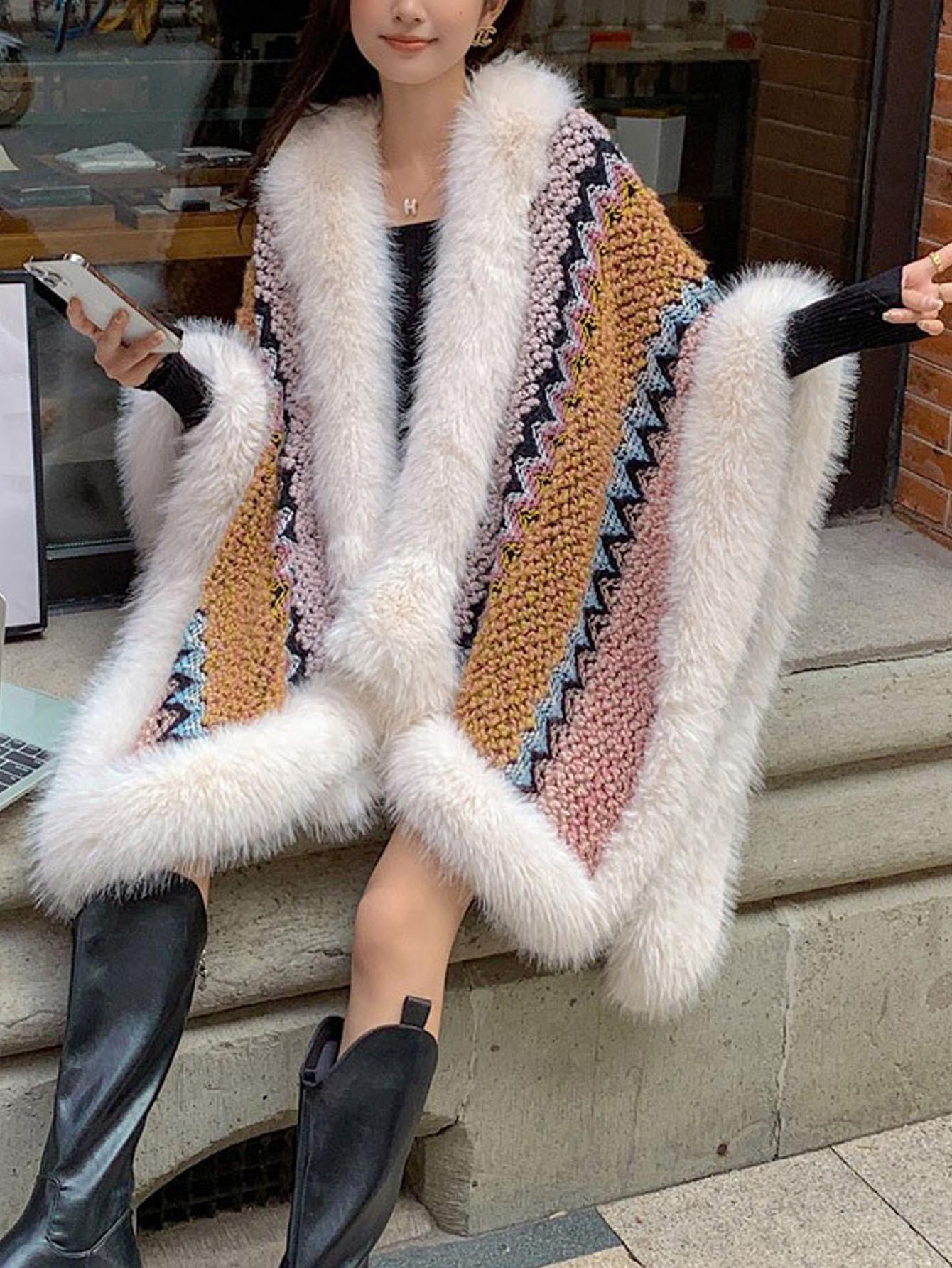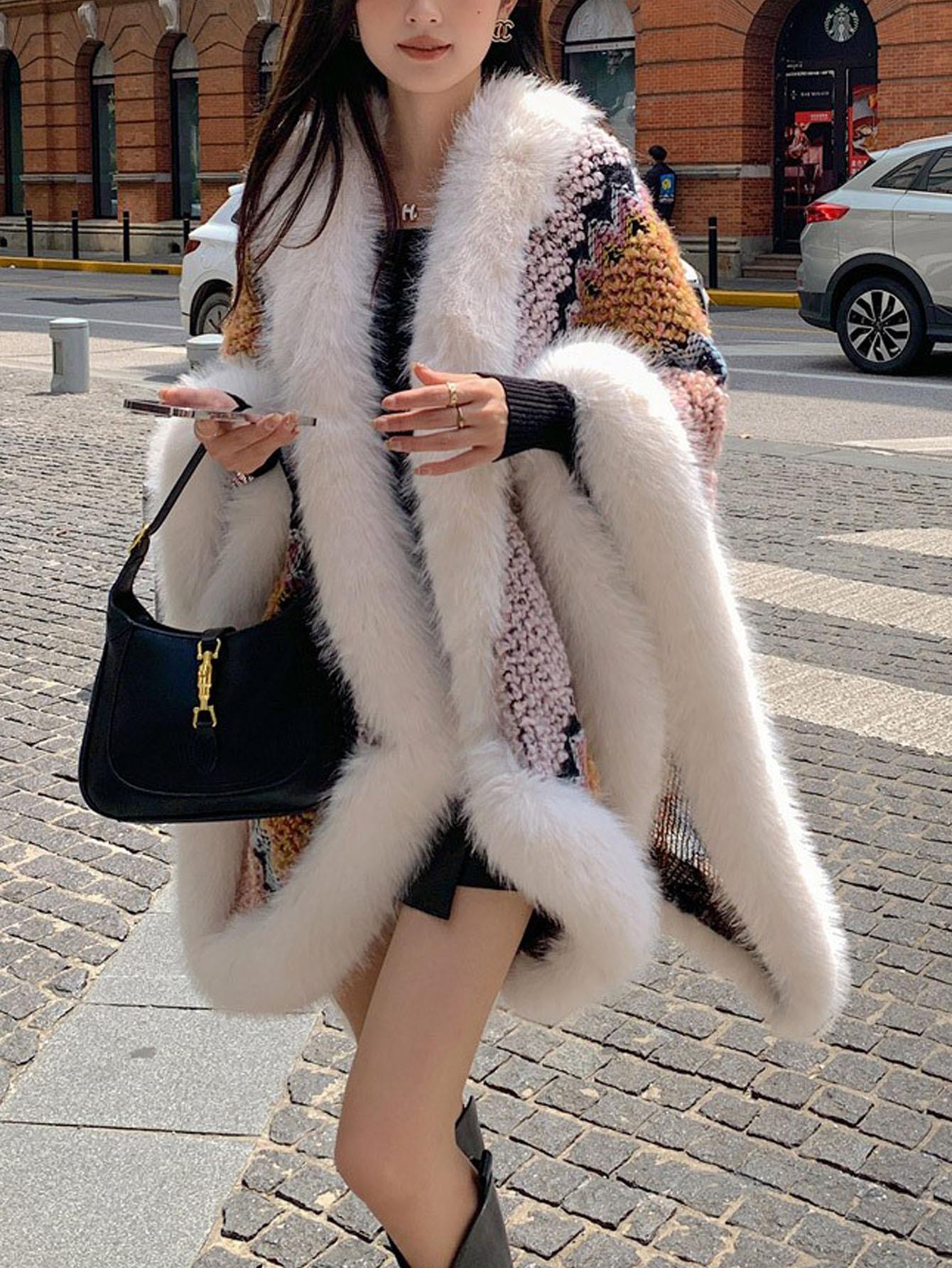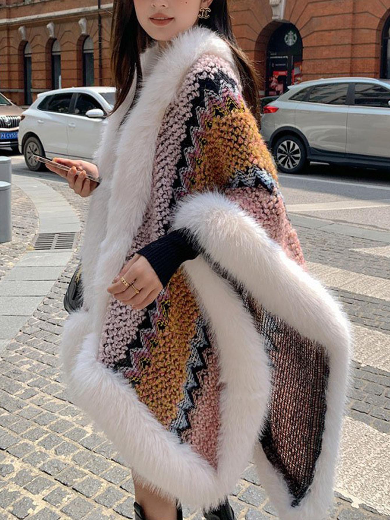 Chal Blanco de Piel Sintética Nueva para Mujer Invierno Ropa Exterior Gruesa Cálida Moda Capa Chal Bufanda Venta al por Mayor Transfronteriza