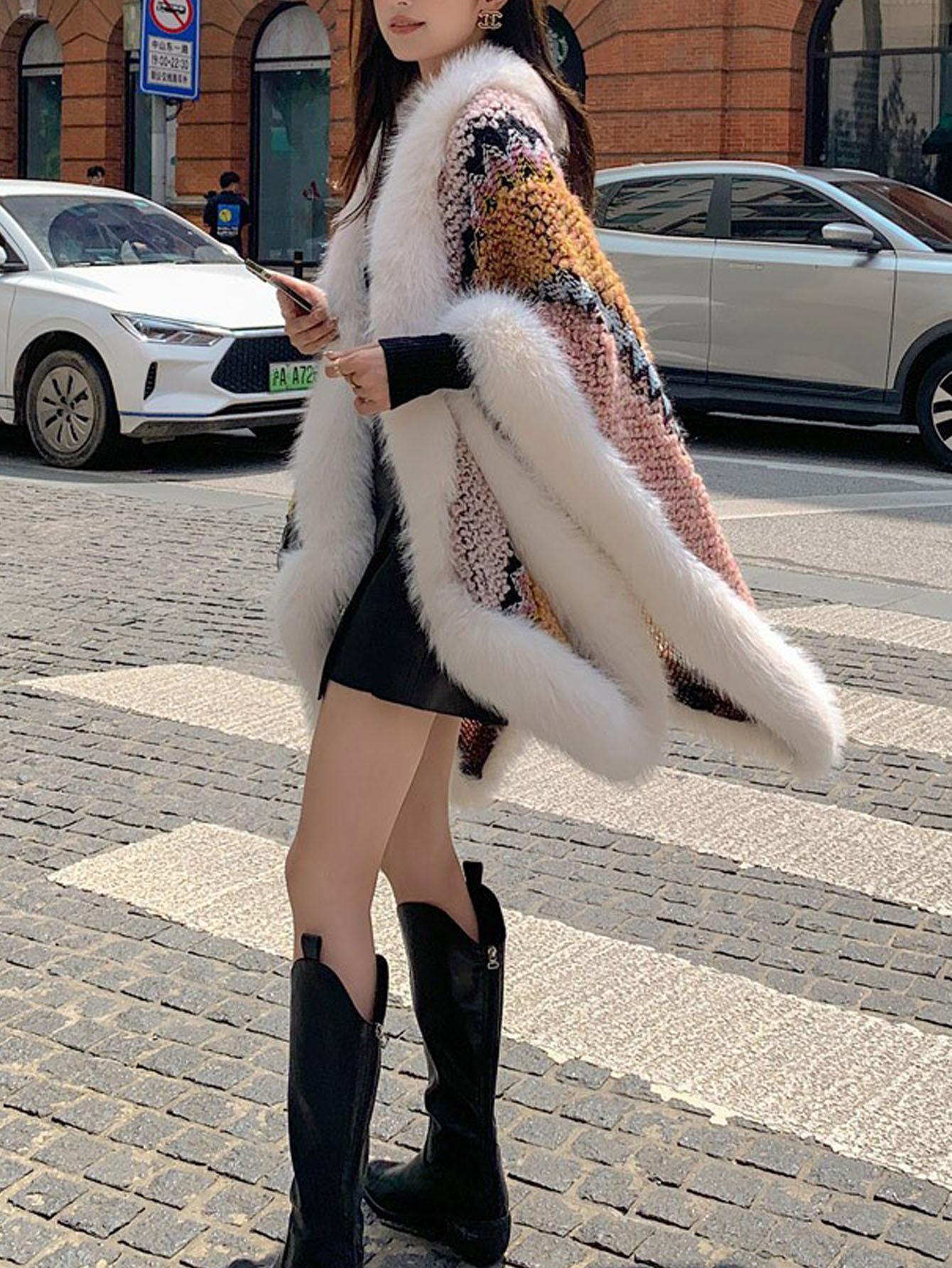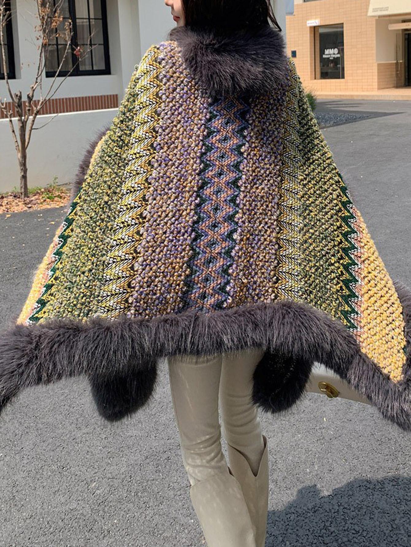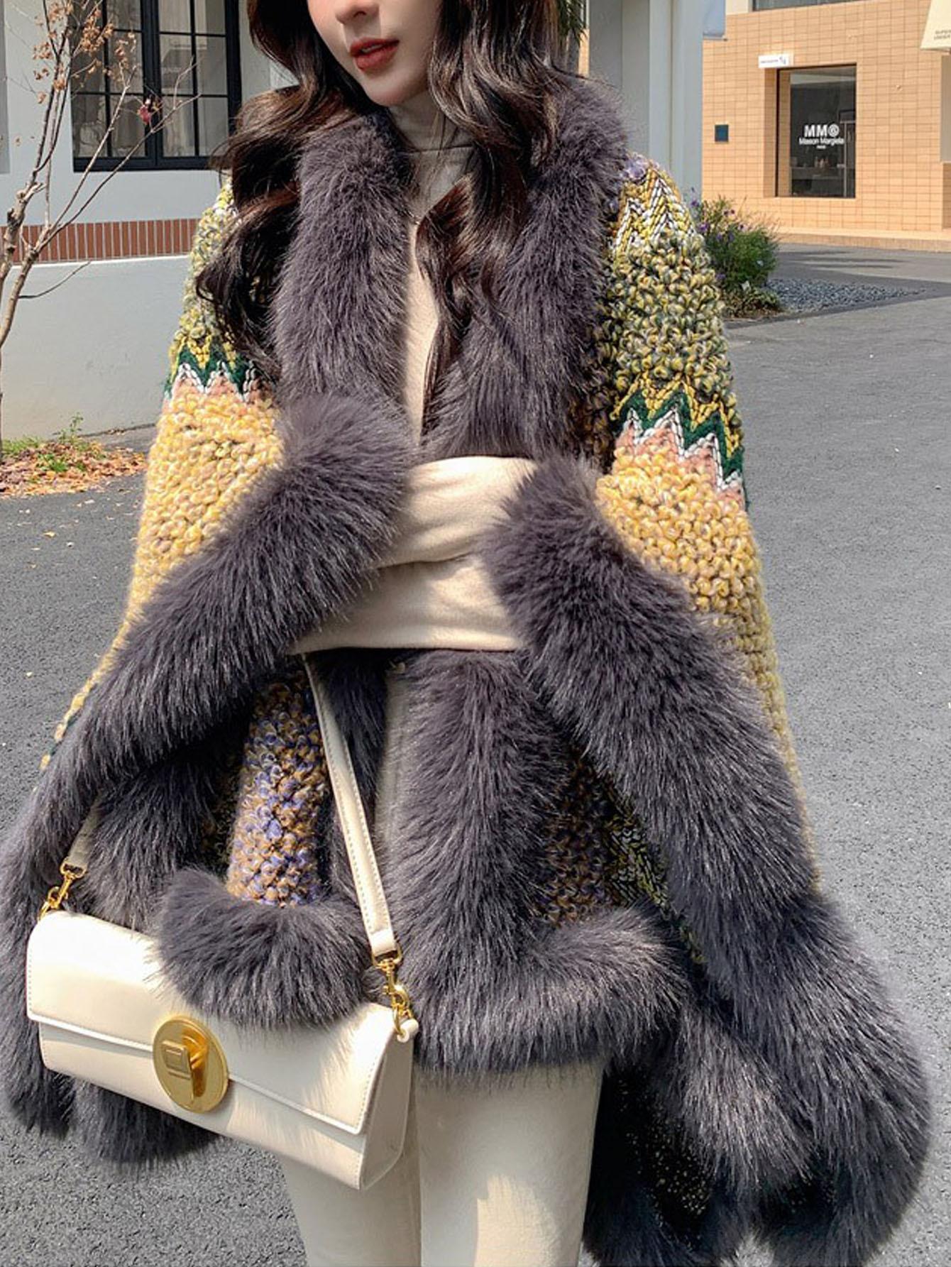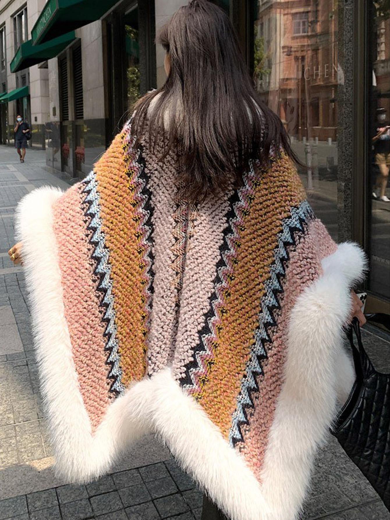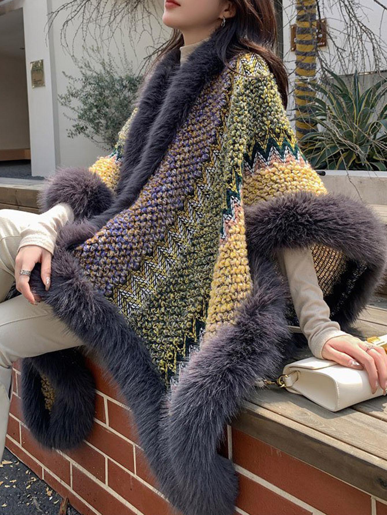 Chal Blanco de Piel Sintética Nueva para Mujer Invierno Ropa Exterior Gruesa Cálida Moda Capa Chal Bufanda Venta al por Mayor Transfronteriza