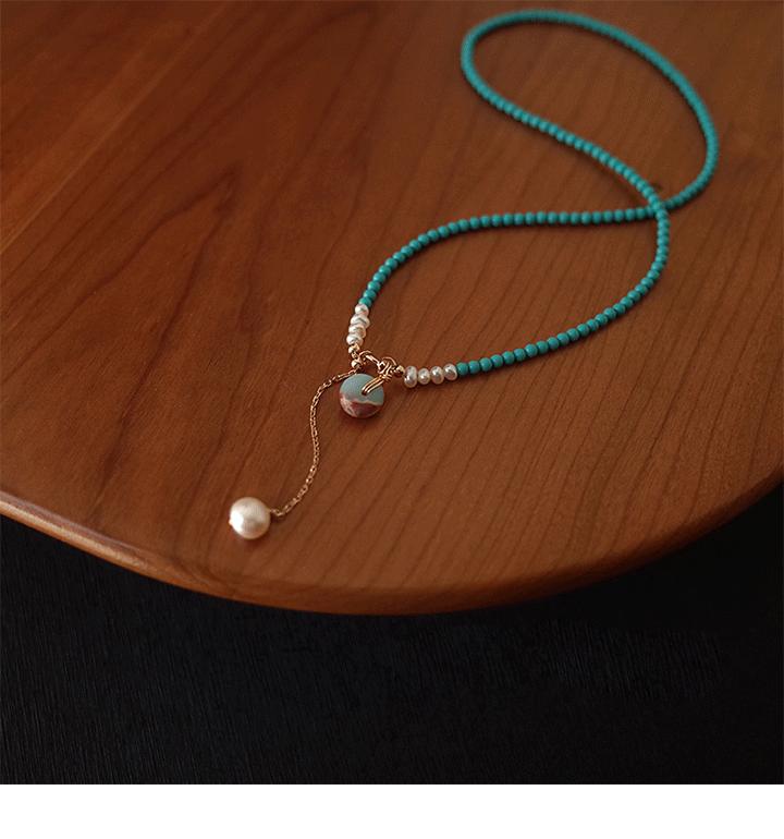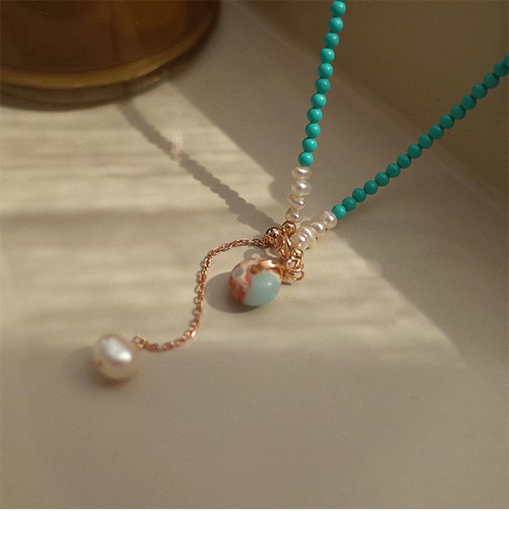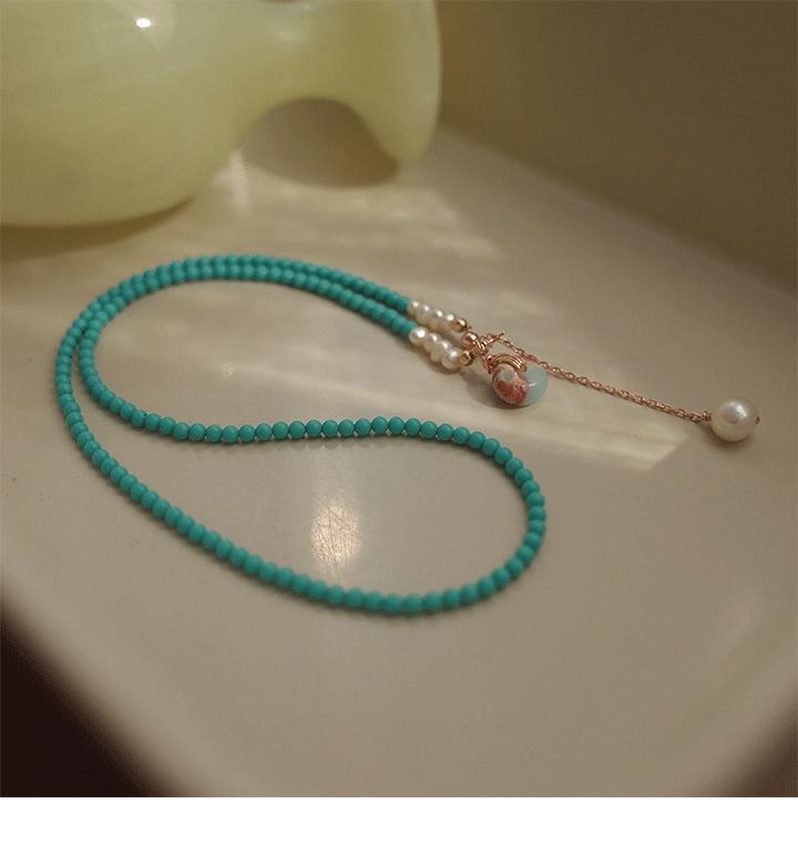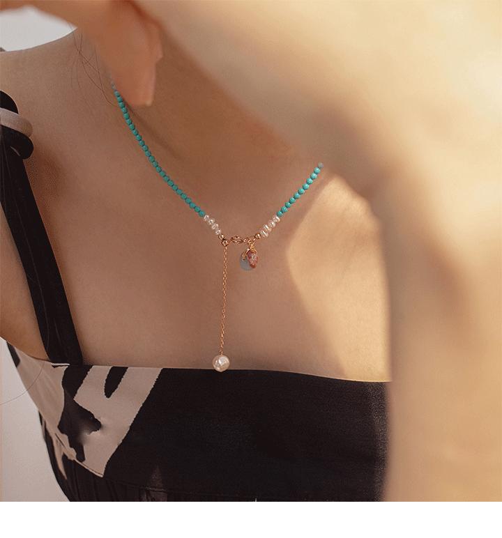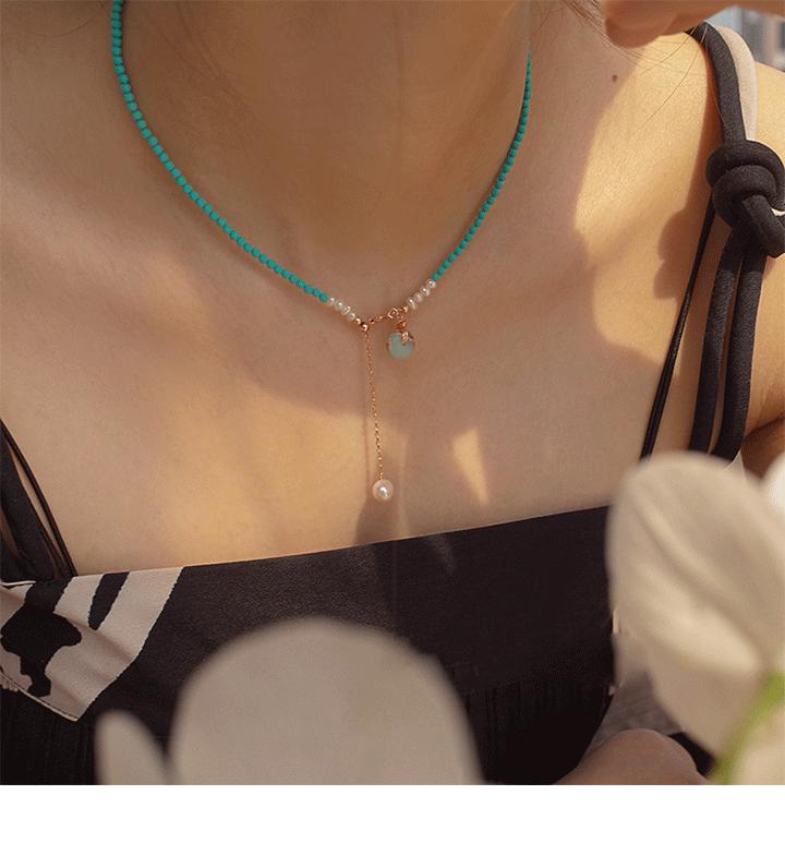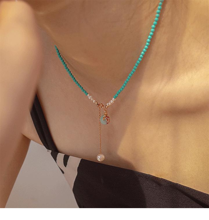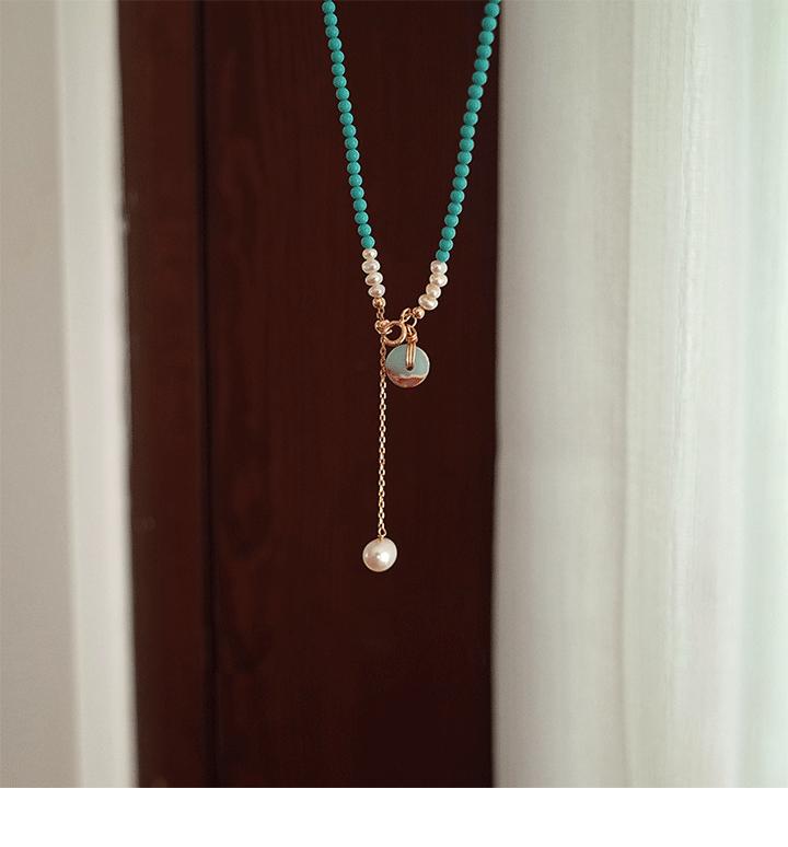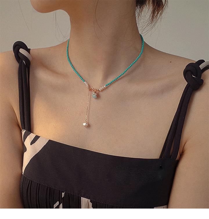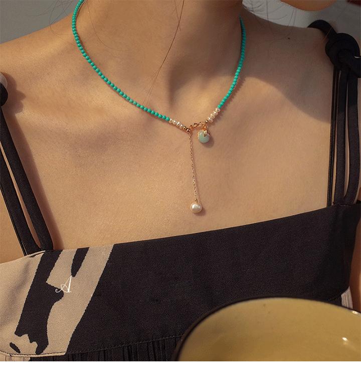 Collar de Perlas Naturales Turquesa Imitación Otoño e Invierno Versátil para Mujer Novedad de Alta Gama Hebilla de la Paz Collar Clavícula Accesorios